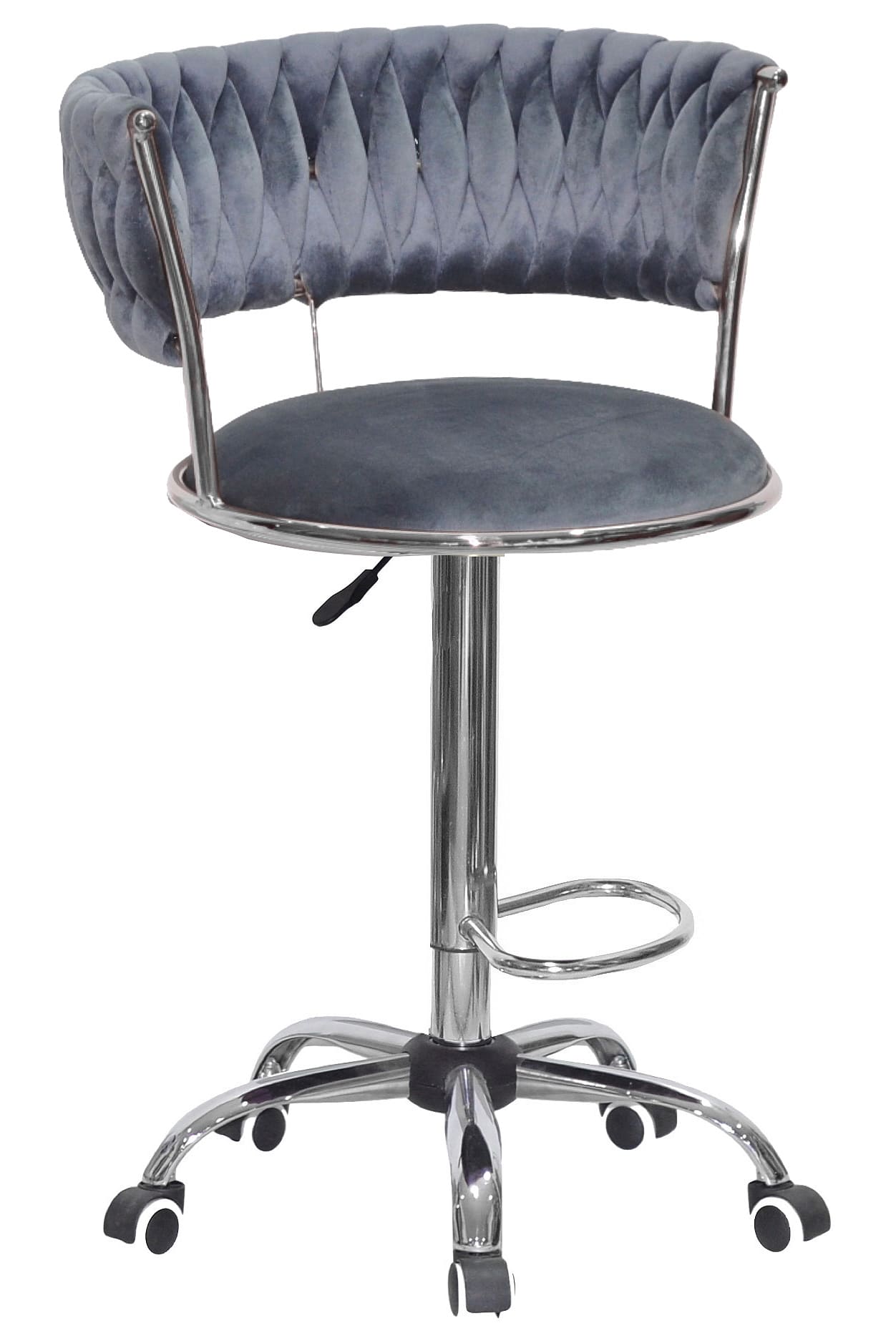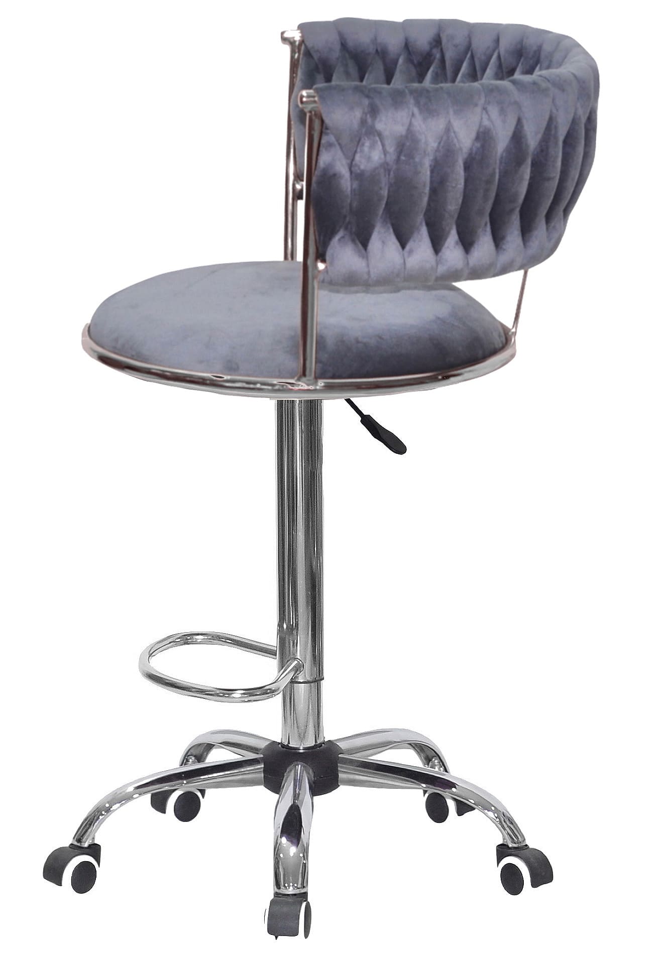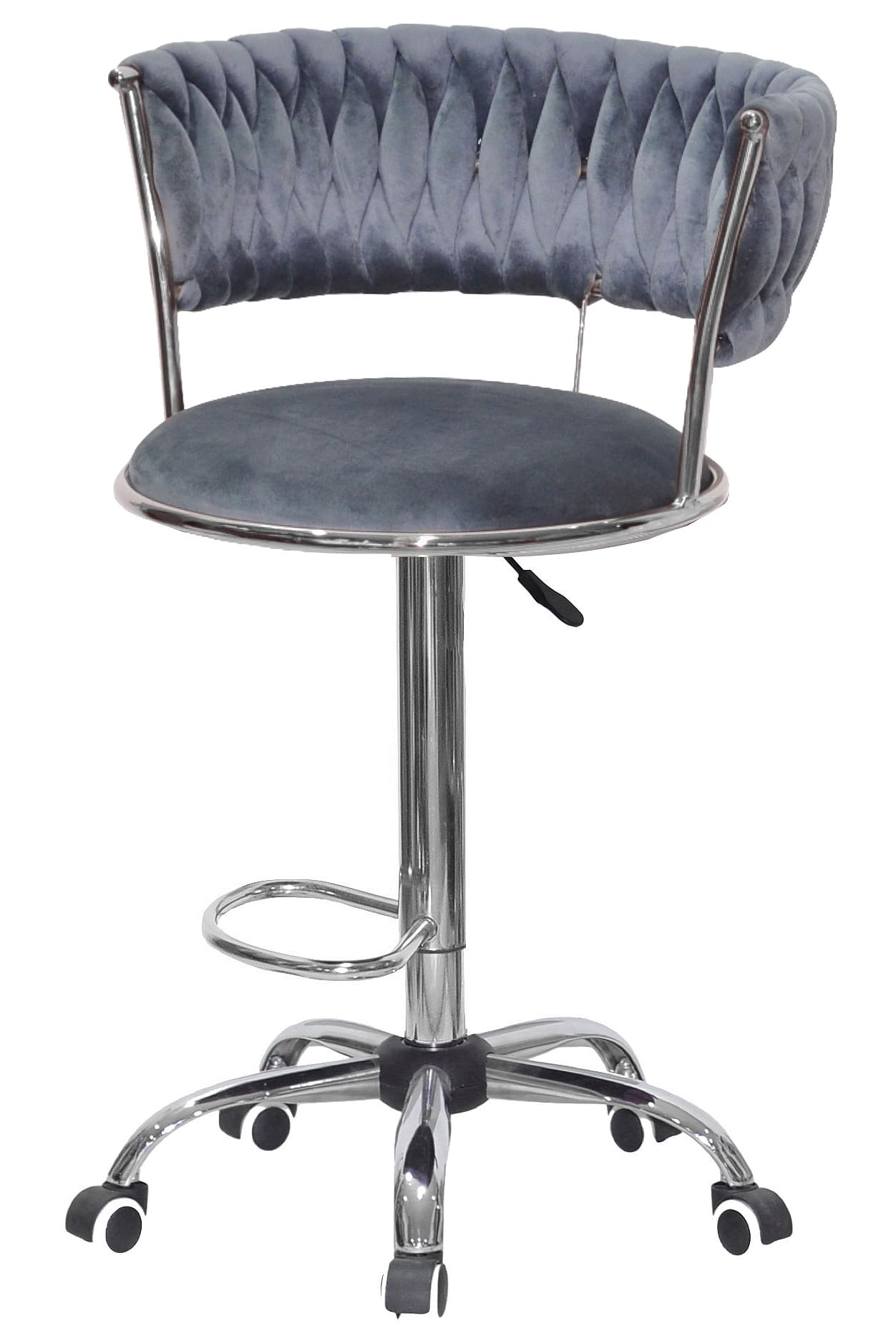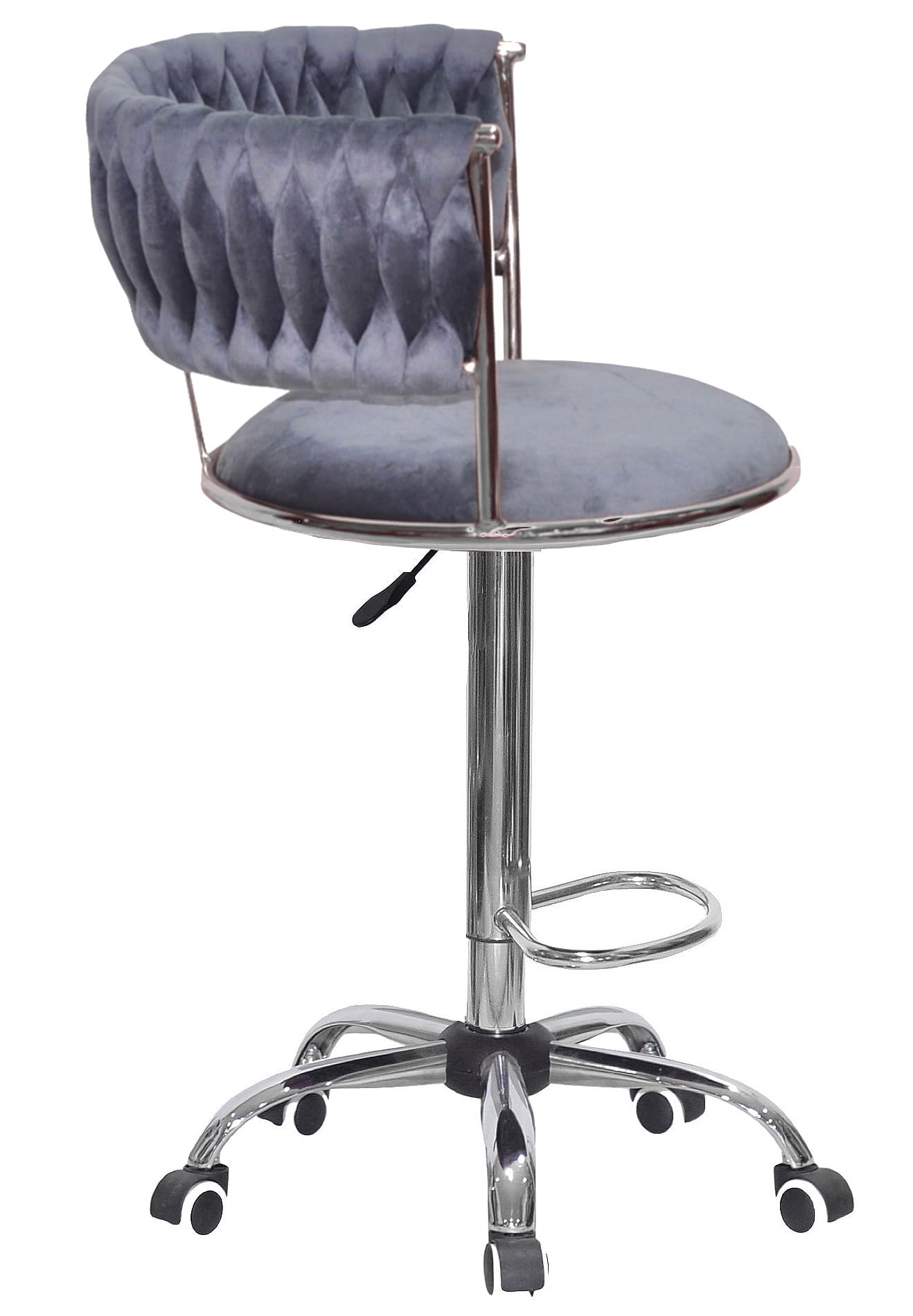 Барный стул Onder Mebli Ava BAR CH-OFFICE Серый Бархат — стильное и практичное решение для кухни, барной стойки, кафе или салона красоты. Модель сочетает в себе современный дизайн, удобную посадку и надежную конструкцию, что делает ее отличным выбором как для дома, так и для коммерческих интерьеров.