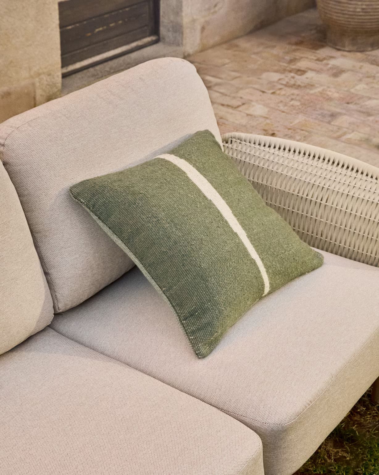 Диван изготовлен из массива акации с выразительной природной текстурой, а сиденье и спинка выполнены из вручную плетеного синтетического шнура, устойчивого к ультрафиолету и износу. Модель дополнена мягкими подушками, обеспечивающими комфорт в ежедневном использовании. Подходит как для улицы, так и для помещения.