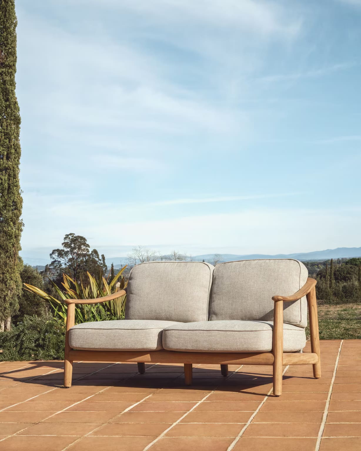 Диван Elunda S00112RO12 из массива тика — это сочетание премиального дизайна, надежности и комфорта для обустройства террасы, сада или веранды.
