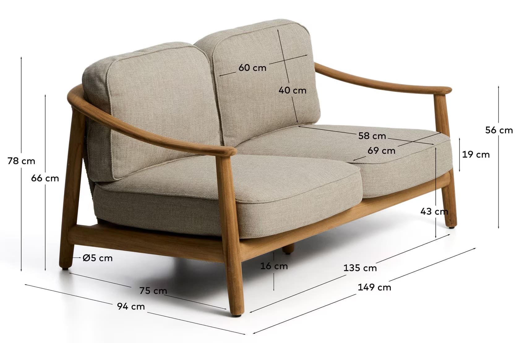 Тиковая древесина отличается высокой прочностью и естественной устойчивостью к влаге, солнечному излучению и перепадам температур, что делает этот садовый диван идеальным выбором для использования на открытом воздухе.