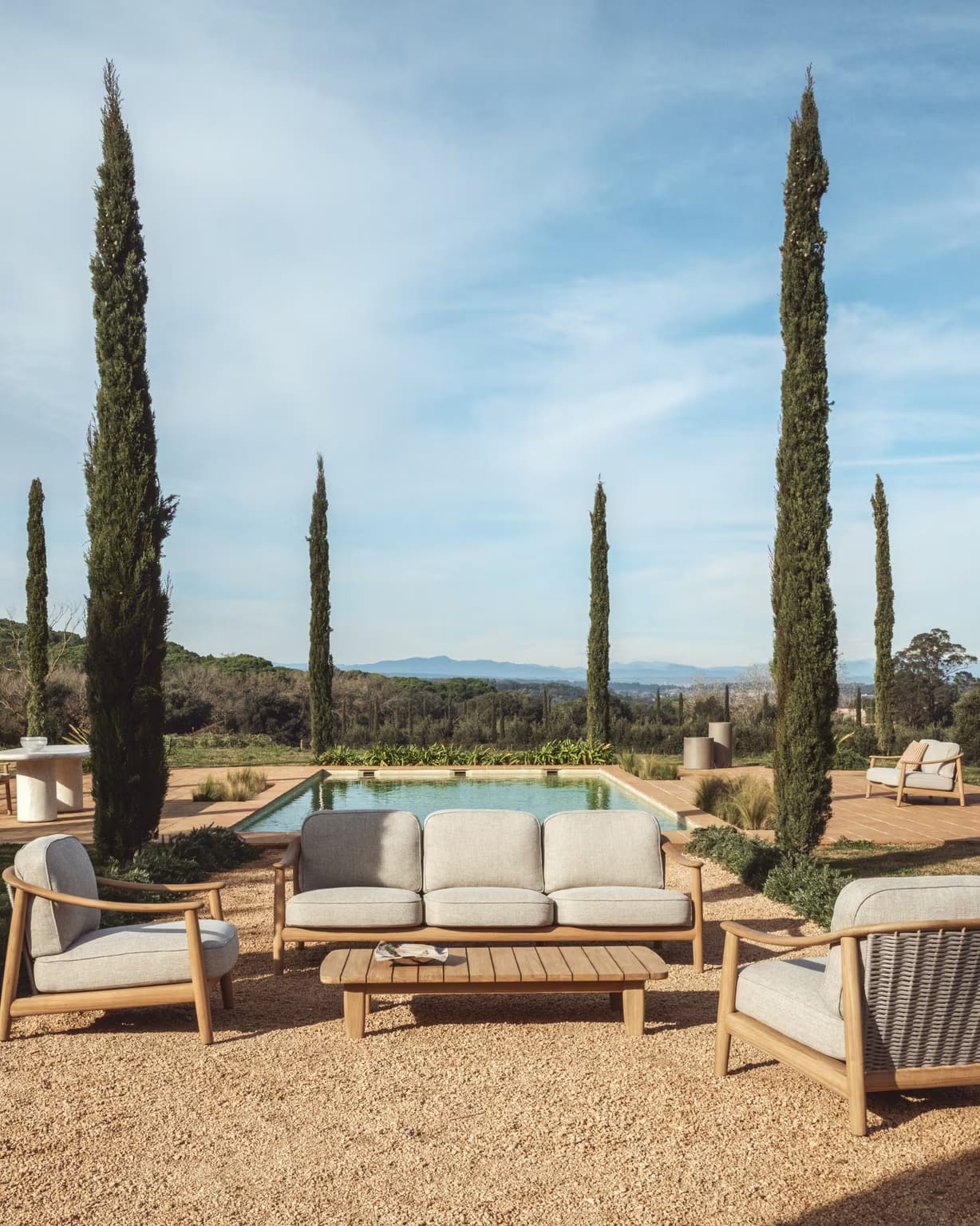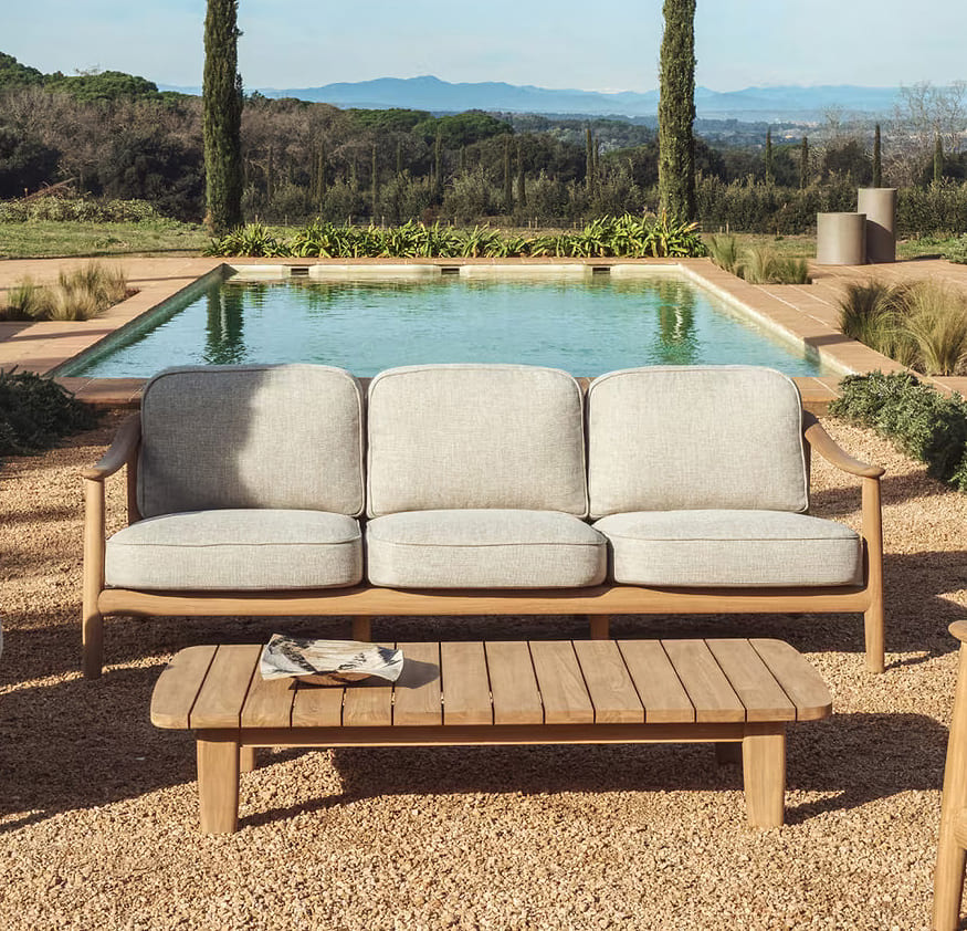 Диван Elunda S00113RO12 из массива тика — это сочетание премиального дизайна, надежности и комфорта для обустройства террасы, сада или веранды.