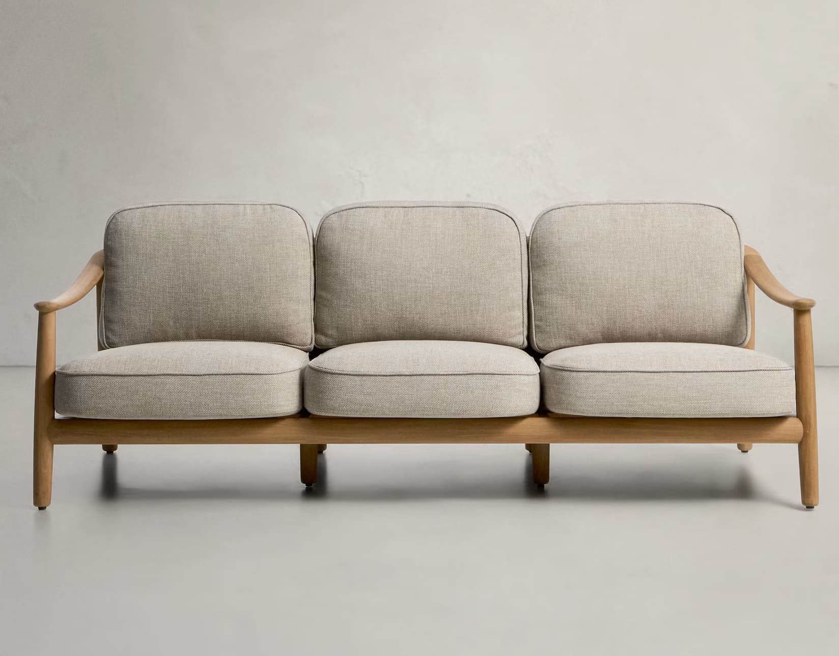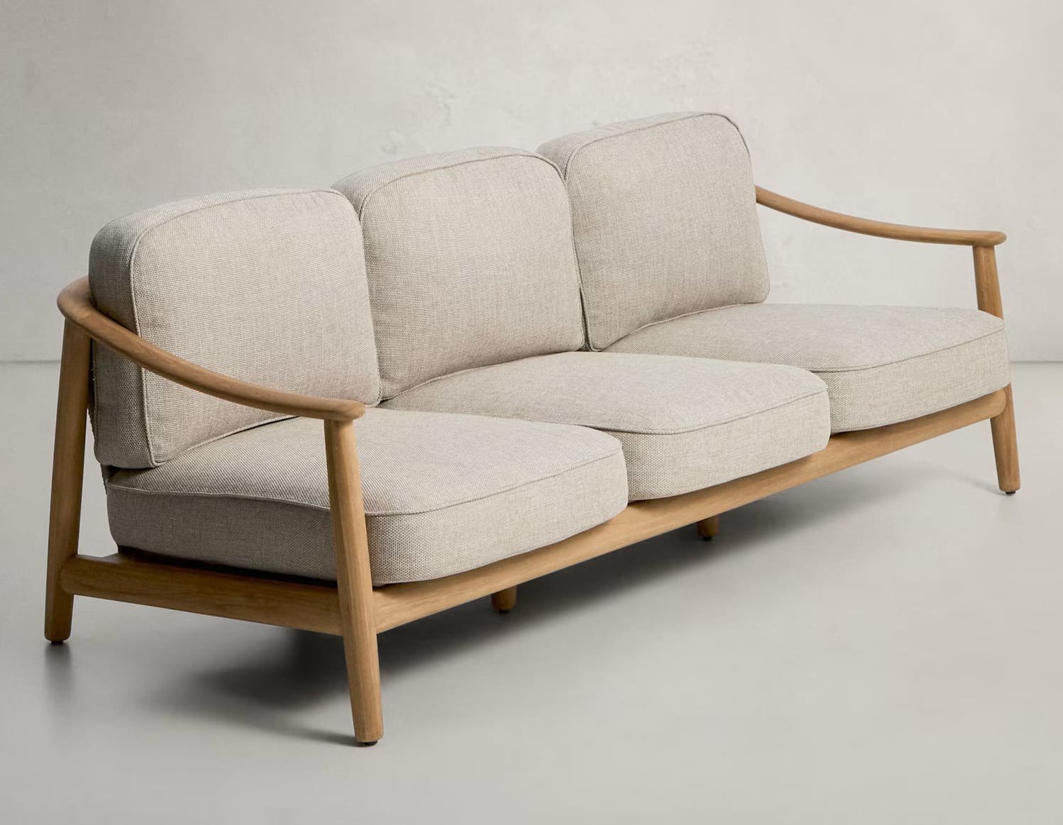 - Трехместный диван, изготовленный из массива тикового дерева.