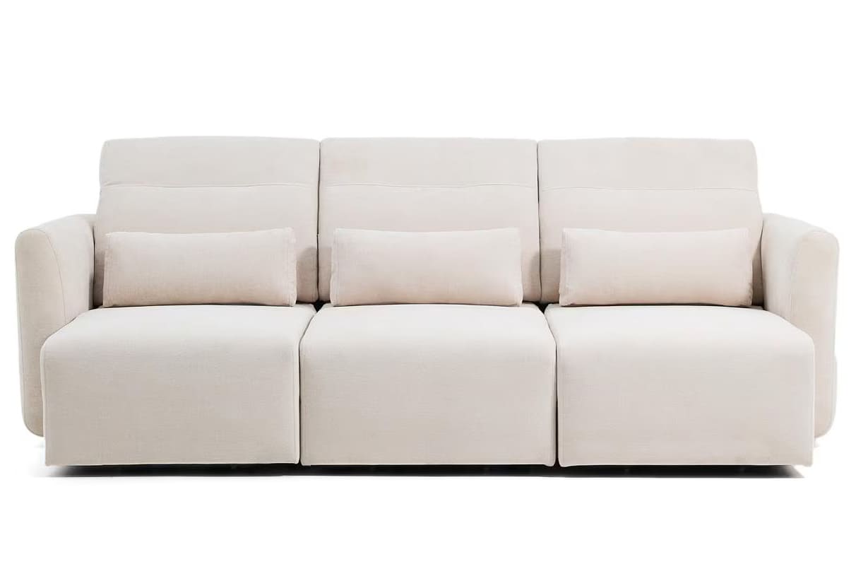 - Диван с моторизованными выдвижными сиденьями, управляемыми с помощью пульта дистанционного управления и мобильного приложения. Обит тканью шенилл с мелкой структурой, приятной на ощупь и бархатистой текстурой, устойчивой к истиранию и выцветанию, пригодной для машинной стирки.