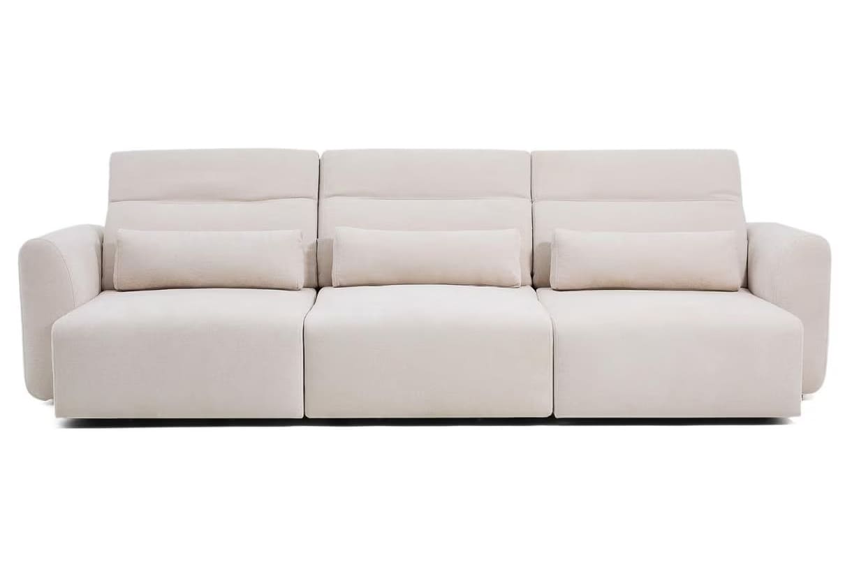 - Диван с моторизованными выдвижными сиденьями, управляемыми с помощью пульта дистанционного управления и мобильного приложения. Обит тканью шенилл с мелкой структурой, приятной на ощупь и бархатистой текстурой, устойчивой к истиранию и выцветанию, пригодной для машинной стирки.