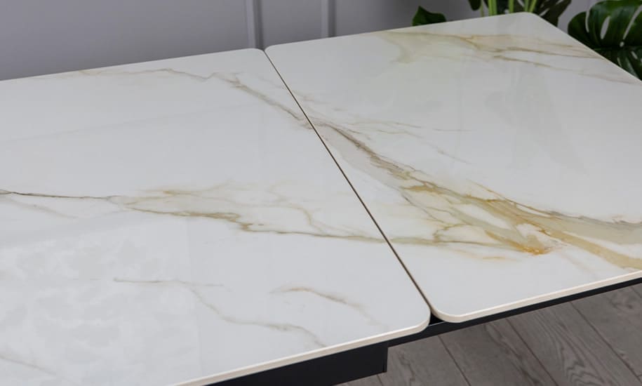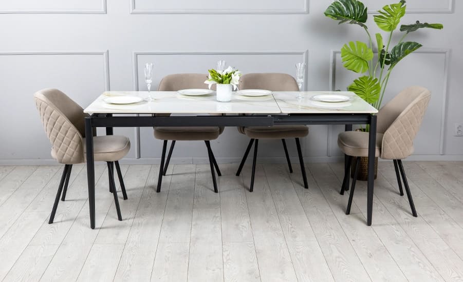 Раскладной механизм позволяет увеличить длину стола с 1200 до 1800 мм благодаря боковой вкладке. Эта функция позволяет быстро адаптировать пространство от компактного решения для повседневного использования до просторного стола для праздничных ужинов или встреч в кругу близких.