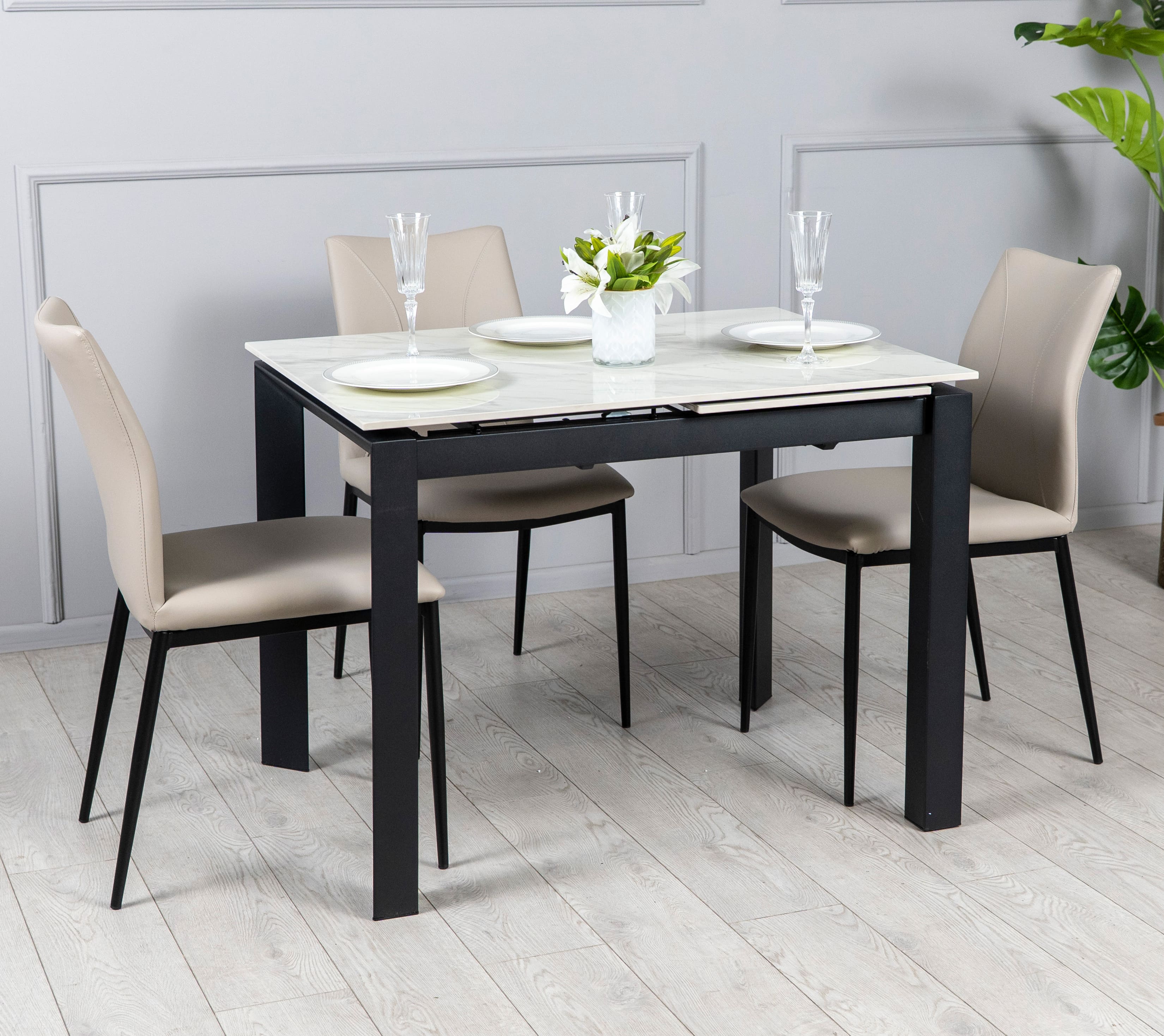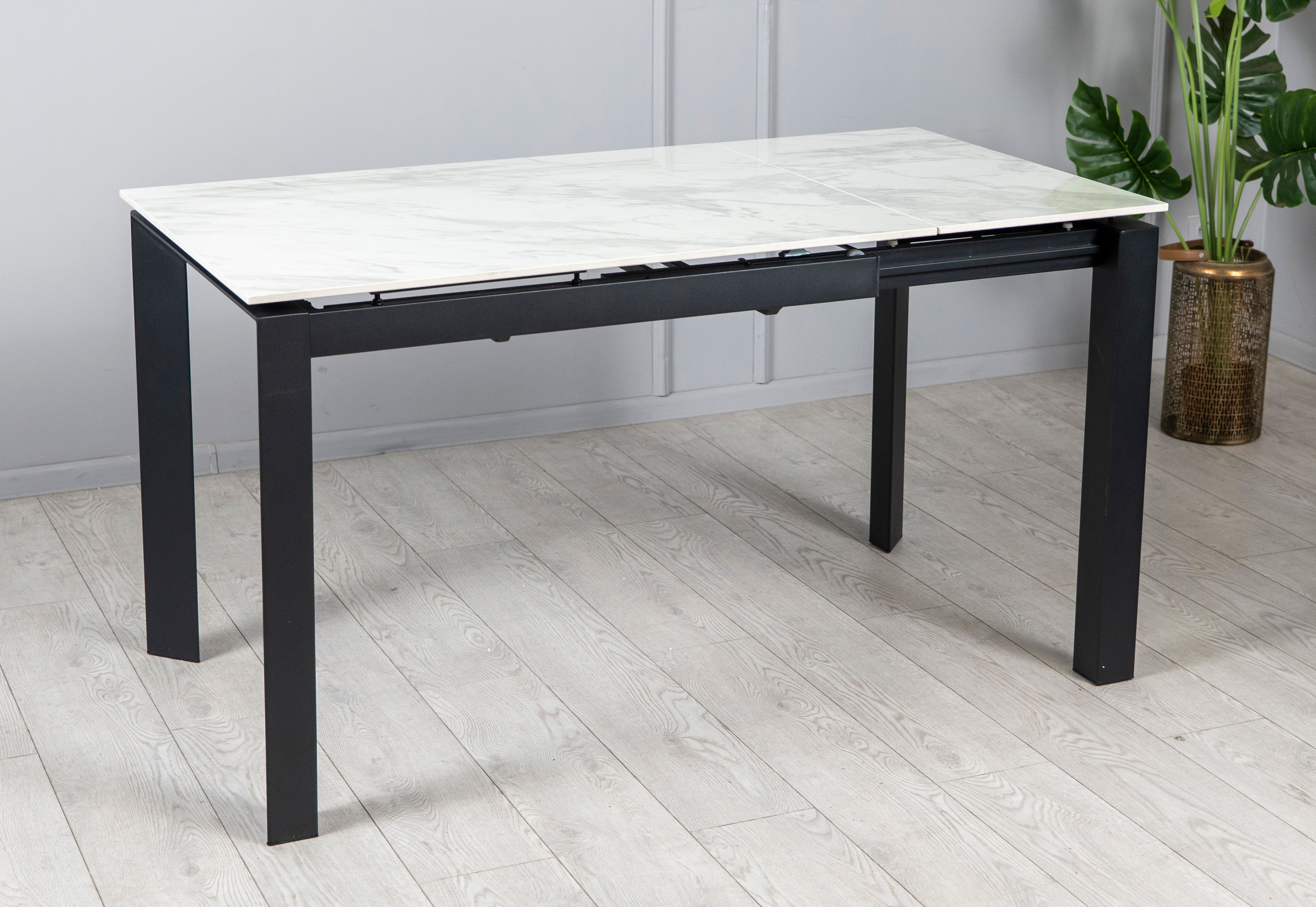 Керамический стол раскладной обеденный Prestol Ларс Белый глянец 75х100 (140) см