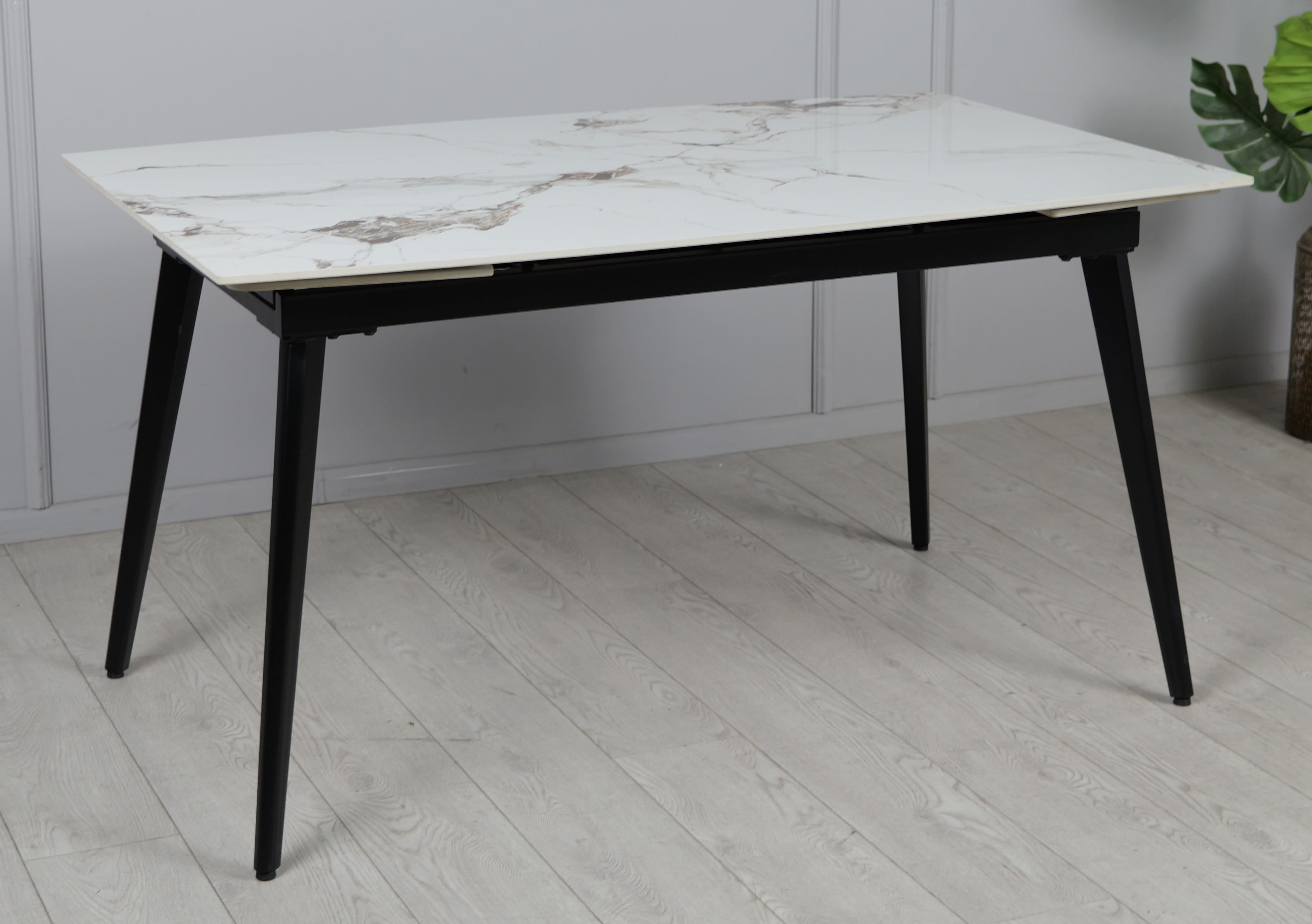 Керамический стол раскладной обеденный Prestol Люкс Белый глянец 80х120 (180) см