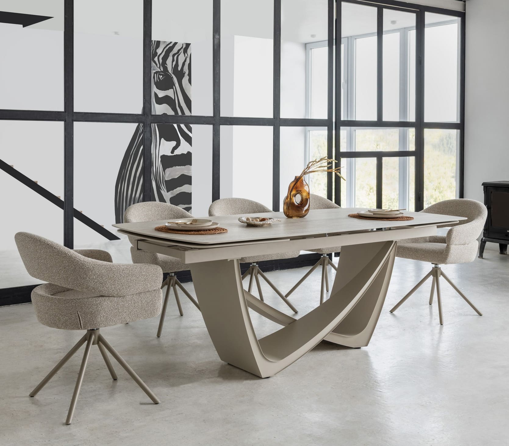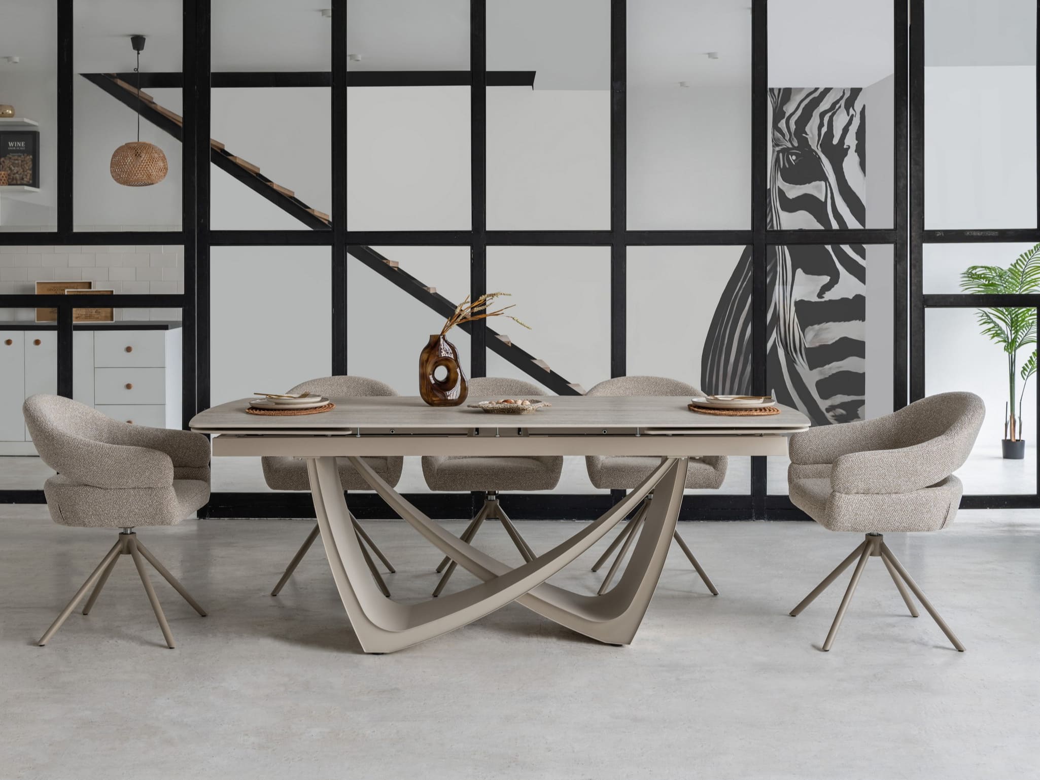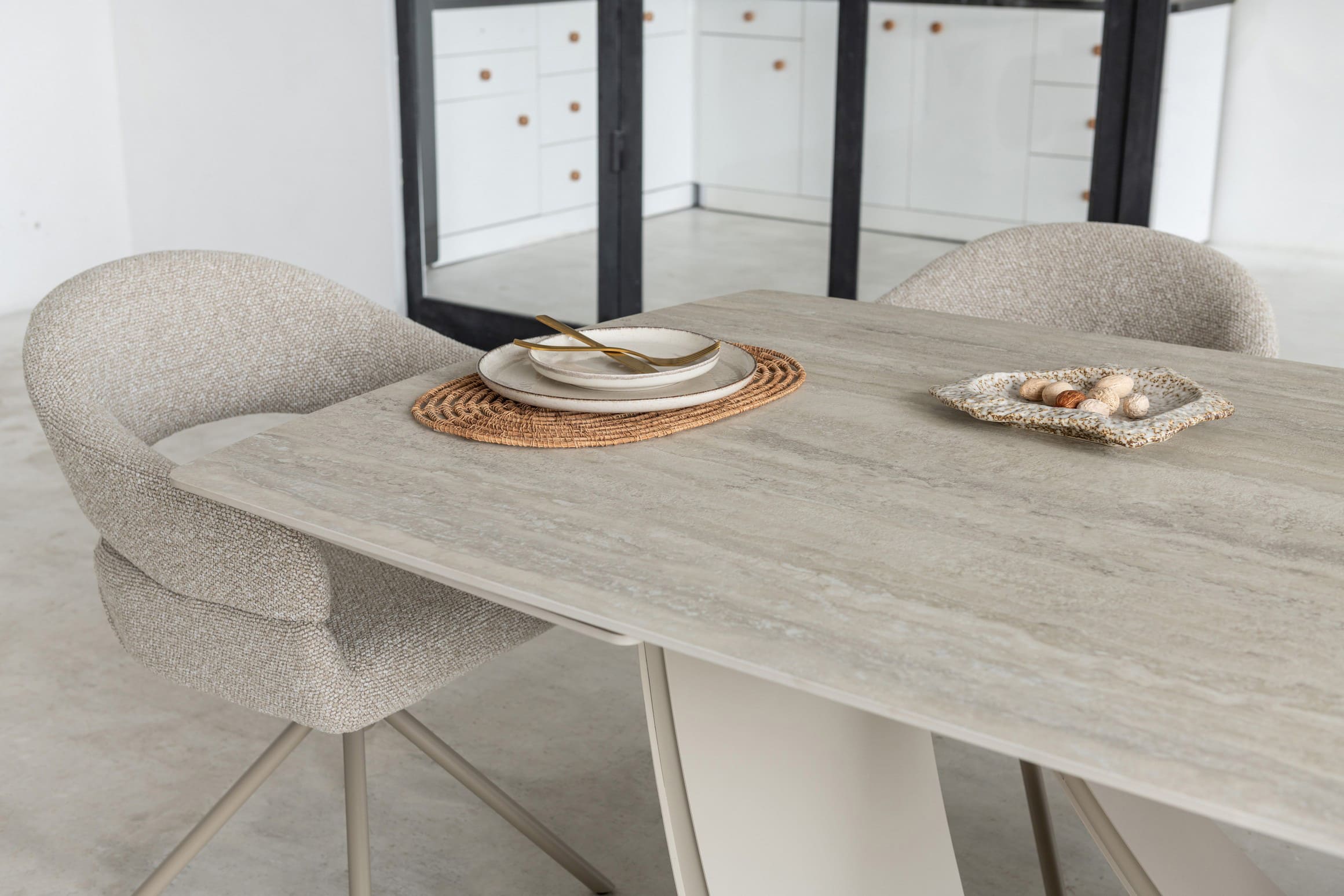 Стол Беатриче TML-994 в оттенке грей травертин + бежевый — это воплощение элегантности, практичности и современного стиля для просторных кухонь и столовых. Величественная прямоугольная форма, столешница из матовой керамики с эффектом натурального камня и надёжное металлическое основание в тёплом бежевом цвете создают роскошное сочетание дизайна и функциональности.