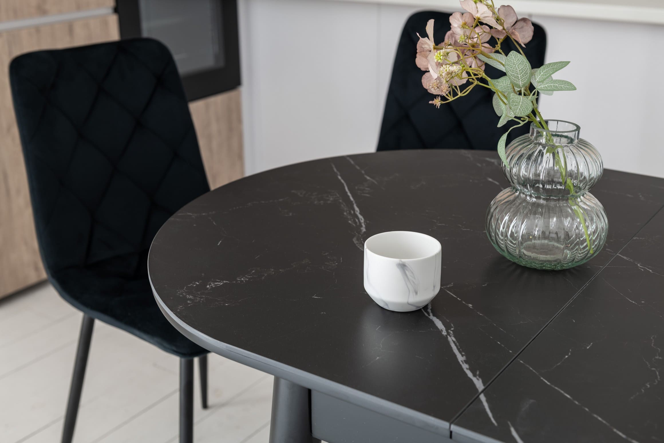 Стол Vetro Mebel TM-85 Черный оникс - то элегантный и роскошный оттенок, который придает вашему столу изысканный и современный вид. Этот цвет керамики создает изысканную атмосферу и стильный акцент в любом интерьере.