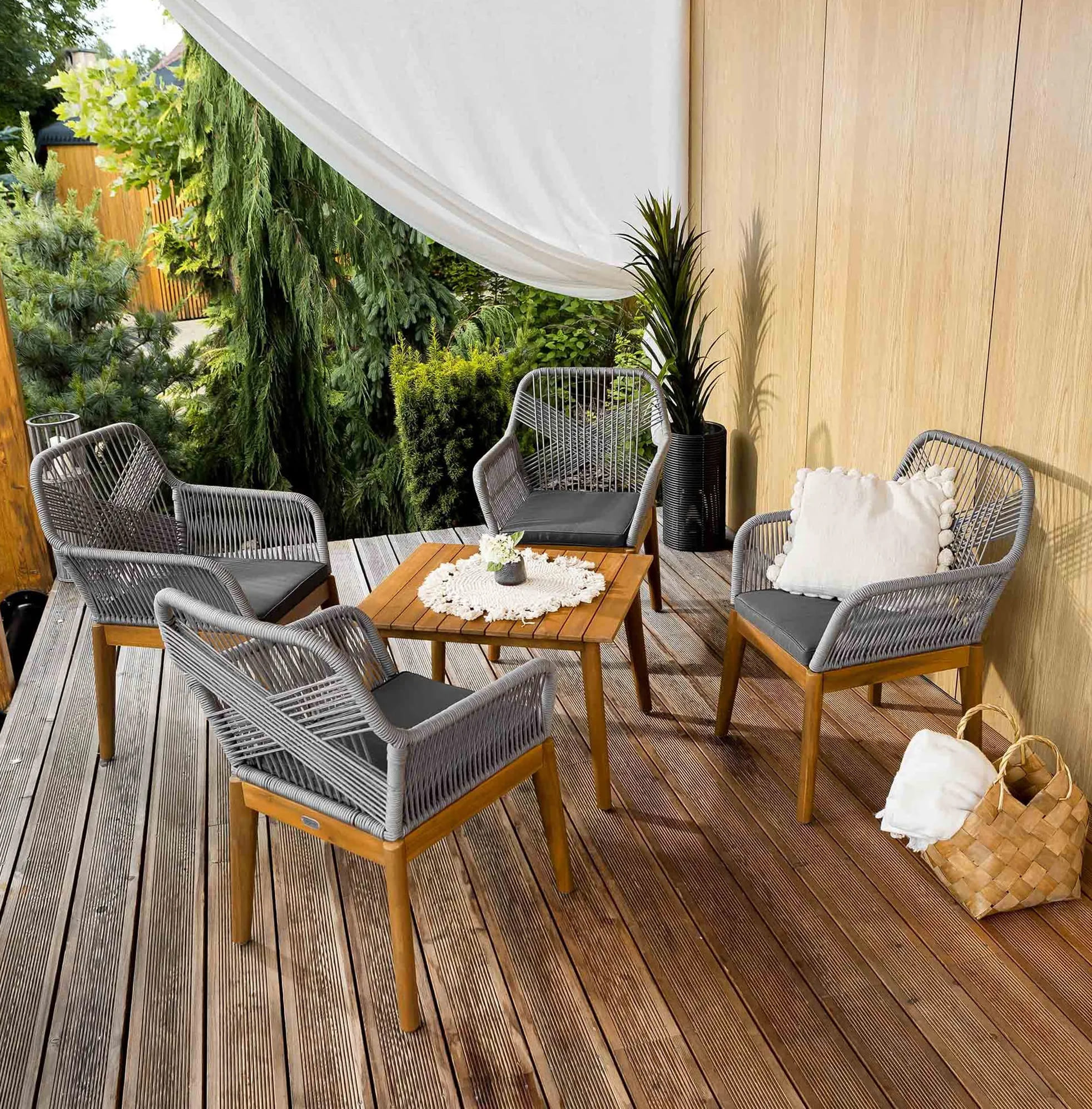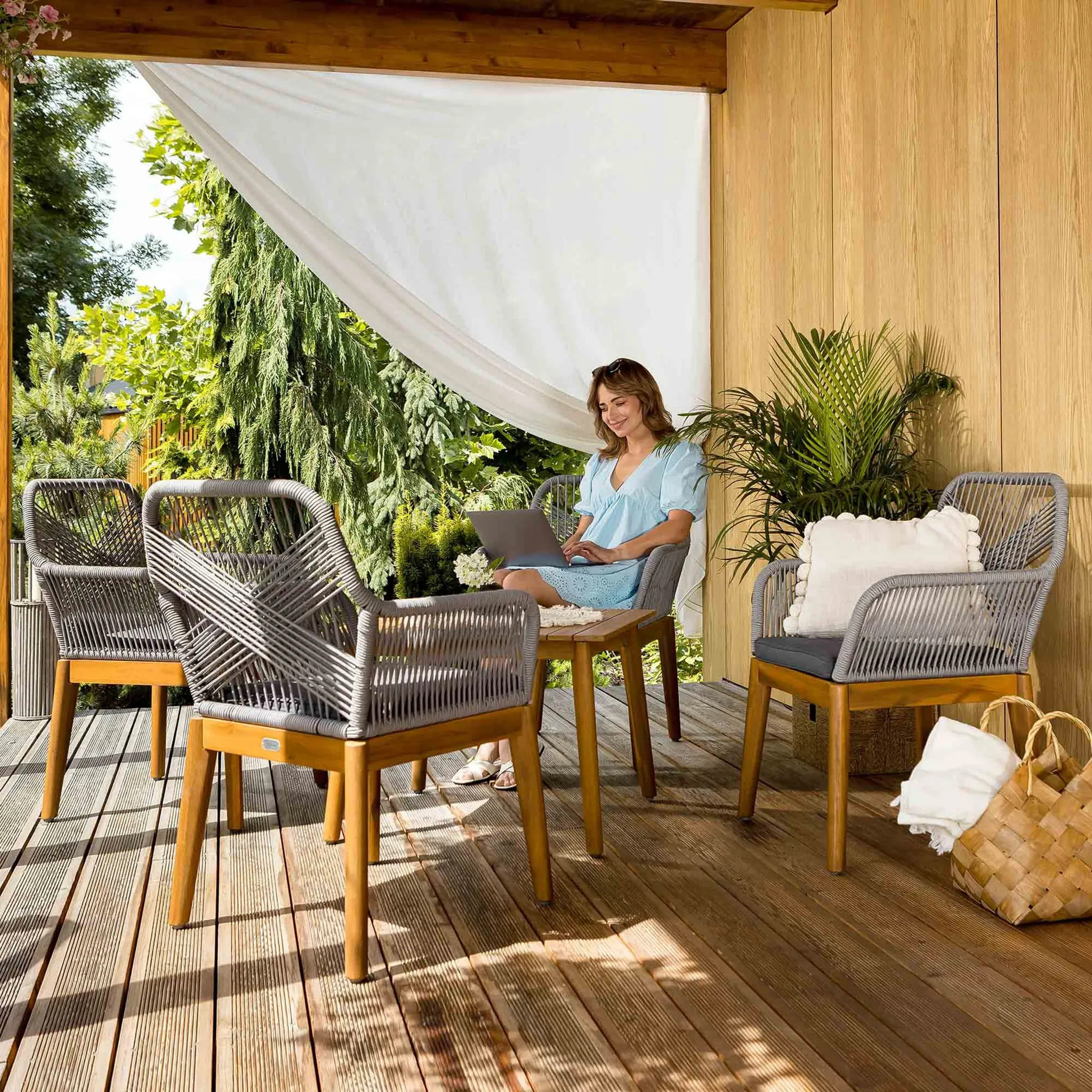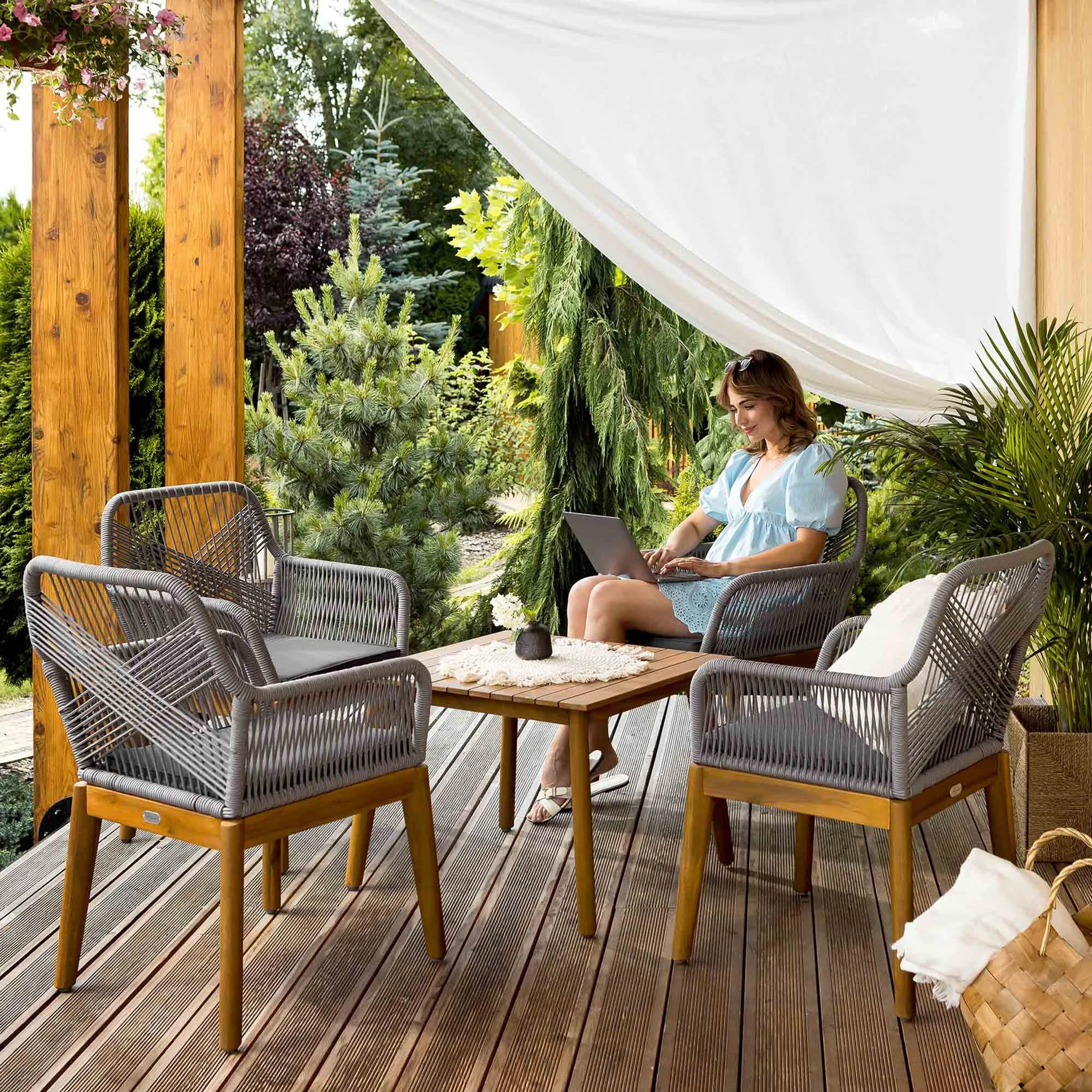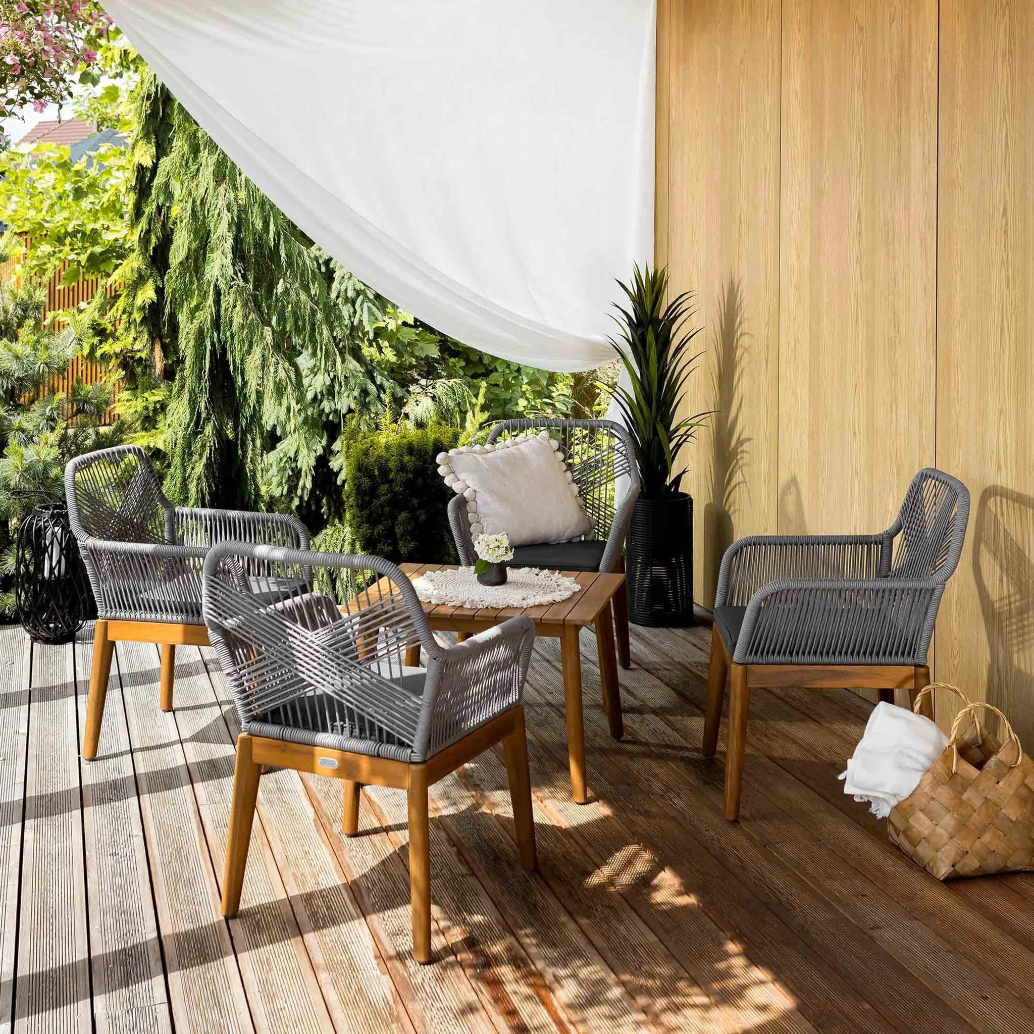 - Комплект садовой мебели для 4 человек — идеален для террасы, сада и зоны отдыха.