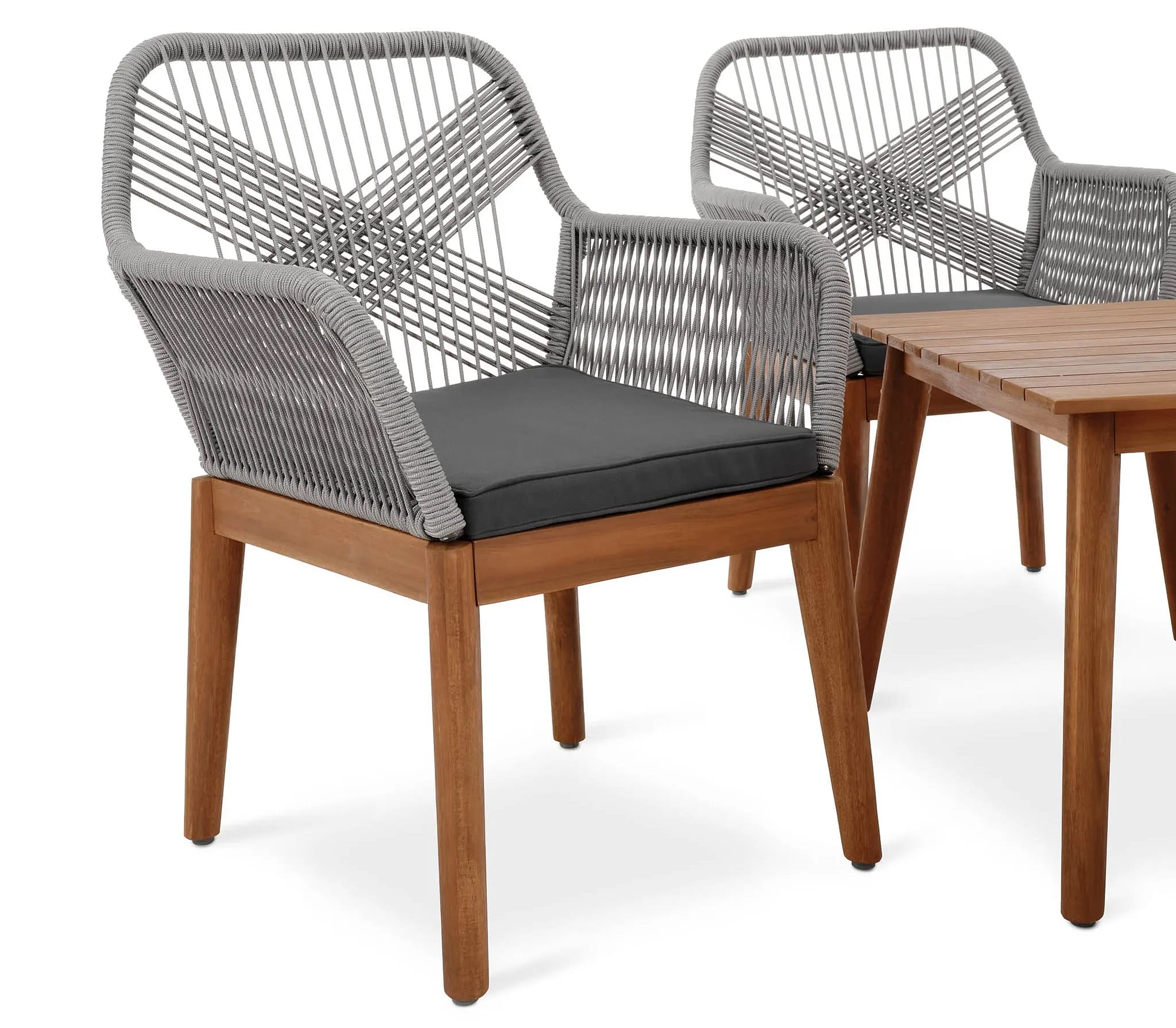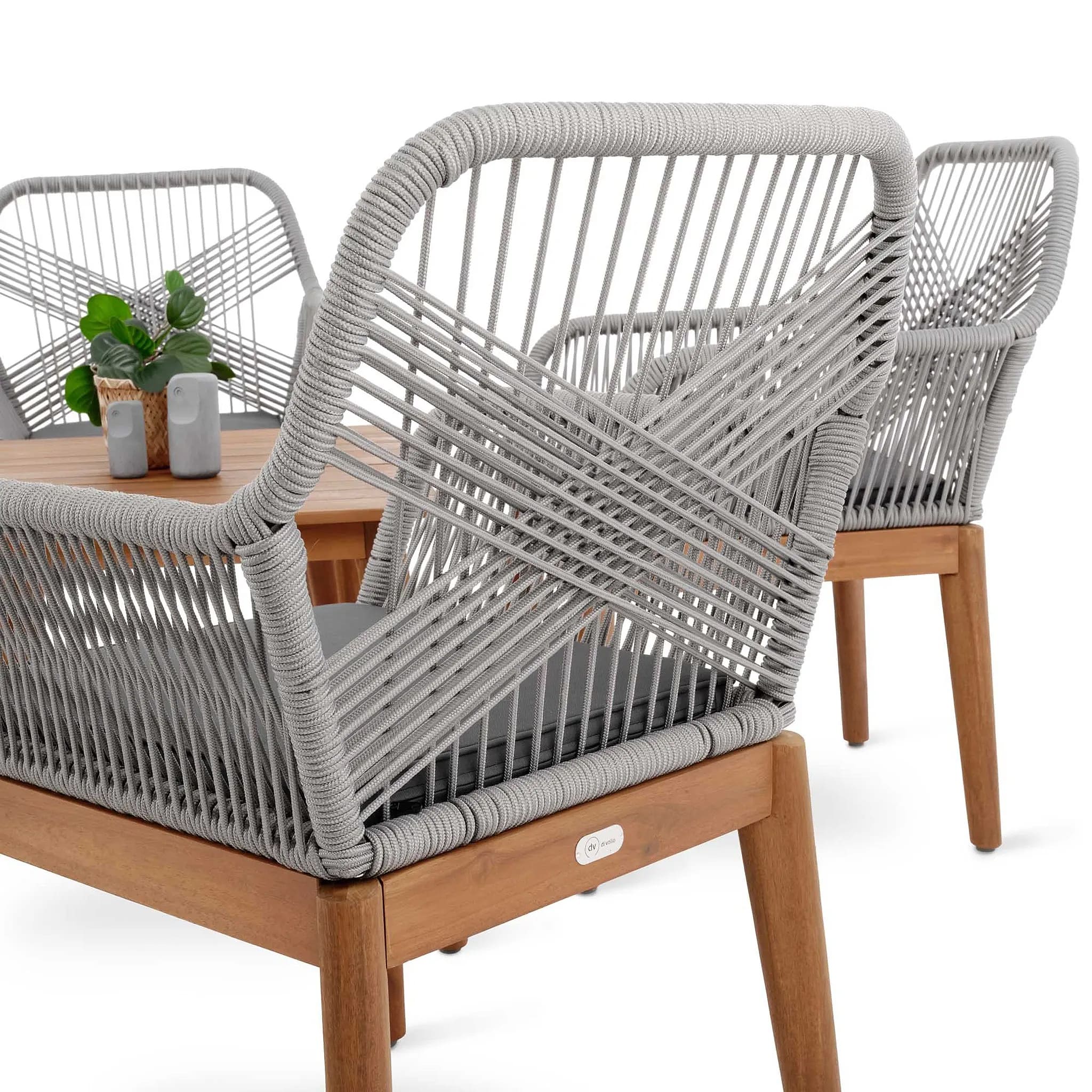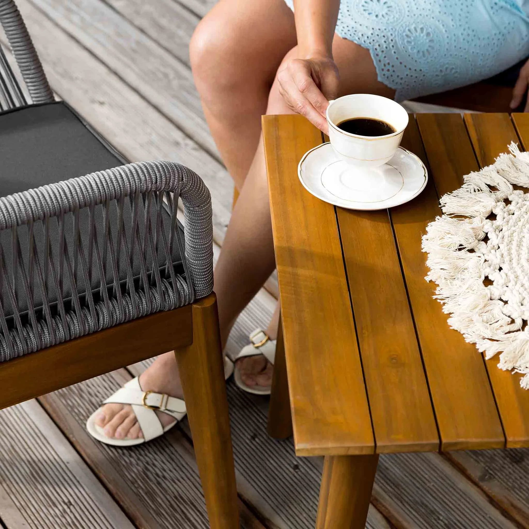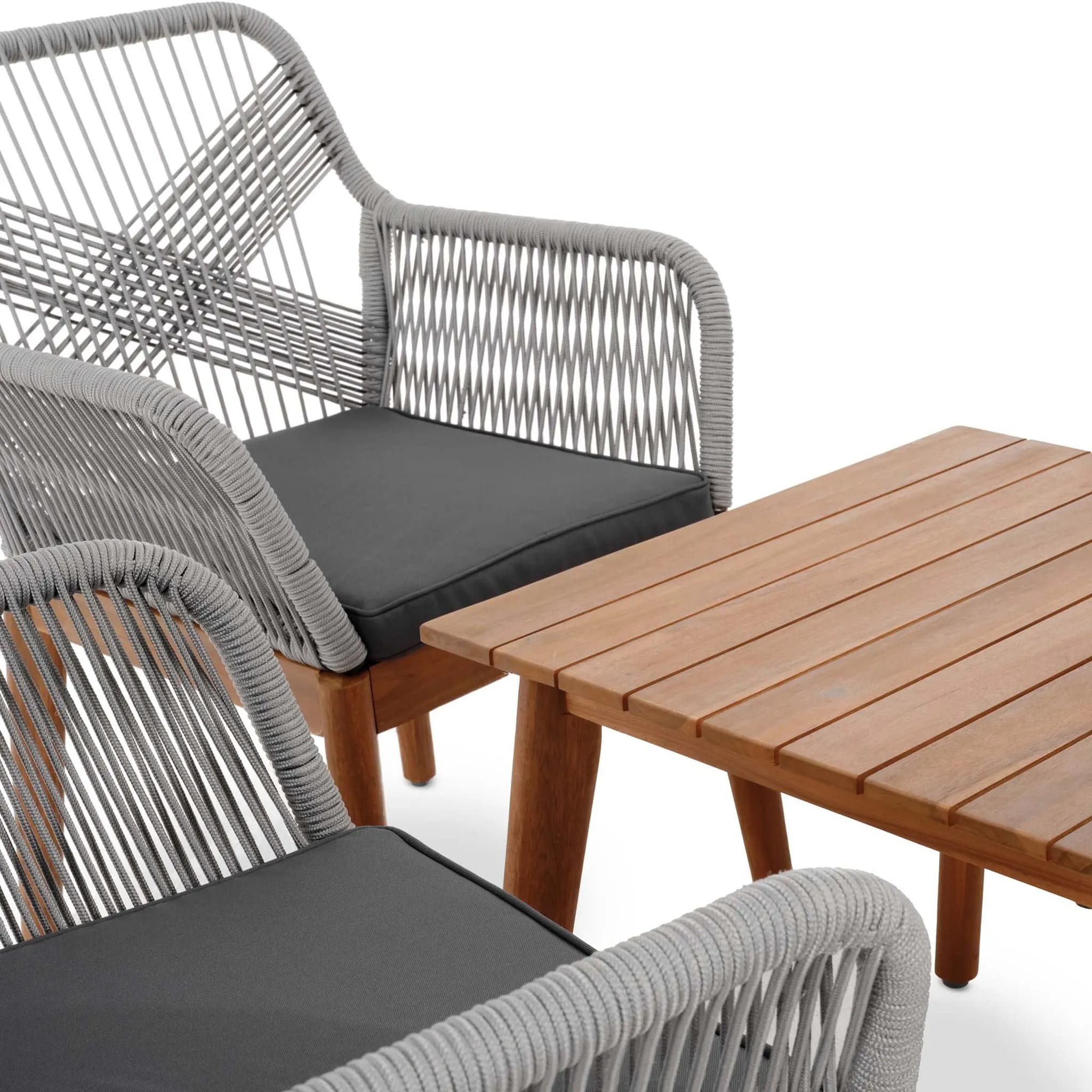 Конструкция сочетает алюминиевый каркас, полипропиленовое плетение и натуральную древесину акации, что обеспечивает высокую прочность и устойчивость к погодным условиям. Благодаря современному дизайну и универсальной цветовой гамме комплект гармонично впишется в любой экстерьер. Мягкие подушки с пропиткой повышают комфорт и простоту ухода.