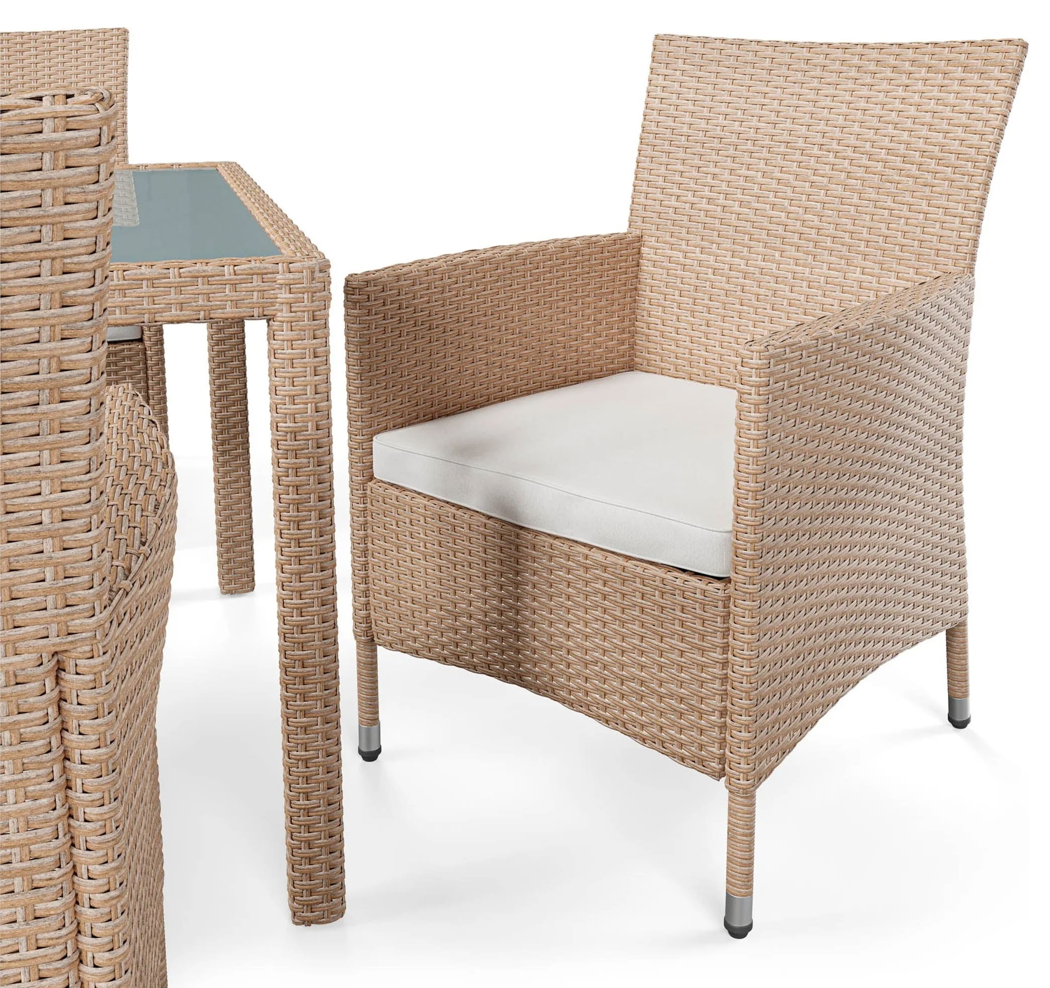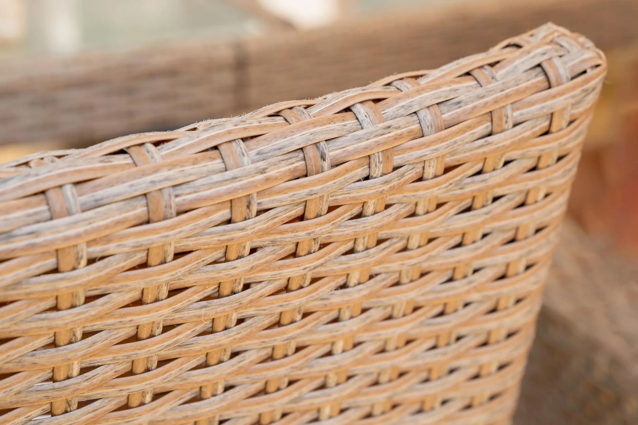 - Верхняя обивка, сделанная из искусственного ротанга, отлично противостоит палящему солнцу, сильными дождям и любым другим погодным условиям.