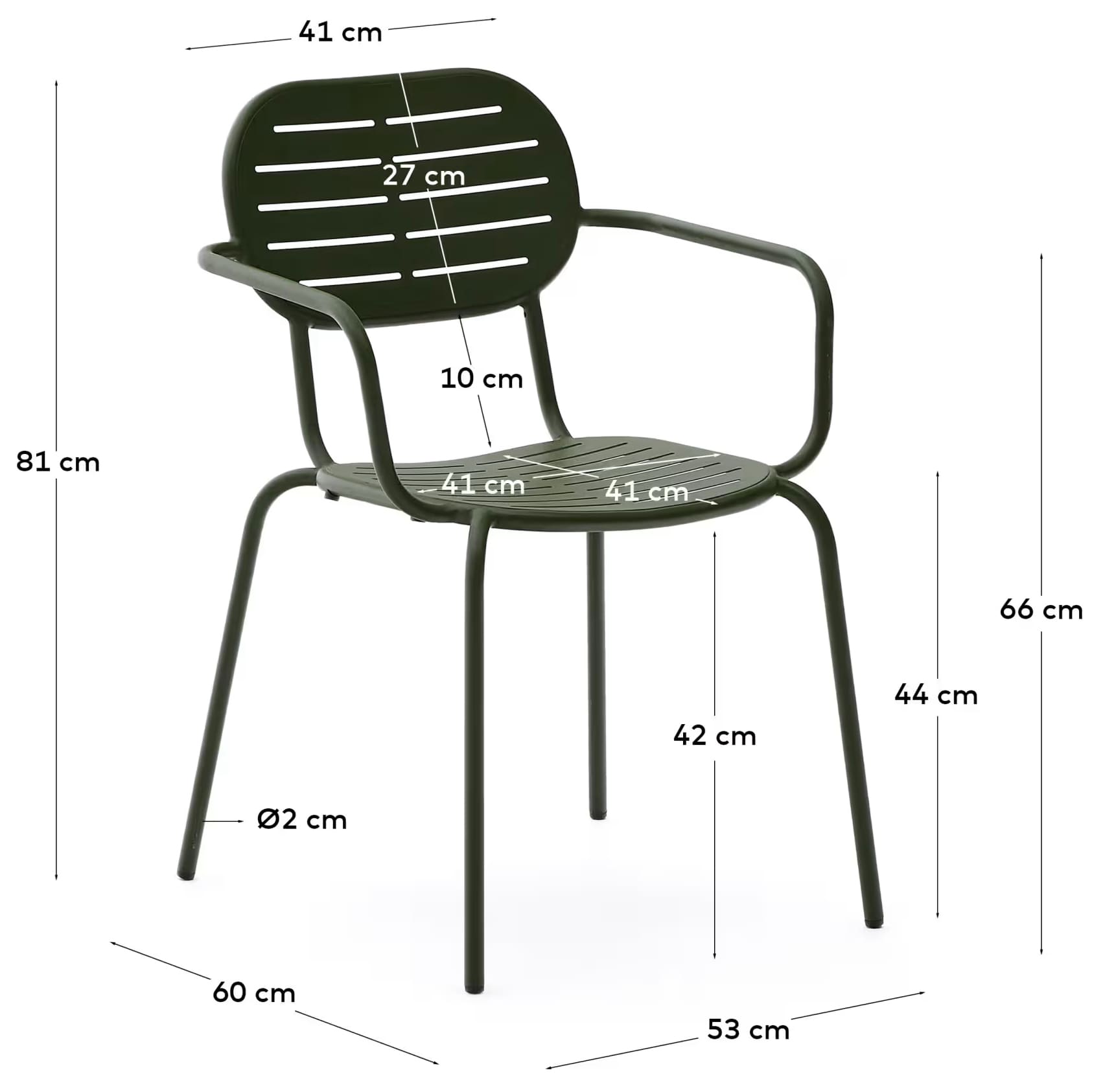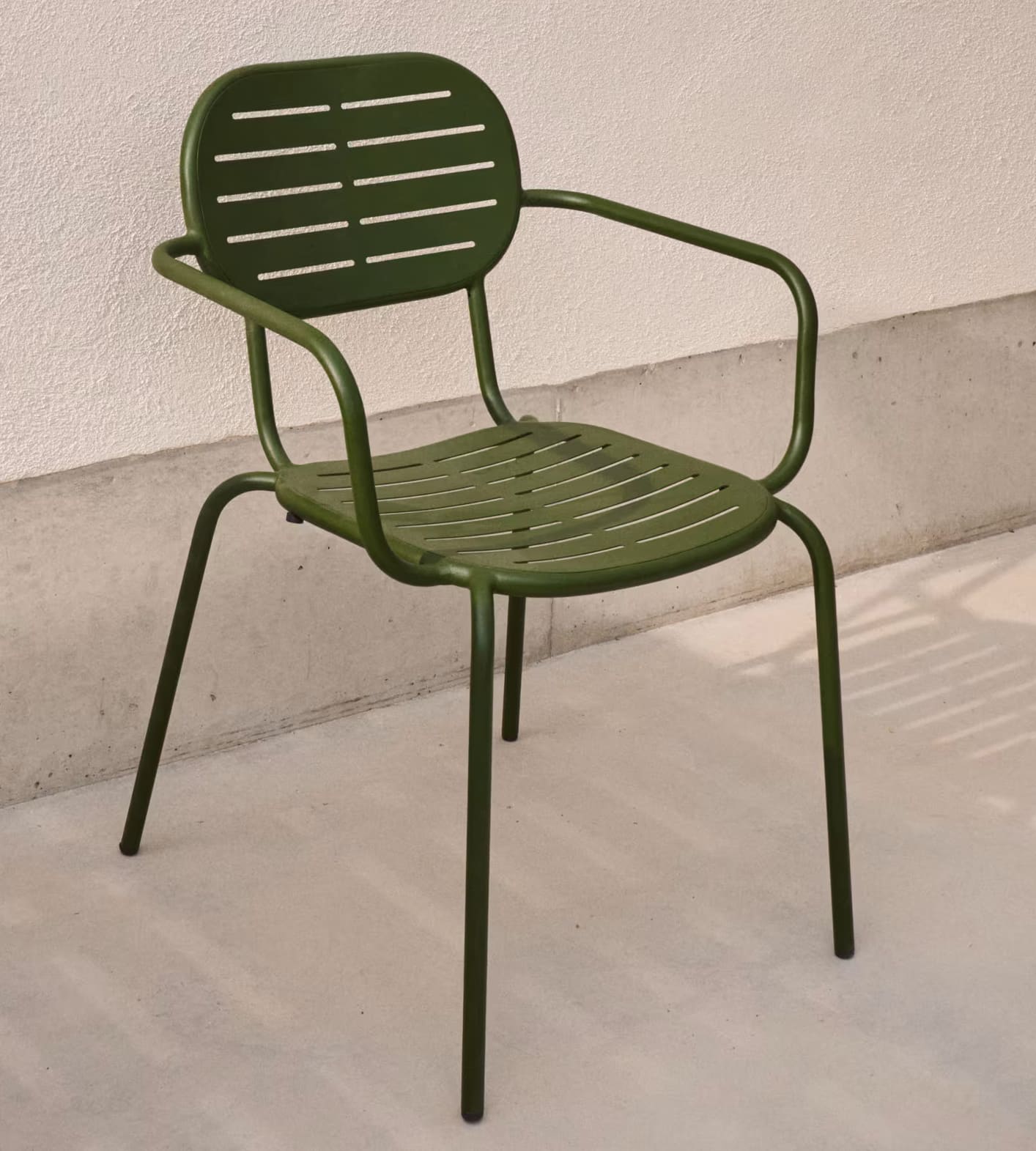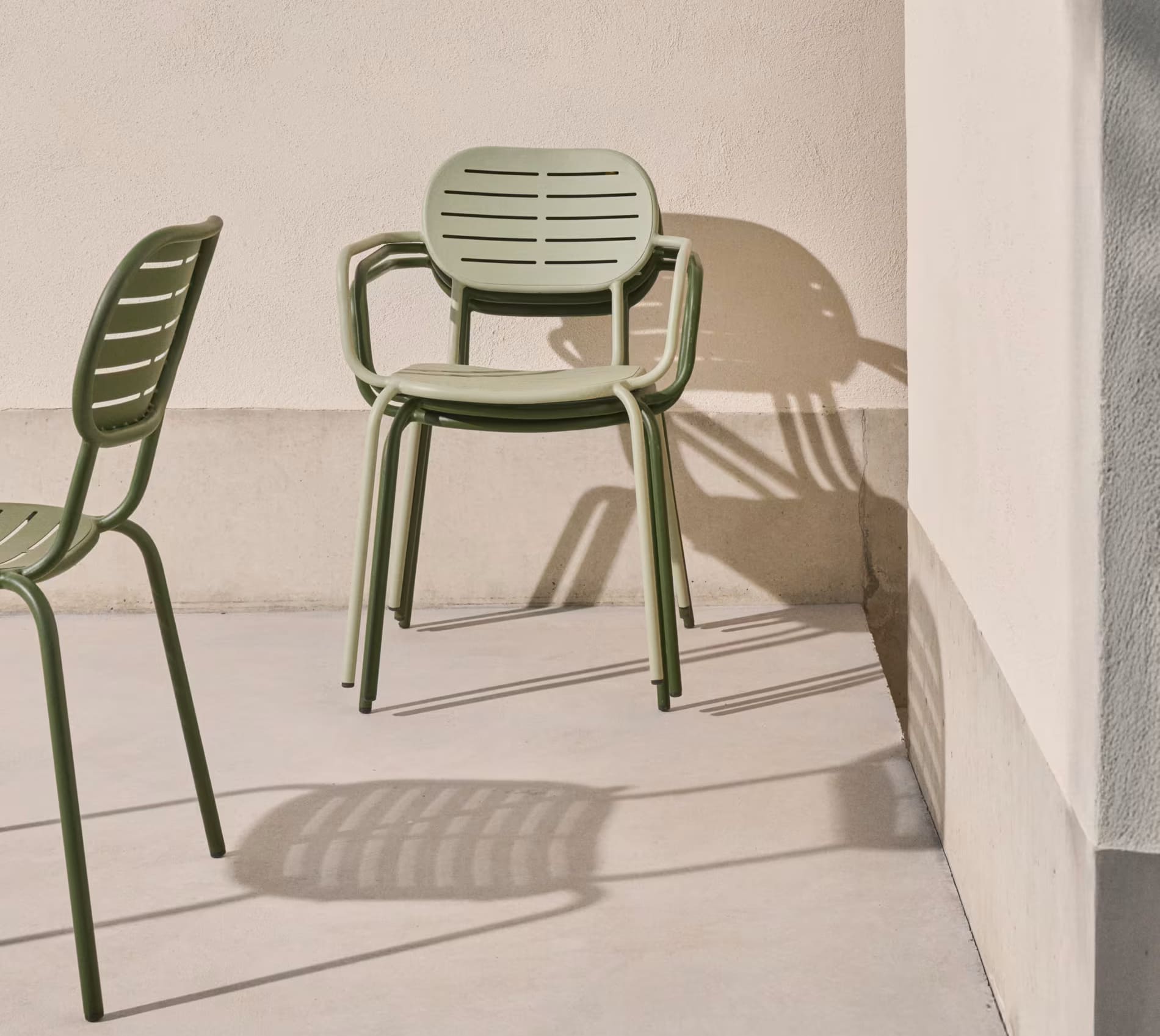 Комплект выполнен из прочной оцинкованной стали, устойчивой к влаге, коррозии и перепадам температуры. Минималистичный дизайн с плавными линиями легко вписывается в современные outdoor-пространства. Стулья штабелируются, что удобно для хранения.
