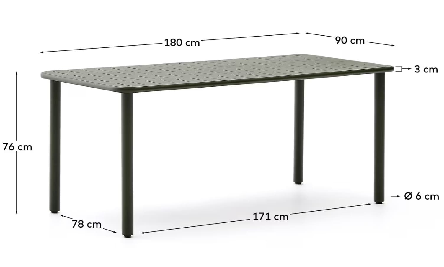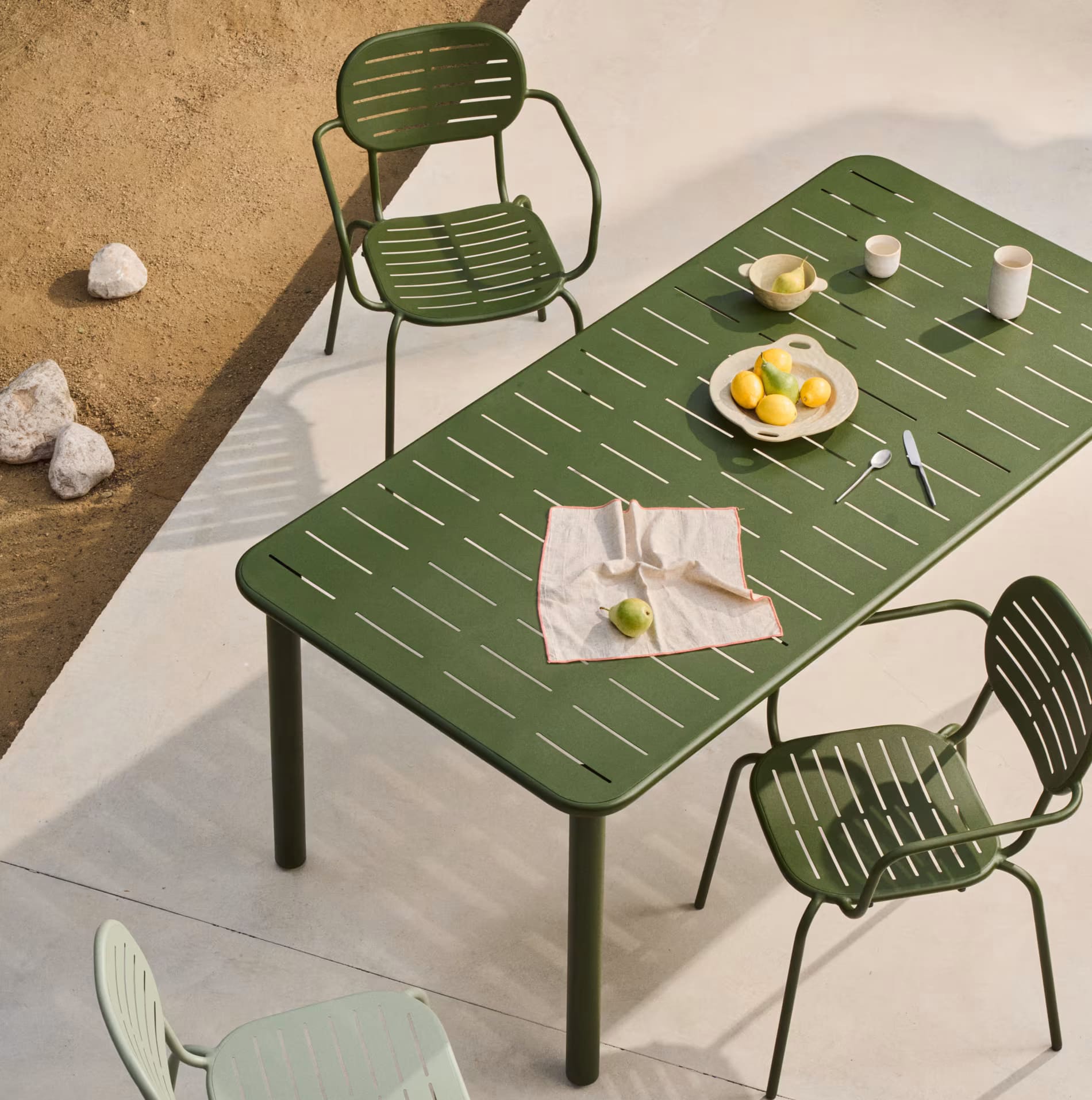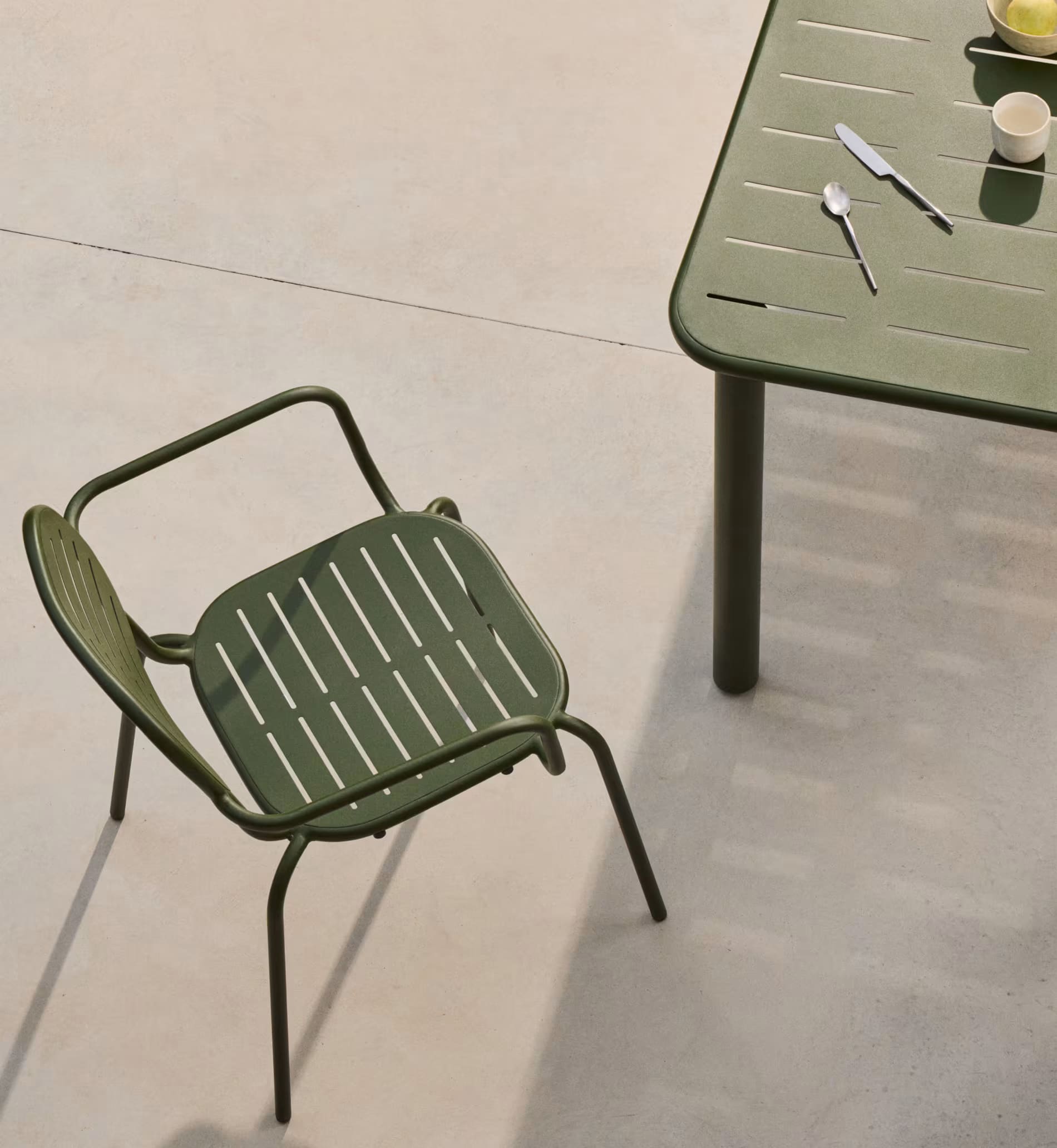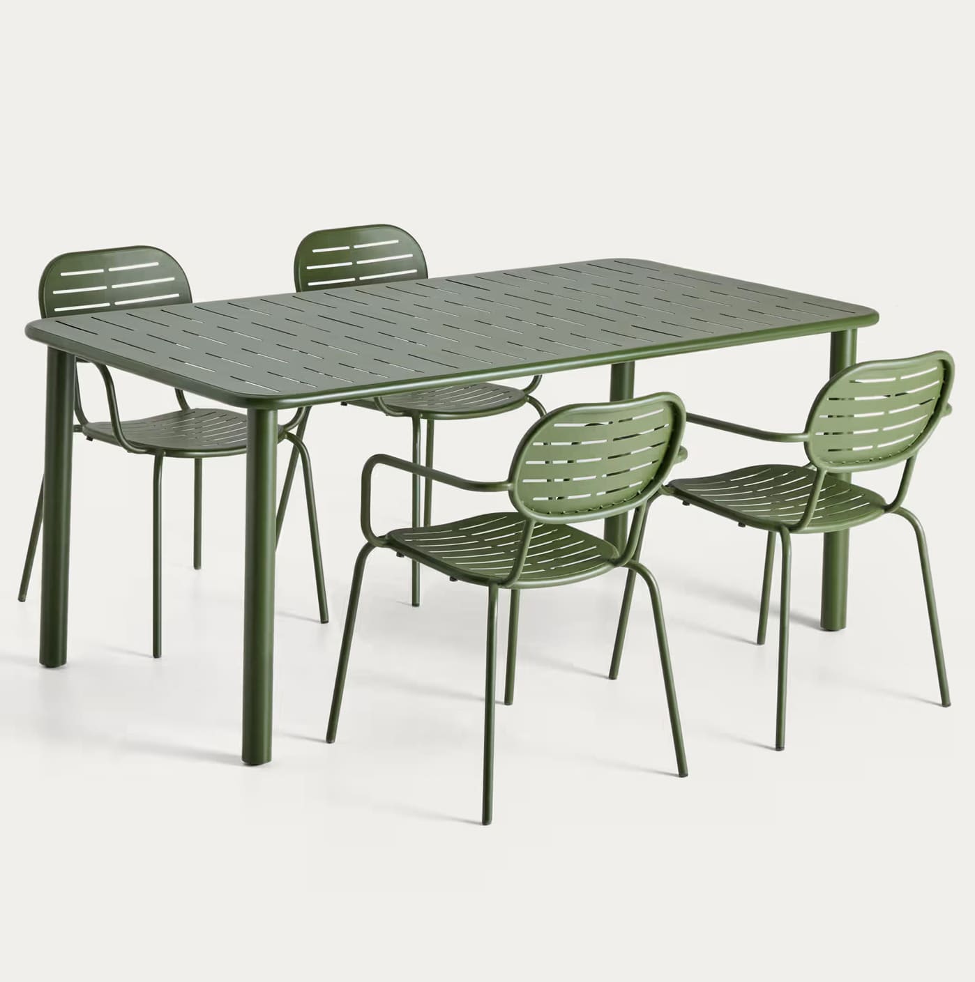 Садовый комплект Kave Home Brai (стол 180×90 см и 4 стула) зеленый — практичное решение для террасы, сада или кафе.