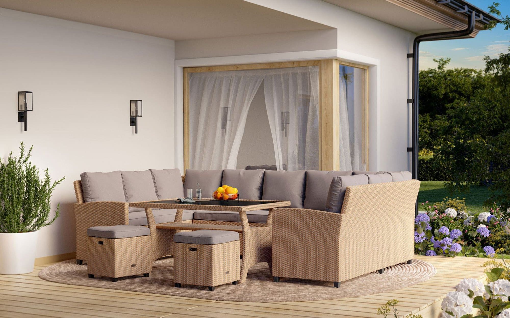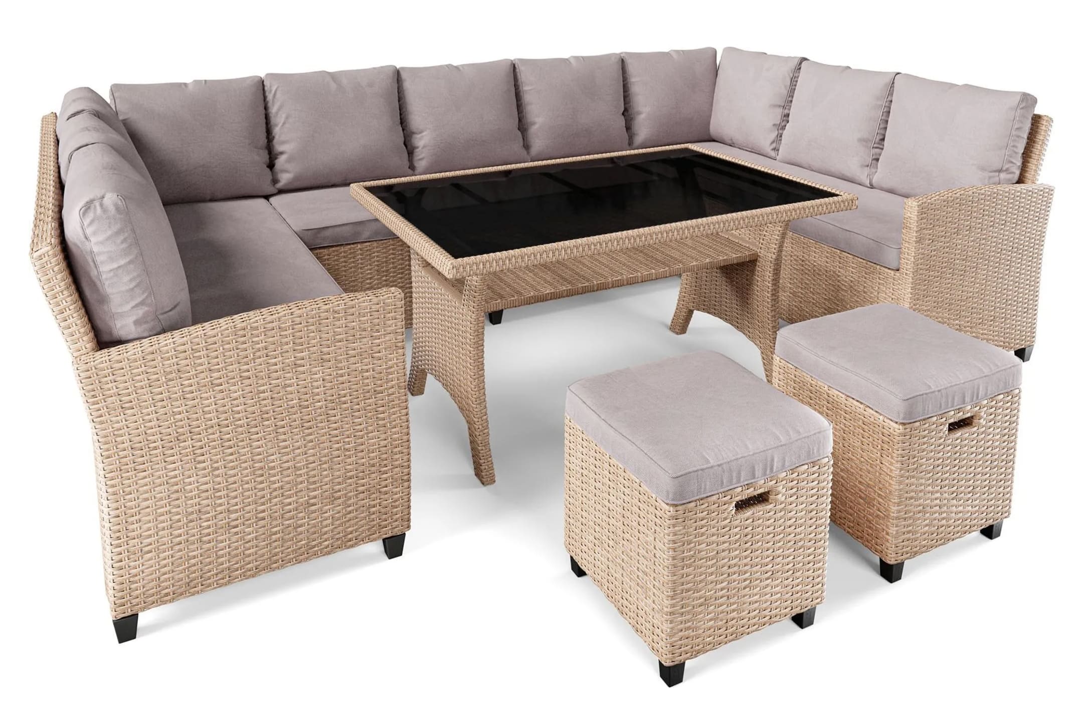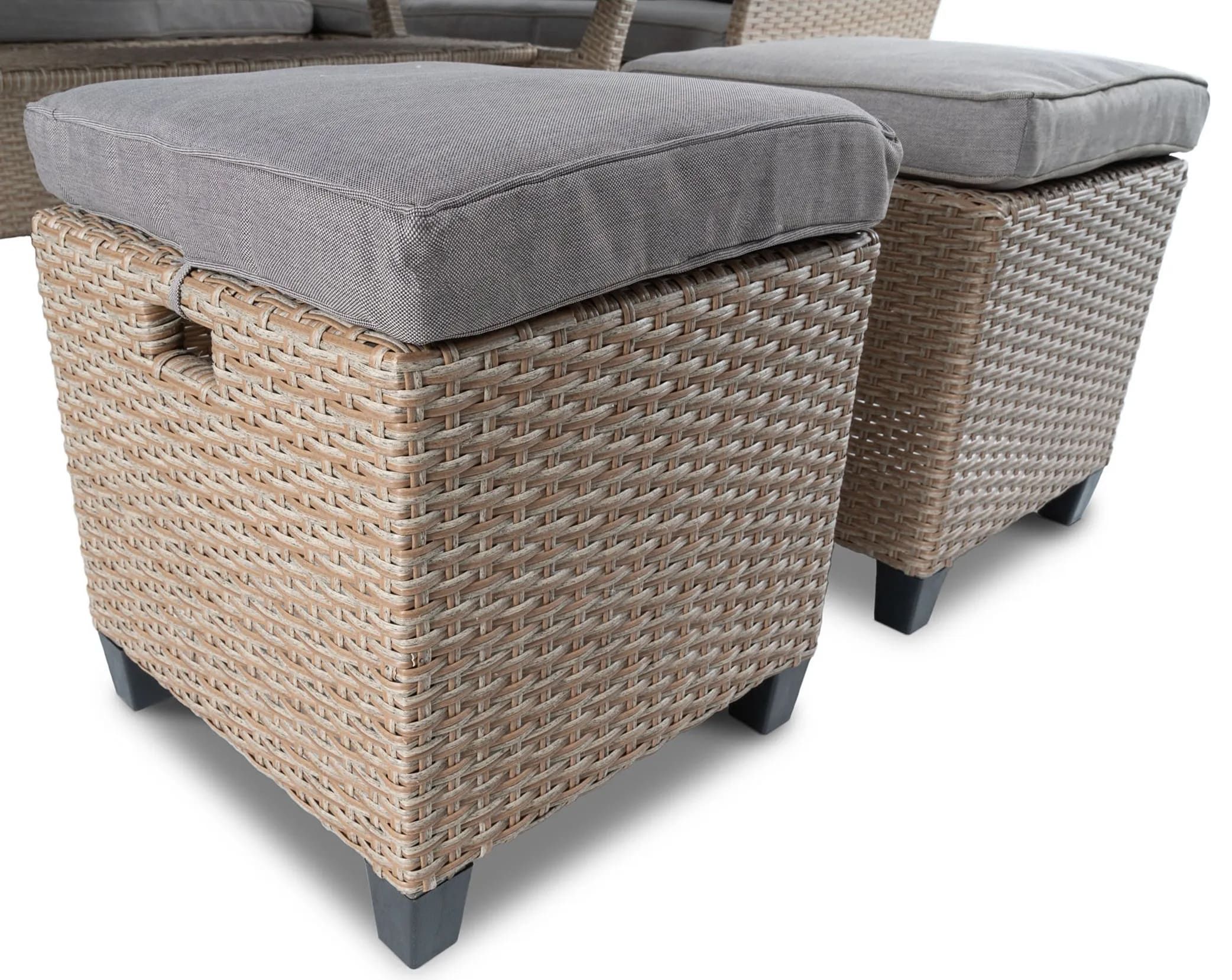 - Стальной каркас садового набора гарантирует стабильность и долговечность в течение многих лет использования. Плотное плетение из полиротанга обеспечивает максимальный комфорт во время сидения.