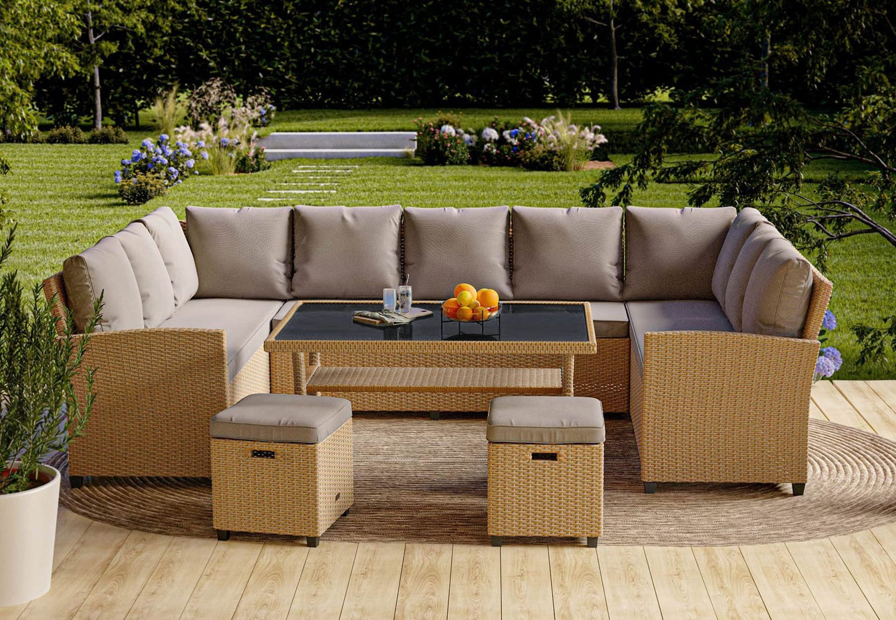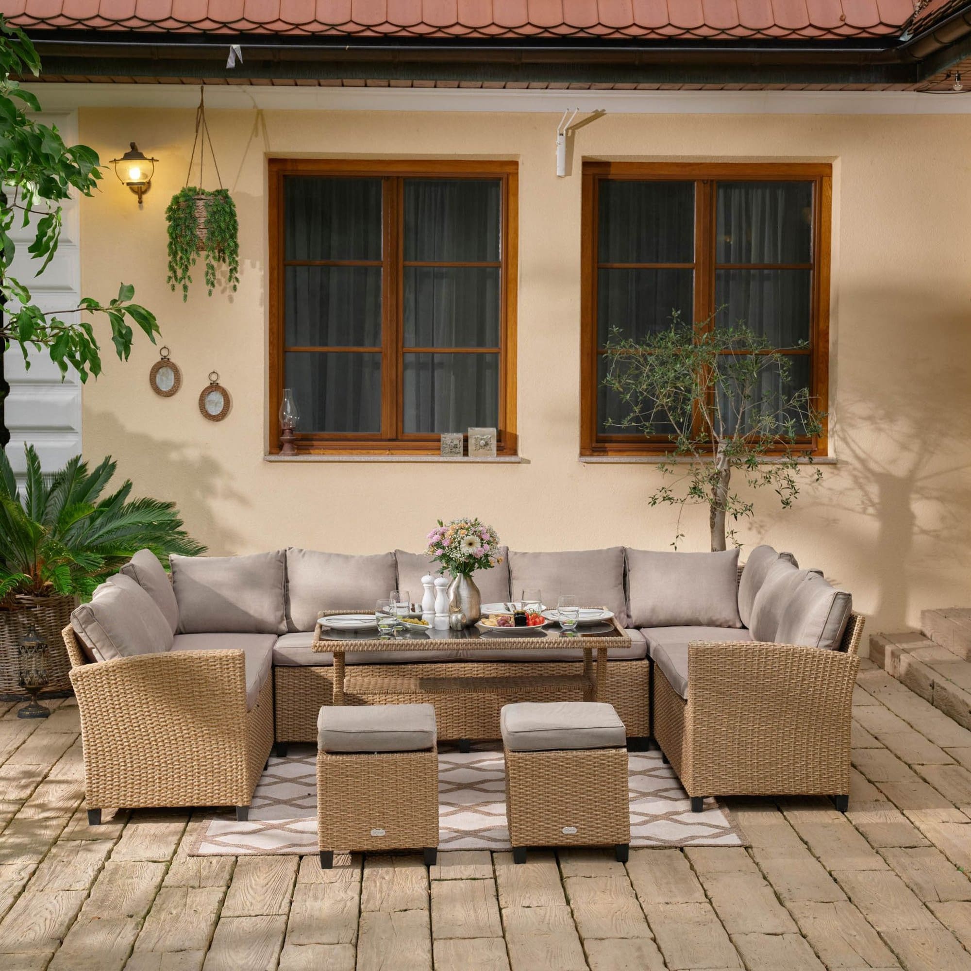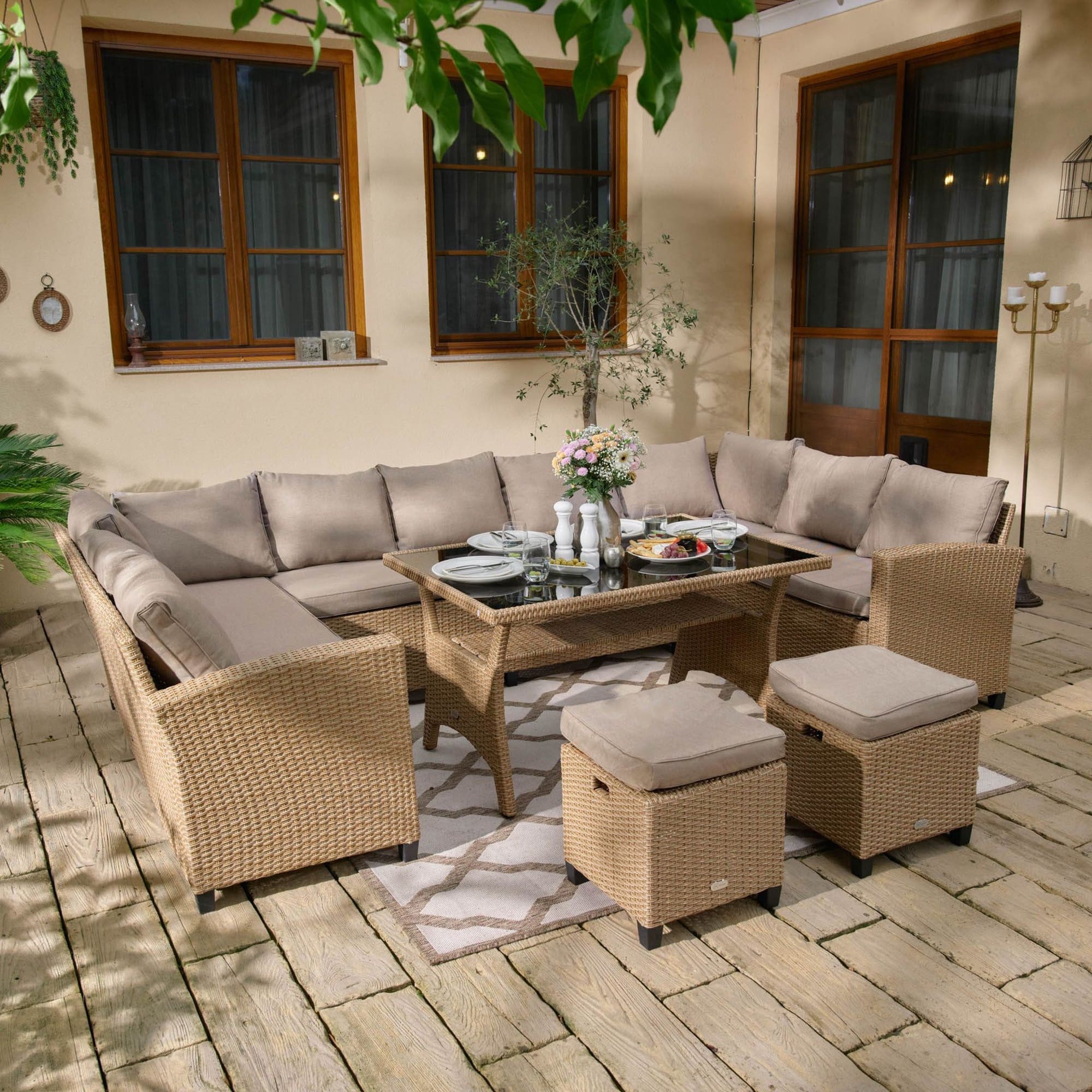 - Стальной каркас садового набора гарантирует стабильность и долговечность в течение многих лет использования. Плотное плетение из полиротанга обеспечивает максимальный комфорт во время сидения.