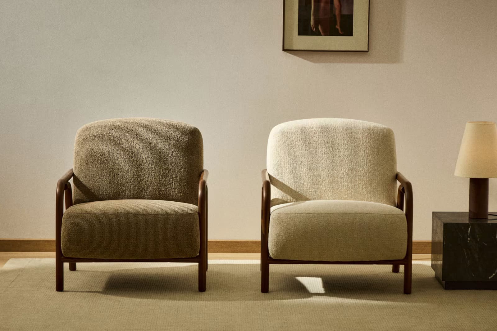 - Кресло, обитое двухцветной тканью шенилл с крупной структурой 3D-эффекта, очень мягкой на ощупь.