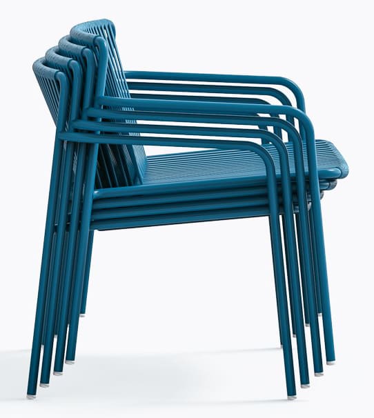 Кресло подходит для использования на улице, легко штабелируется и доступено в разных цветах, что делает его универсальным решением для дома и HoReCa.
