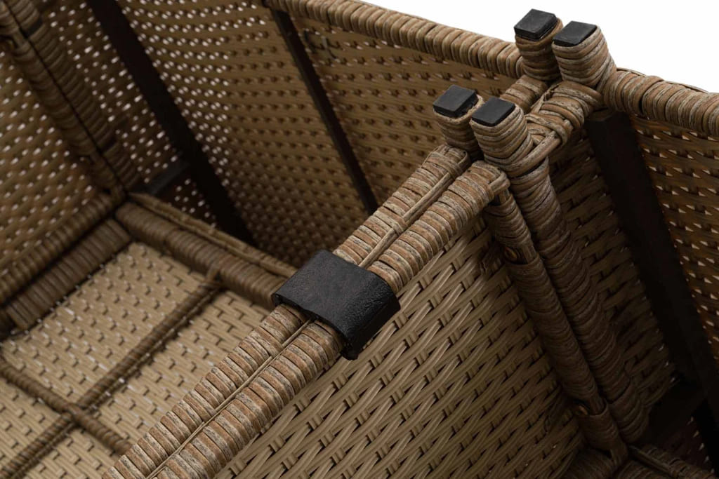 Каркас выполнен из прочной стали, а плетение из качественного искусственного ротанга устойчиво к влаге, УФ-лучам и перепадам температур. Столик оснащен столешницей из закаленного стекла, что придает комплекту современный вид и облегчает уход.