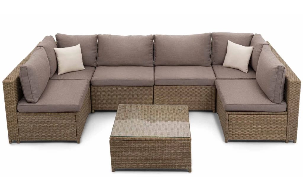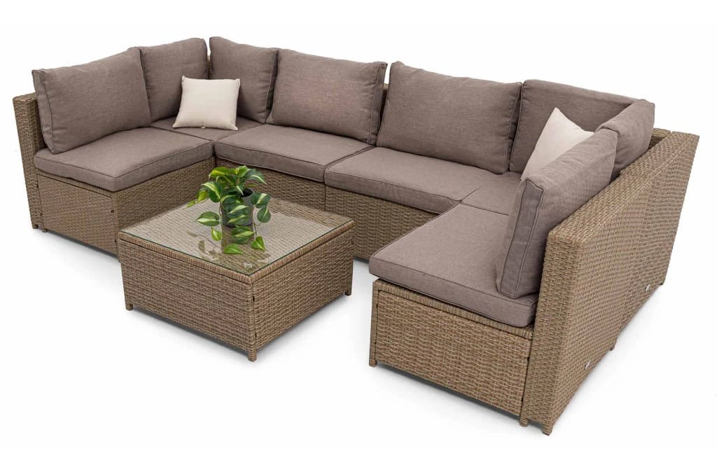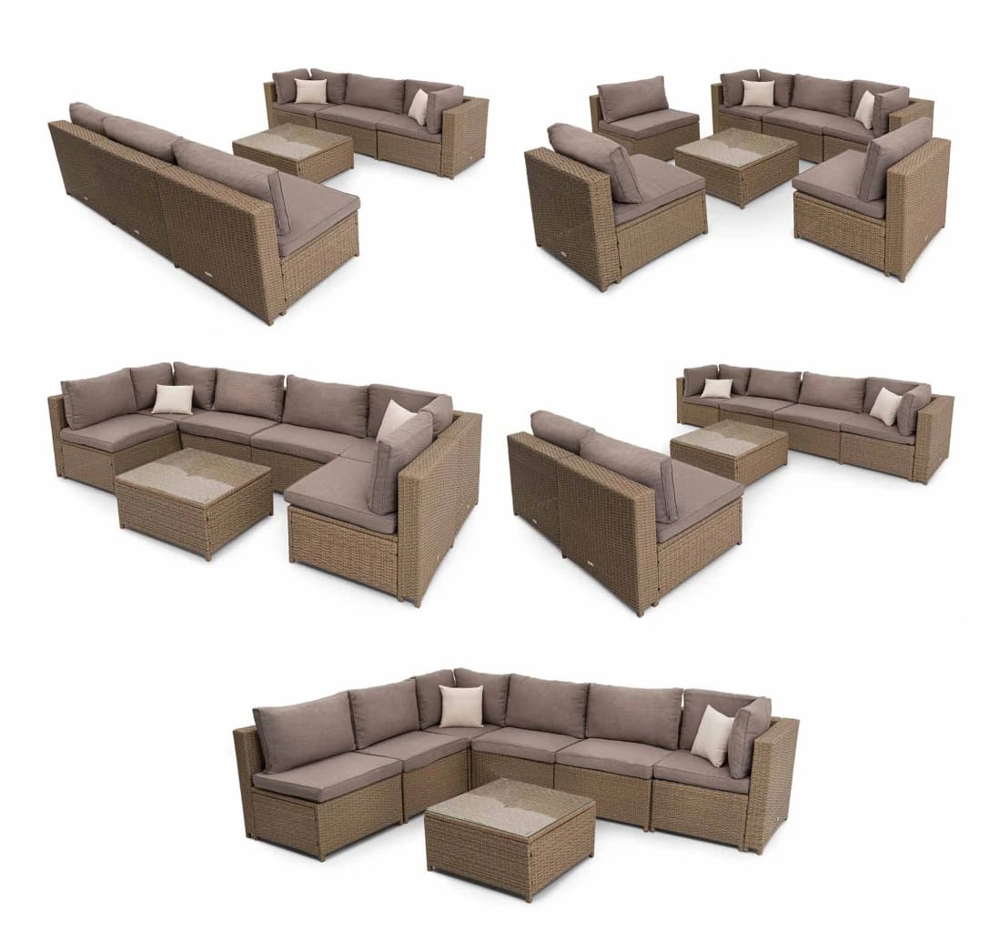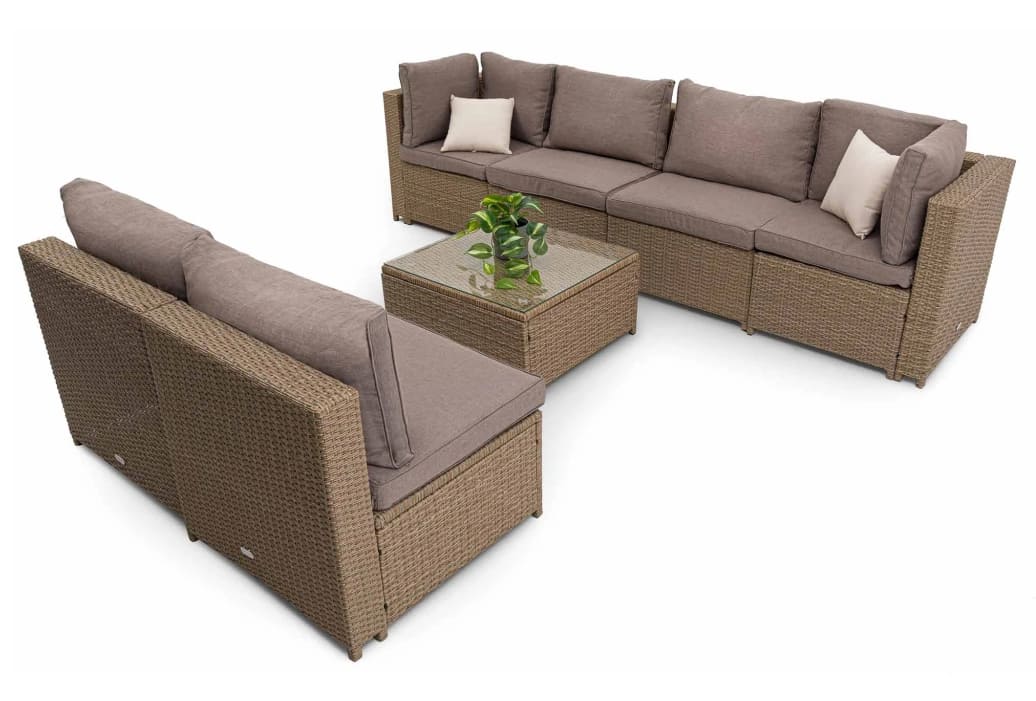 Комплект состоит из 6 модулей и журнального столика, благодаря чему его можно легко трансформировать: создавать угловой диван, отдельные диваны или комбинацию с креслами. Это делает набор универсальным решением для отдыха с семьей и гостями.