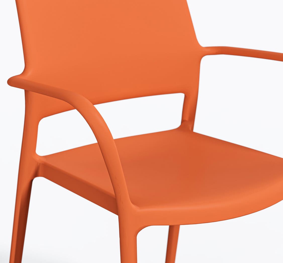 Стул Ara Оранжевый – современный пластиковый стул для улицы и интерьера. Подходит для террасы, сада, кафе и ресторана. Изготовлен из прочного полипропилена, устойчив к влаге, УФ-лучам и перепадам температуры.