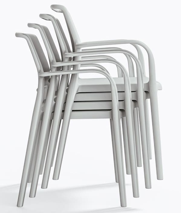 Модель представлена в разных цветах, доступна версия с подлокотниками и без. Штабелируемый уличный стул удобен для хранения, транспортировки и коммерческого использования. Отличный выбор для летней площадки, террасы или стильного оформления дома.