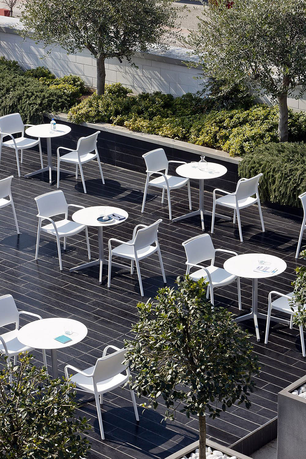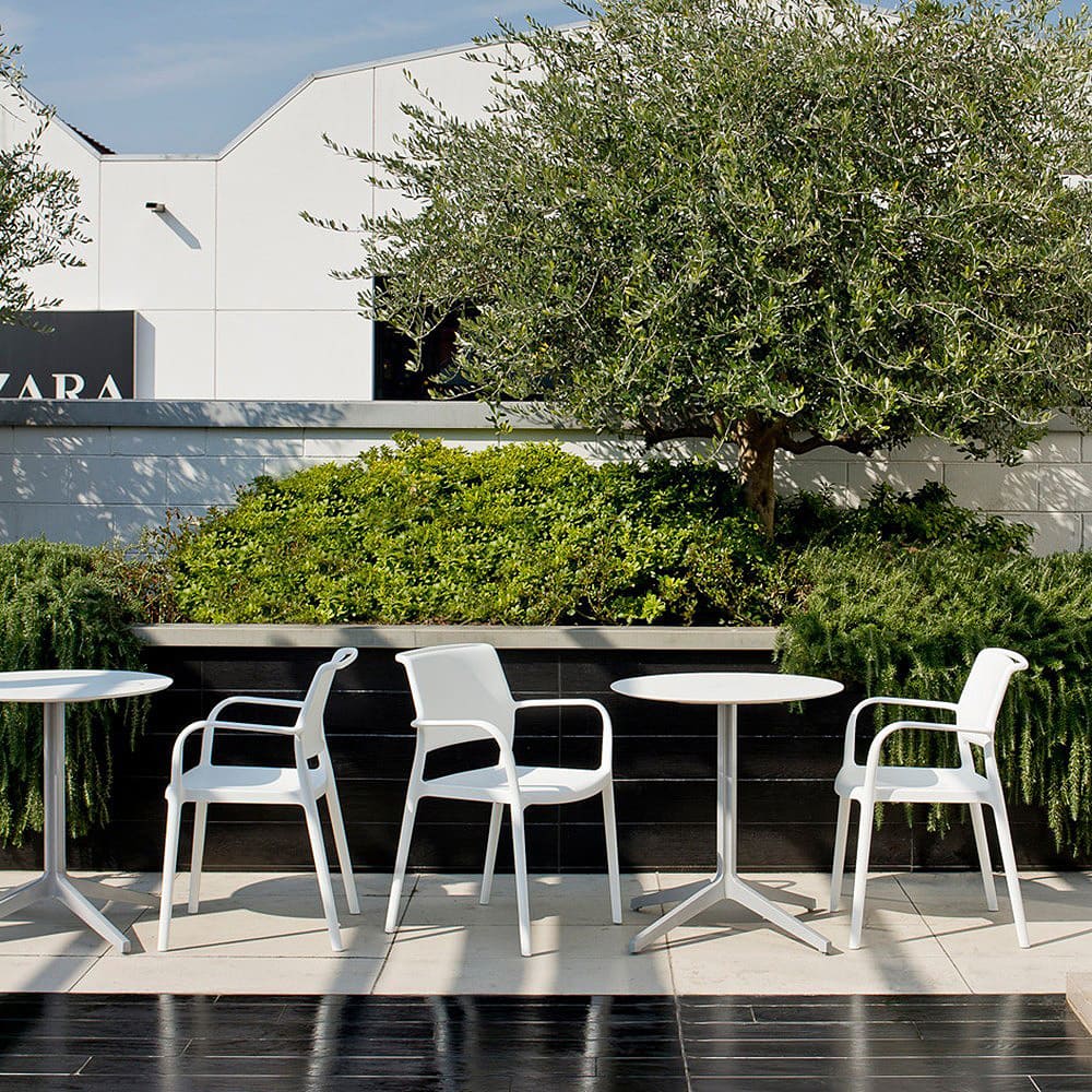 Стул Ara Белый – современный пластиковый стул для улицы и интерьера. Подходит для террасы, сада, кафе и ресторана. Изготовлен из прочного полипропилена, устойчив к влаге, УФ-лучам и перепадам температуры.