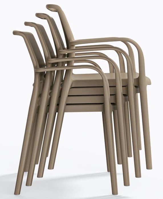 Модель представлена в разных цветах, доступна версия с подлокотниками и без. Штабелируемый уличный стул удобен для хранения, транспортировки и коммерческого использования. Отличный выбор для летней площадки, террасы или стильного оформления дома.