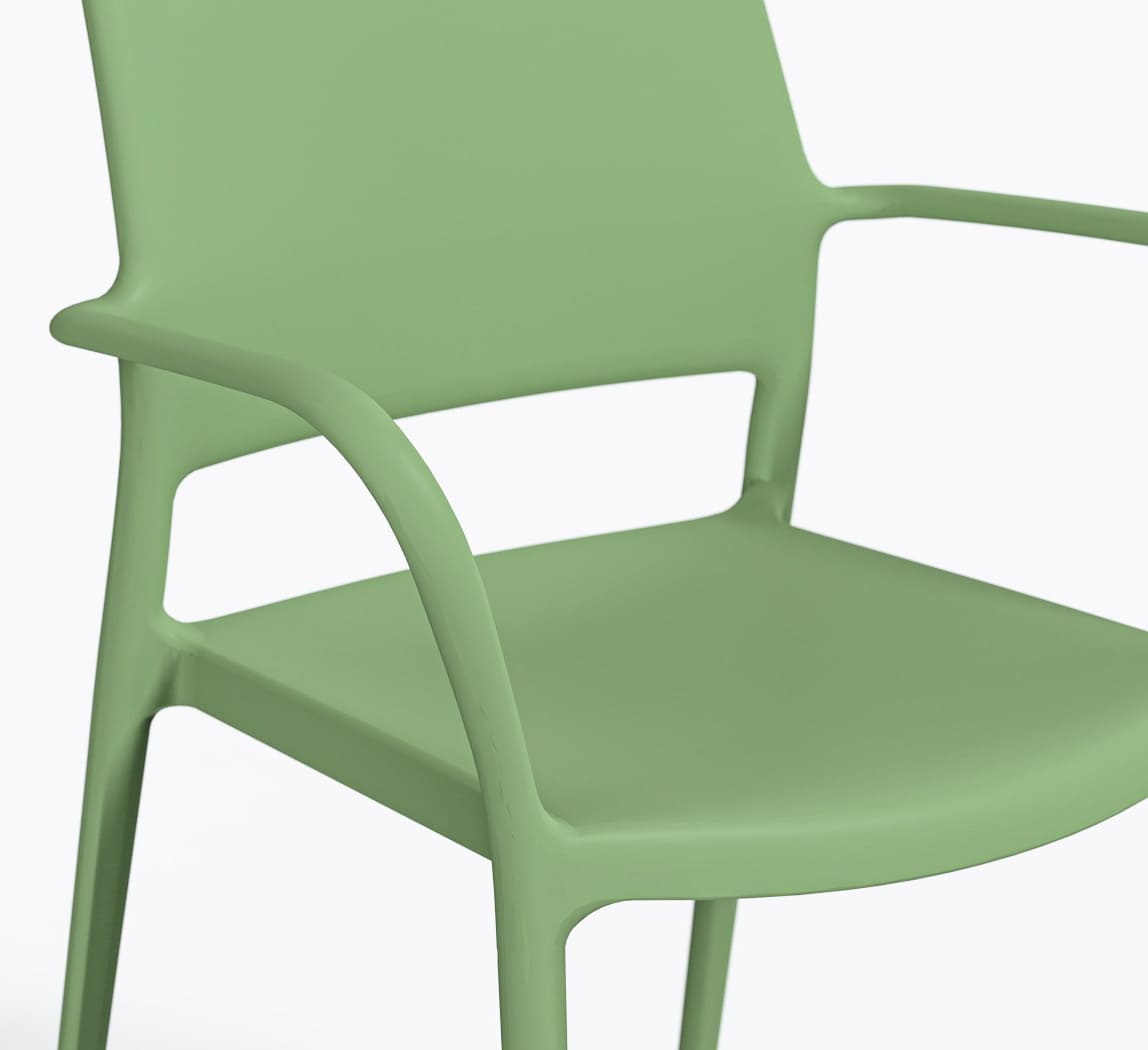 Стул Ara Зеленый – современный пластиковый стул для улицы и интерьера. Подходит для террасы, сада, кафе и ресторана. Изготовлен из прочного полипропилена, устойчив к влаге, УФ-лучам и перепадам температуры.