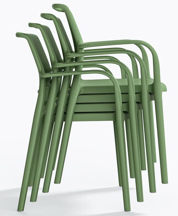 Модель представлена в разных цветах, доступна версия с подлокотниками и без. Штабелируемый уличный стул удобен для хранения, транспортировки и коммерческого использования. Отличный выбор для летней площадки, террасы или стильного оформления дома.