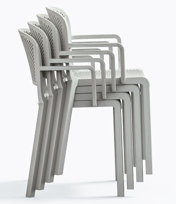 Модель представлена в разных цветах, доступна версия с подлокотниками и без. Штабелируемый уличный стул удобен для хранения, транспортировки и коммерческого использования. Отличный выбор для летней площадки, террасы или стильного оформления дома.