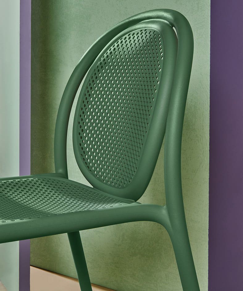 Стул Remind Зеленый – современный пластиковый стул для улицы и интерьера. Подходит для террасы, сада, кафе и ресторана. Изготовлен из прочного полипропилена, устойчив к влаге, УФ-лучам и перепадам температуры.