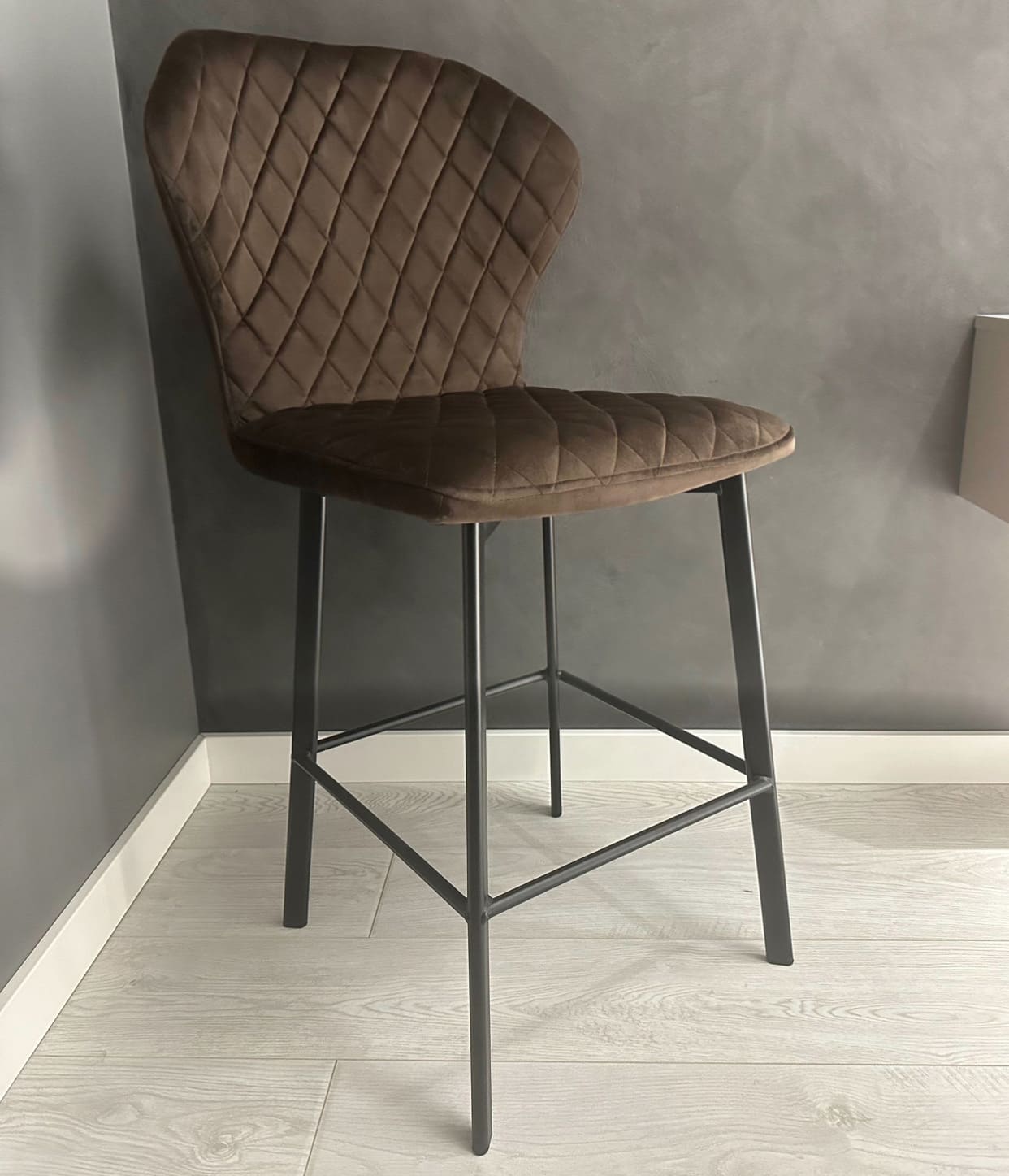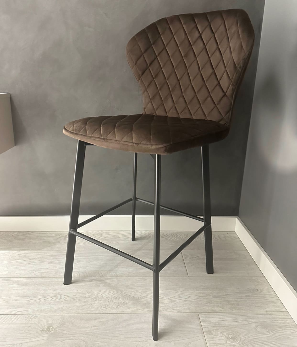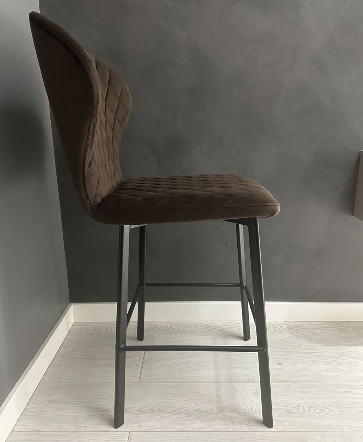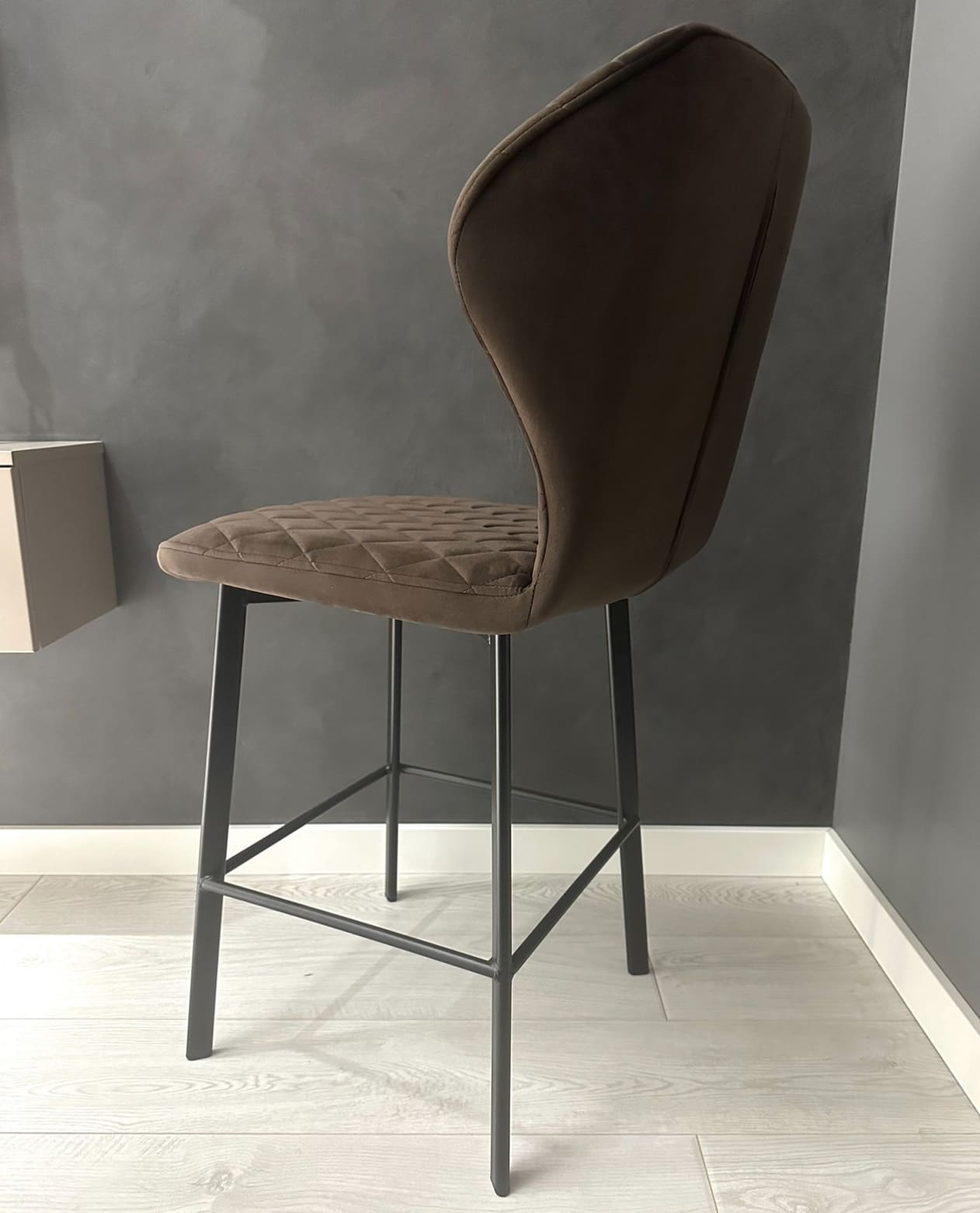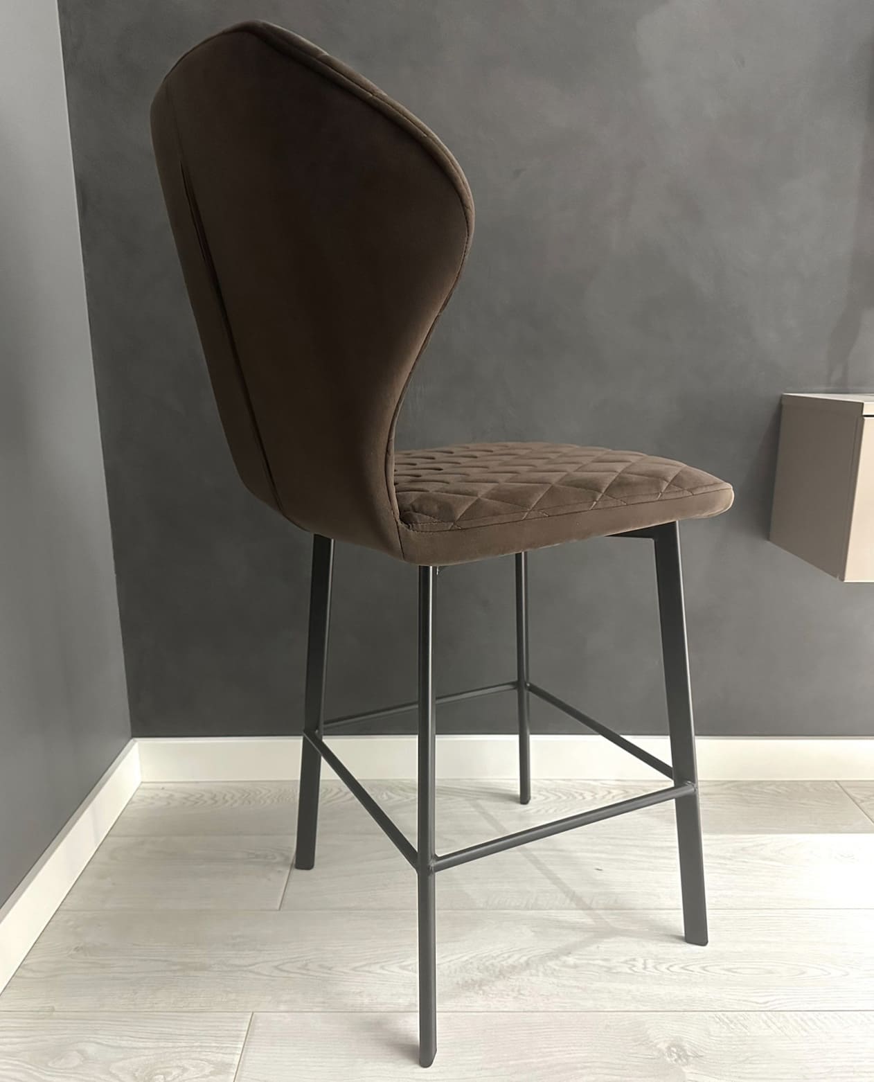 Nadin - лаконичный, но в то же время элегантный полубарный стул станет утонченным дополнением Вашего интерьера. Стул обладает очень удобной спинкой, которая позволит вам отдохнуть с наибольшим комфортом, и глубоким сиденьем, обитыми качественной тканью.