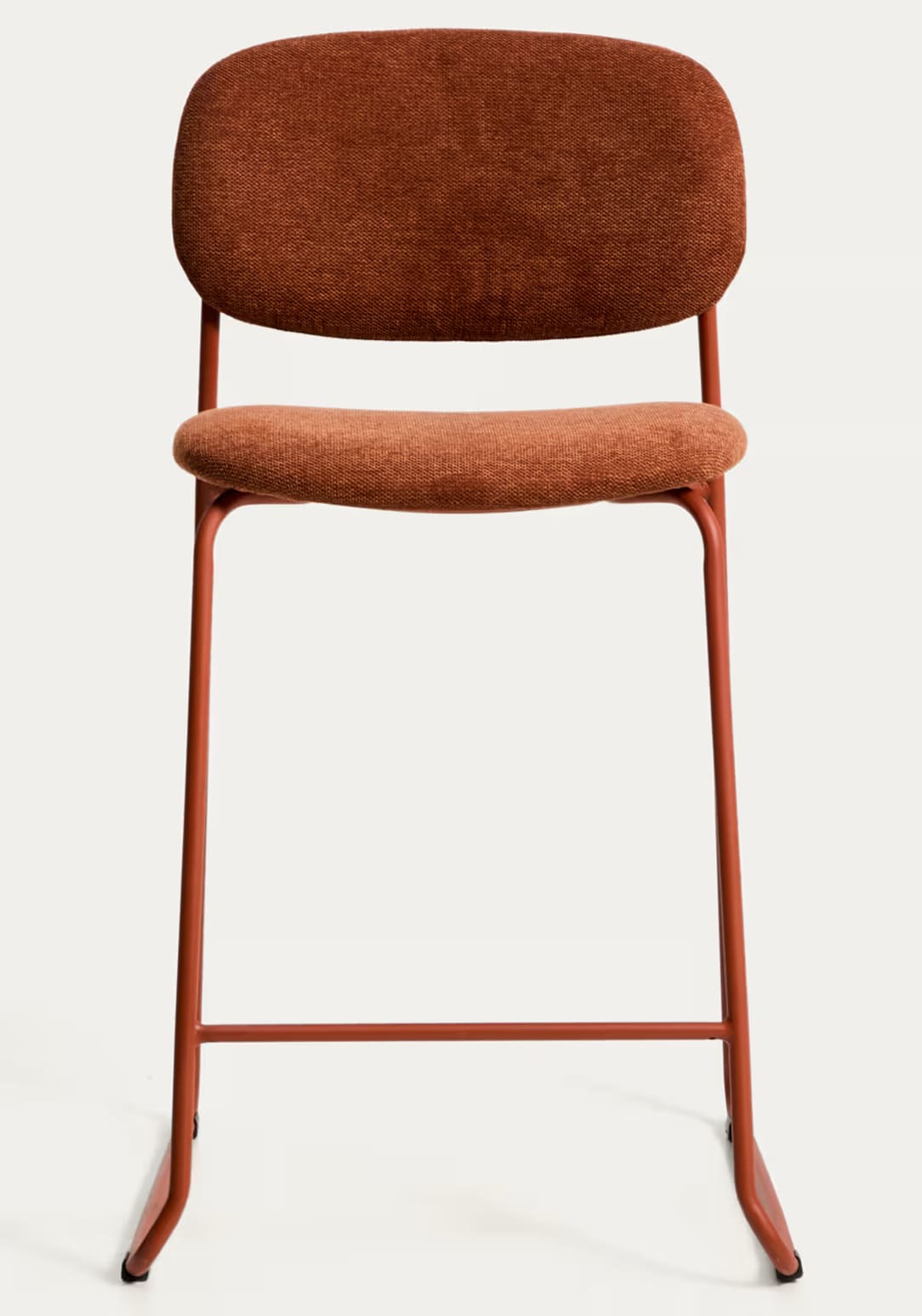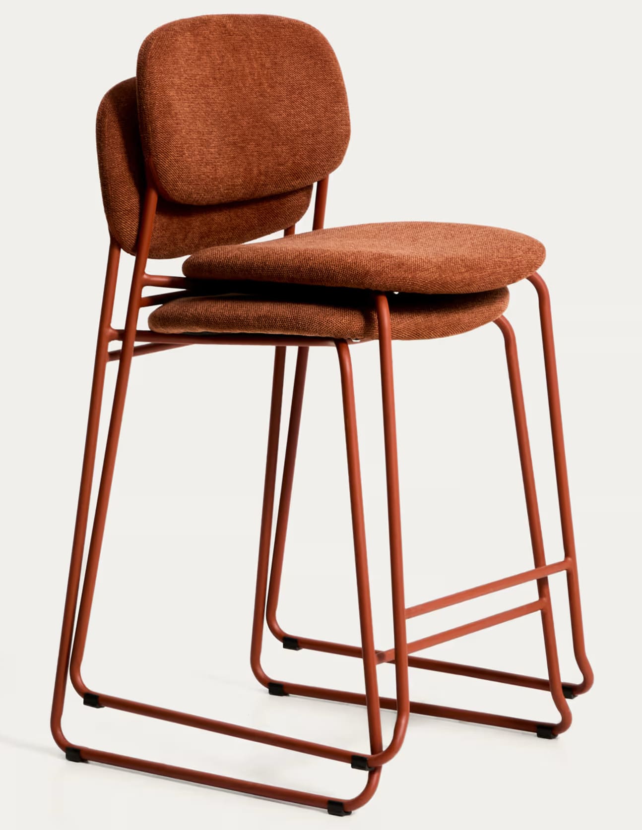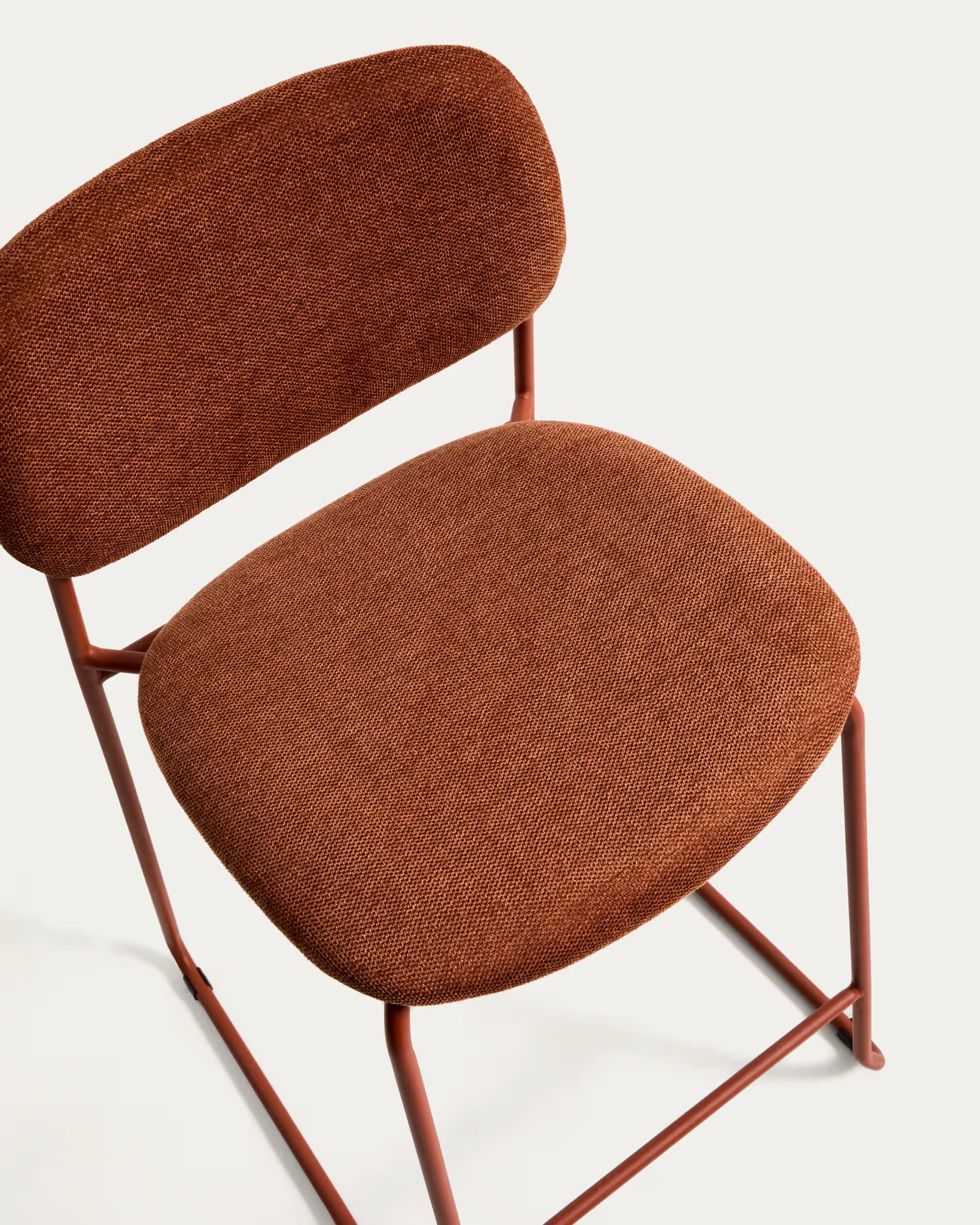 Полубарный стул Kave Home Meli 65 см терракотовый — стильное и удобное решение для кухни, барной стойки или кафе. Мягкая обивка, прочные металлические ножки и возможность штабелирования делают его практичным для ежедневного использования.