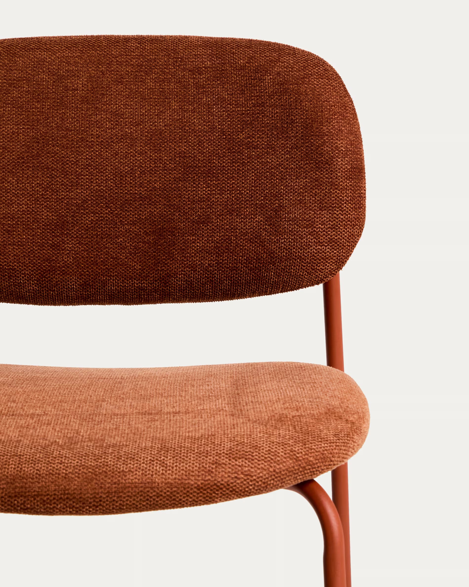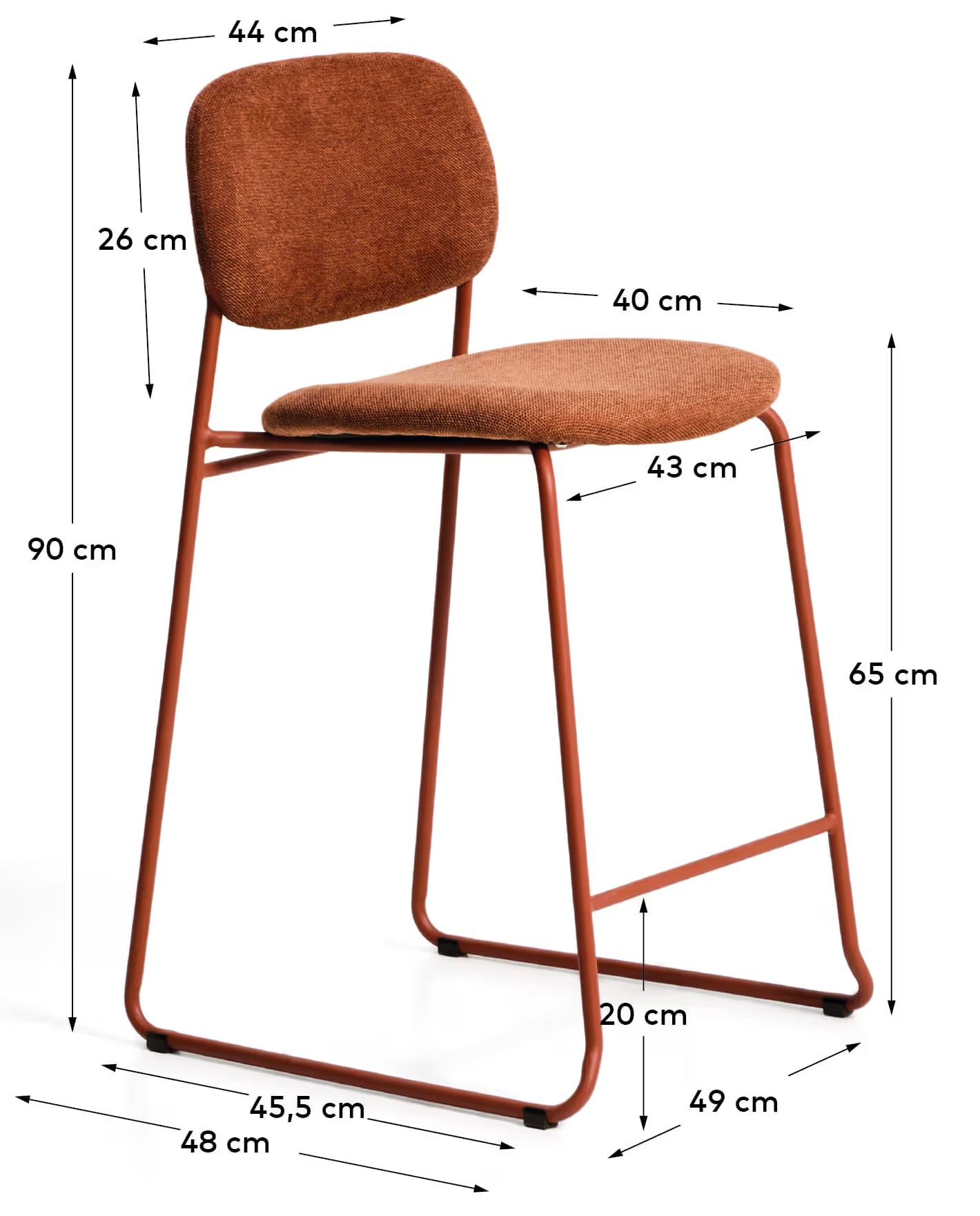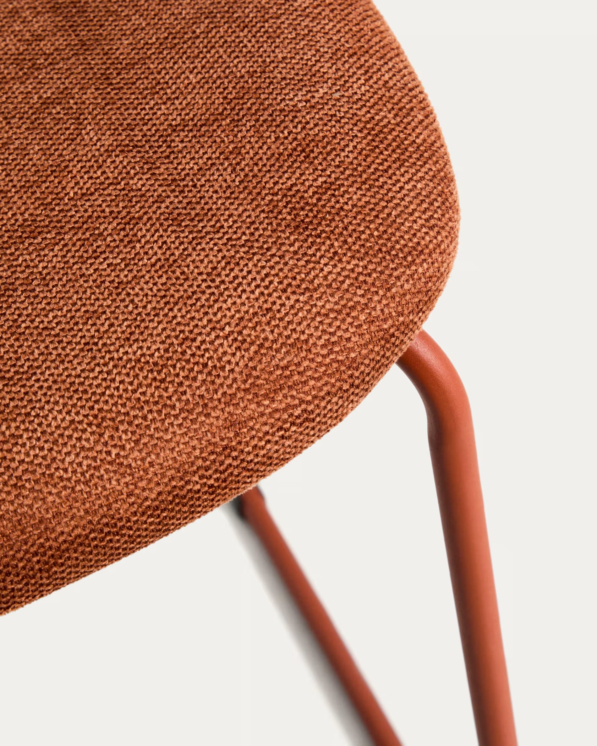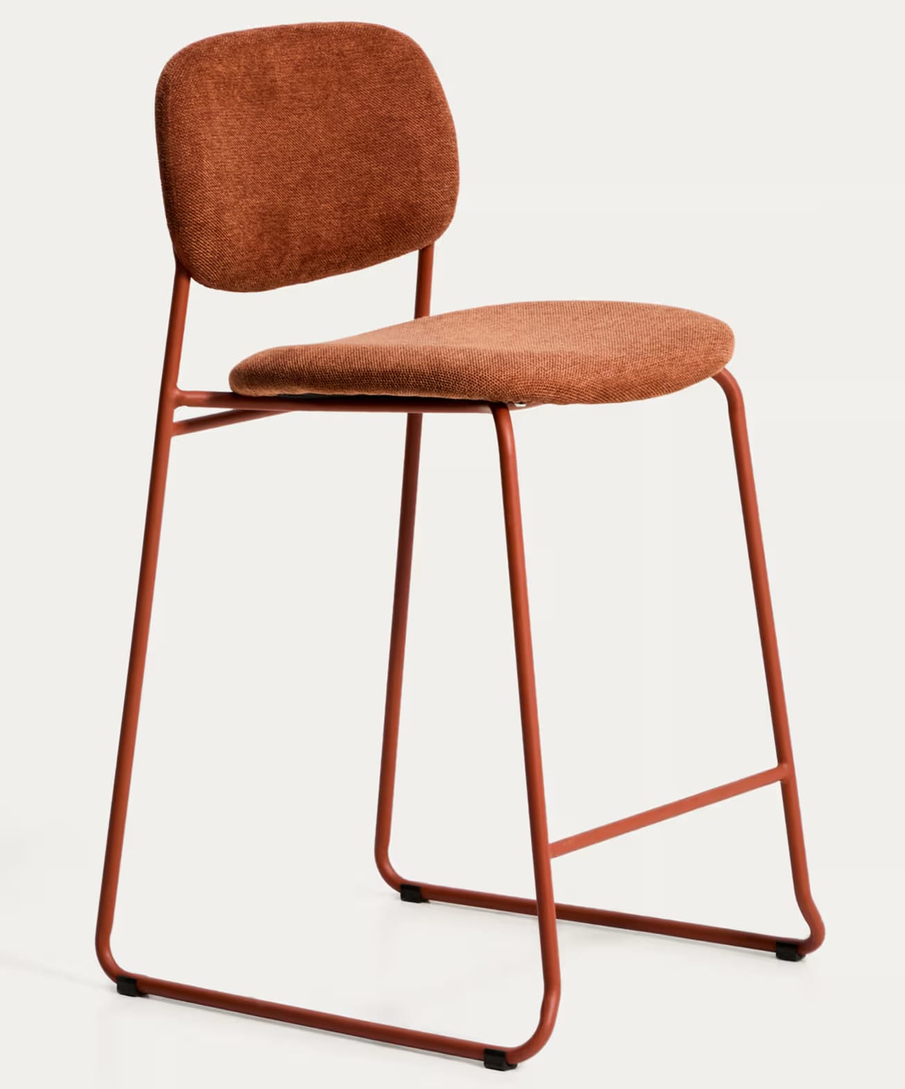 Полубарный стул Kave Home Meli 65 см терракотовый — стильное и удобное решение для кухни, барной стойки или кафе. Мягкая обивка, прочные металлические ножки и возможность штабелирования делают его практичным для ежедневного использования.