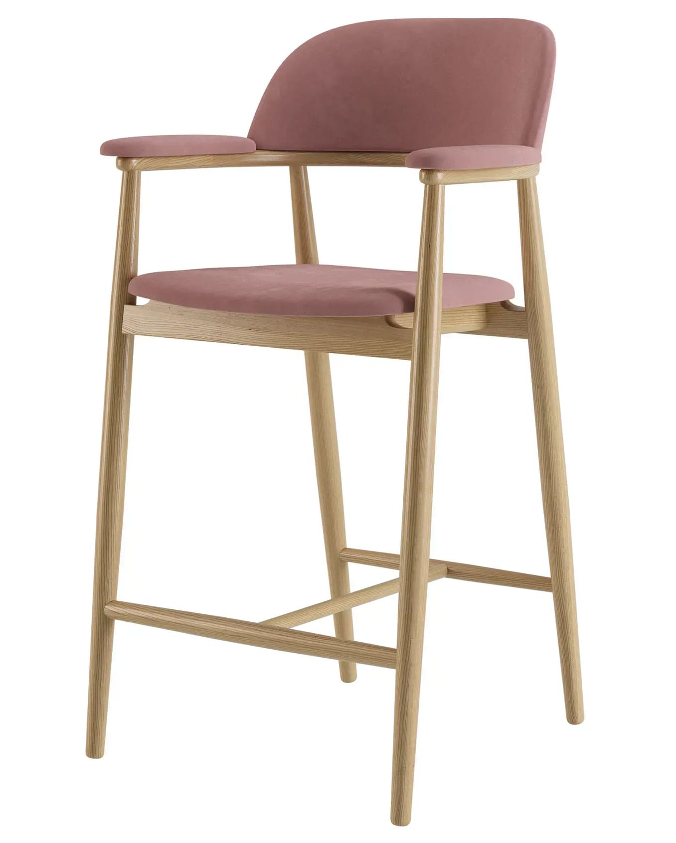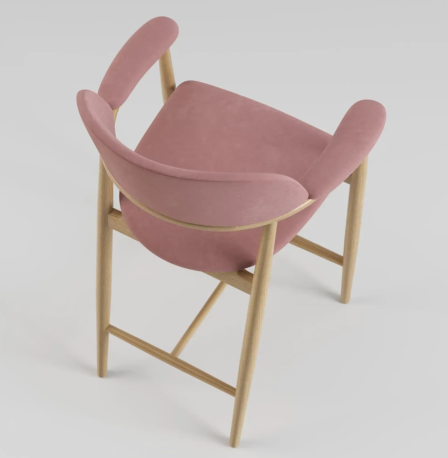 - Мягкое сиденье и спинка обеспечивают комфорт при длительном использовании, а обивка выполняется на заказ, что позволяет подобрать ткань и фактуру под конкретный интерьер — от кухни и барной зоны до кафе или ресторана. Удобные подлокотники плавно интегрированы в конструкцию, подчеркивая продуманную геометрию стула.