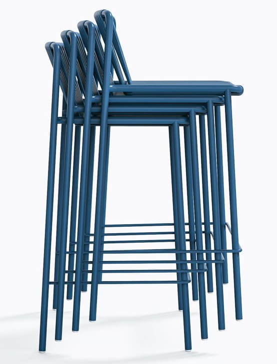 Стул подходит для использования на улице, легко штабелируется и доступен в разных цветах и высотах, что делает его универсальным решением для дома и HoReCa.