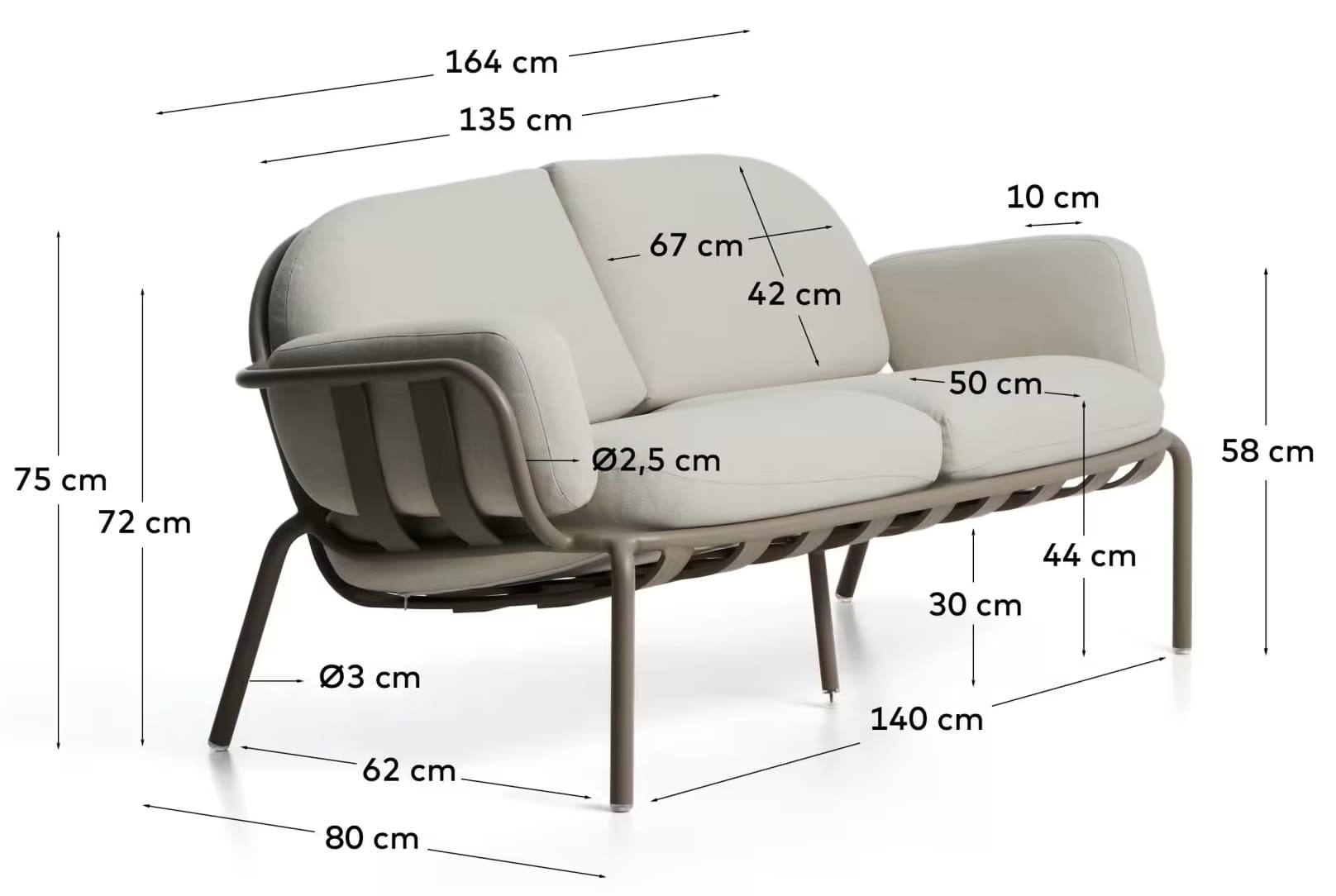 Каркас из алюминия устойчив к влаге и погодным условиям, а мягкие подушки обеспечивают комфортный отдых. Универсальный дизайн легко впишется в любой экстерьер — от современного до скандинавского.