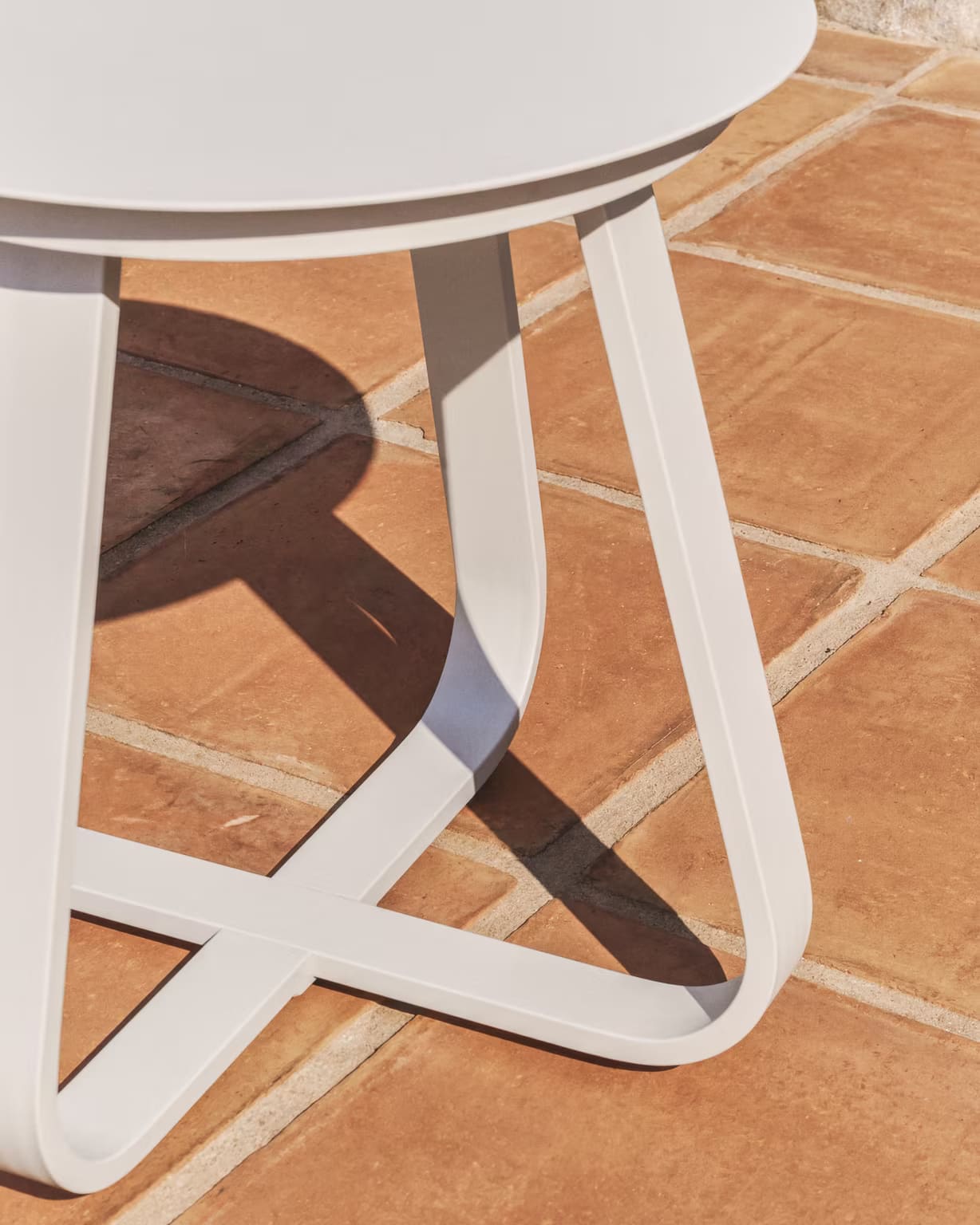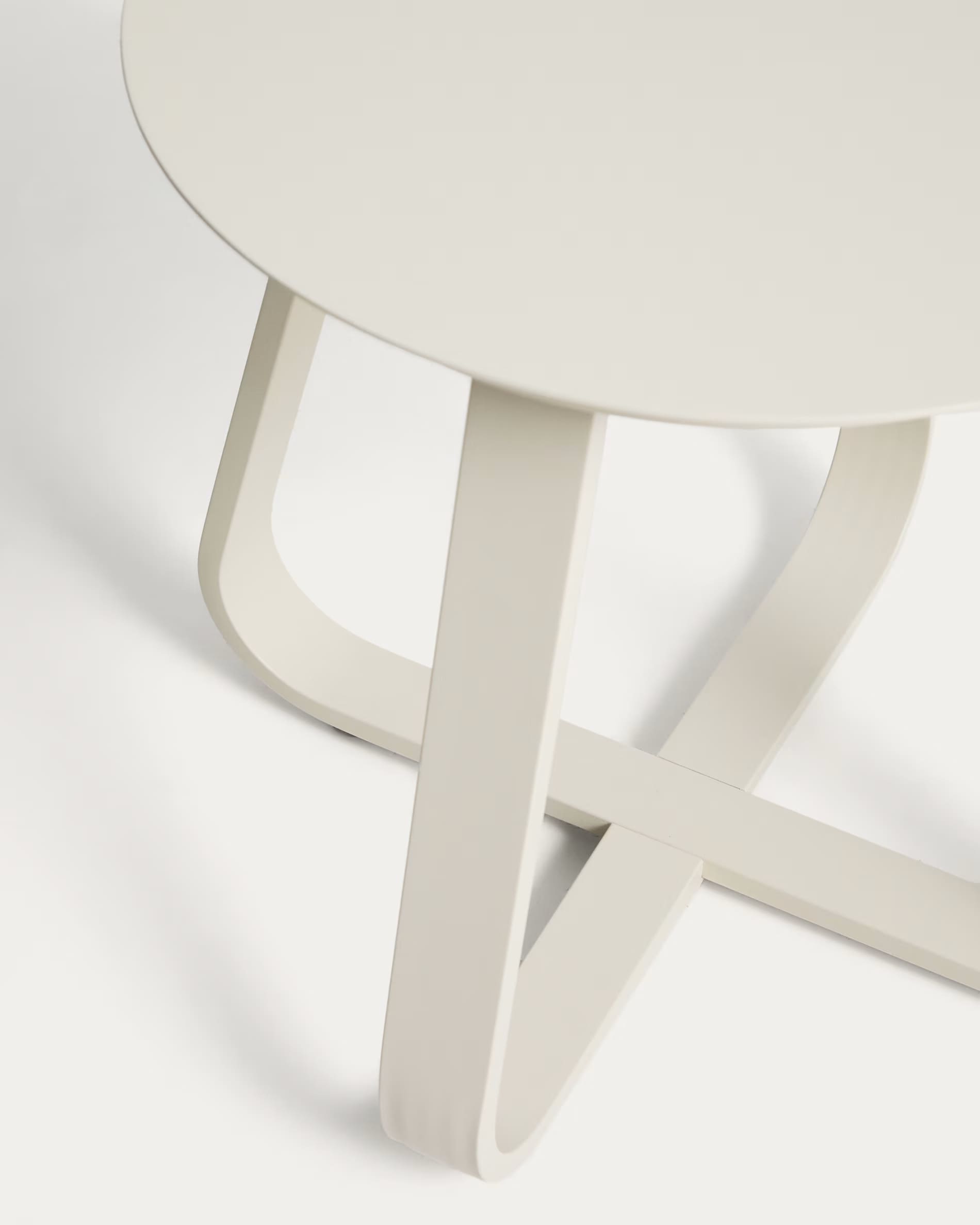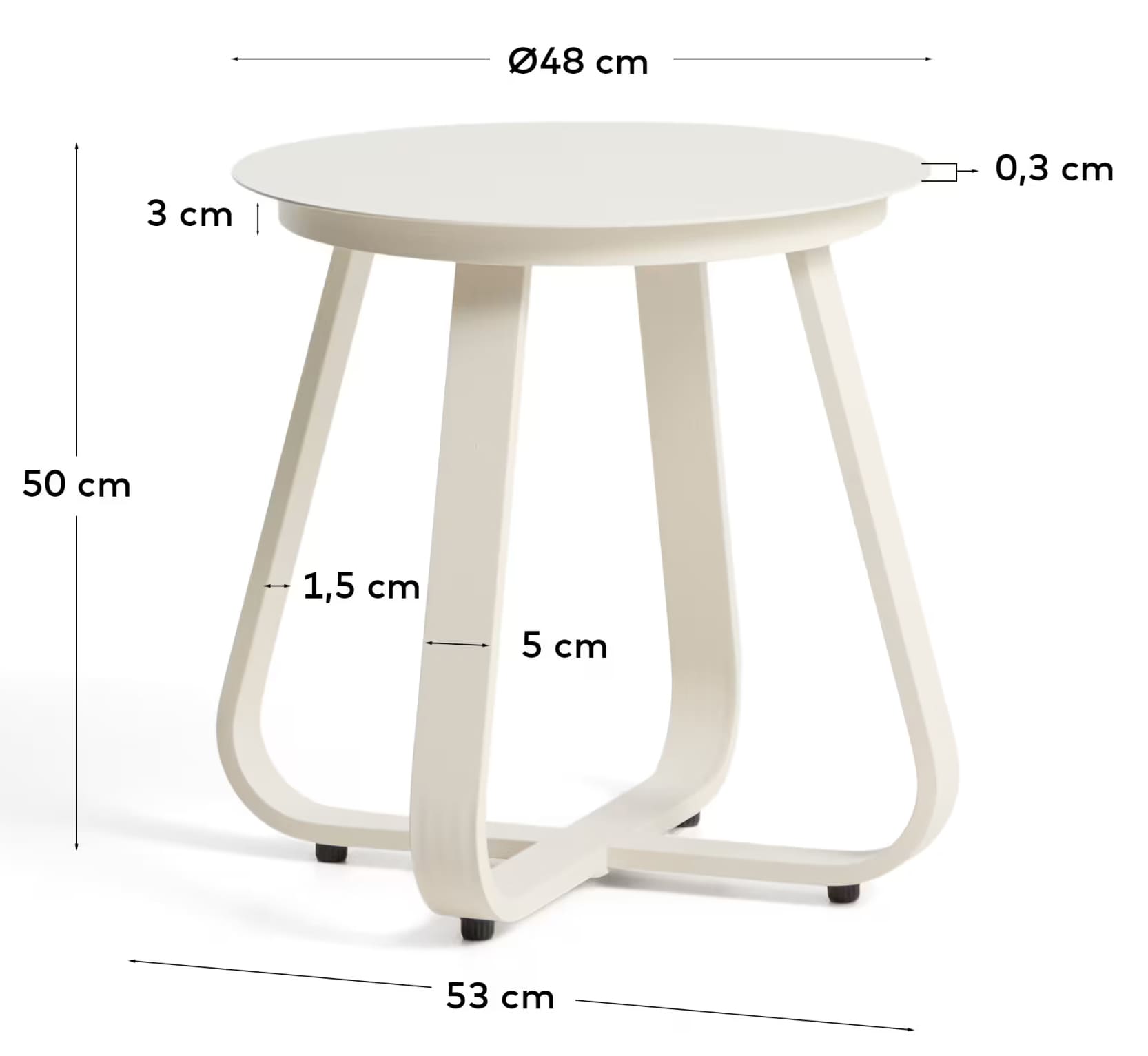 Садовый столик Kave Home Tamaris Экрю Ø48 см — практичное решение для террасы, балкона или сада. Легкий алюминиевый каркас устойчив к влаге и коррозии, что делает его идеальным для использования на улице.