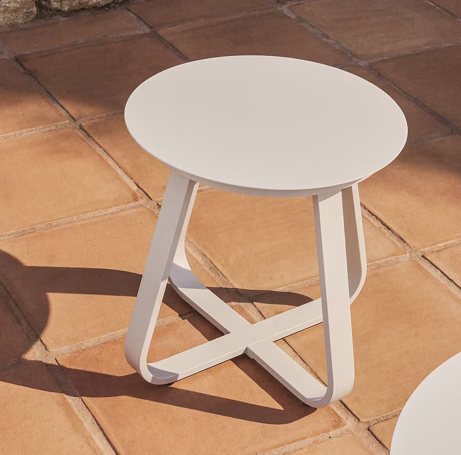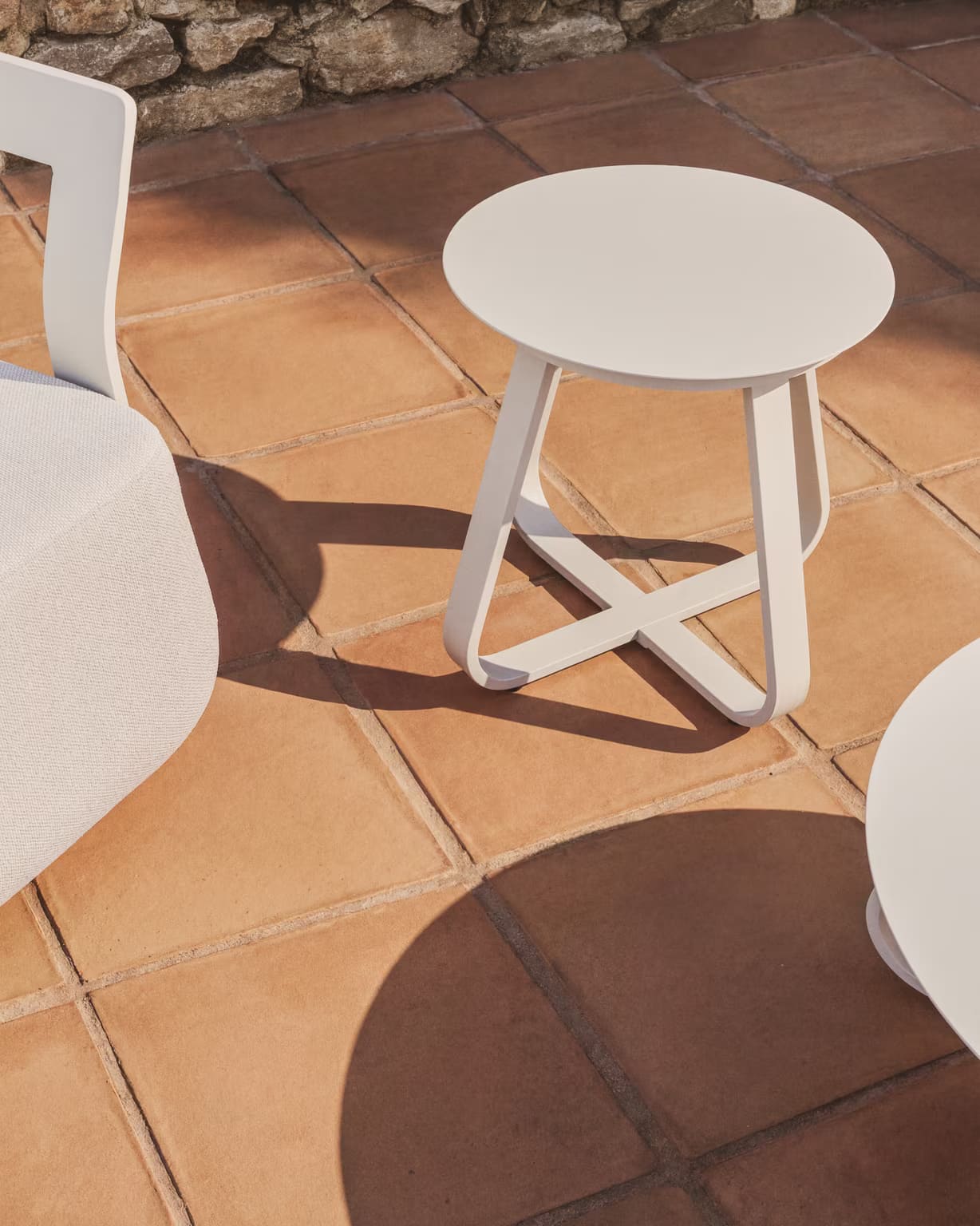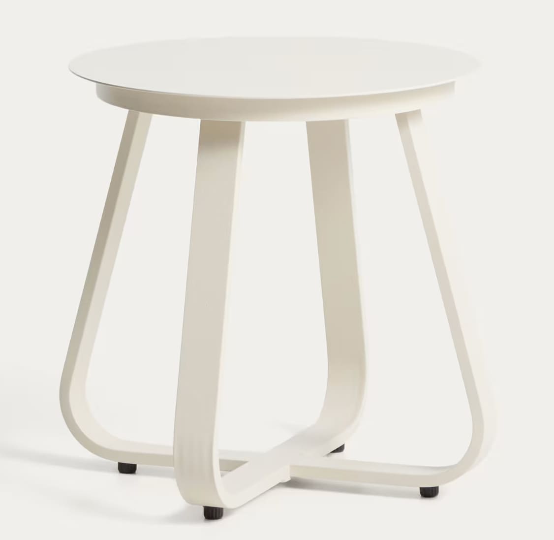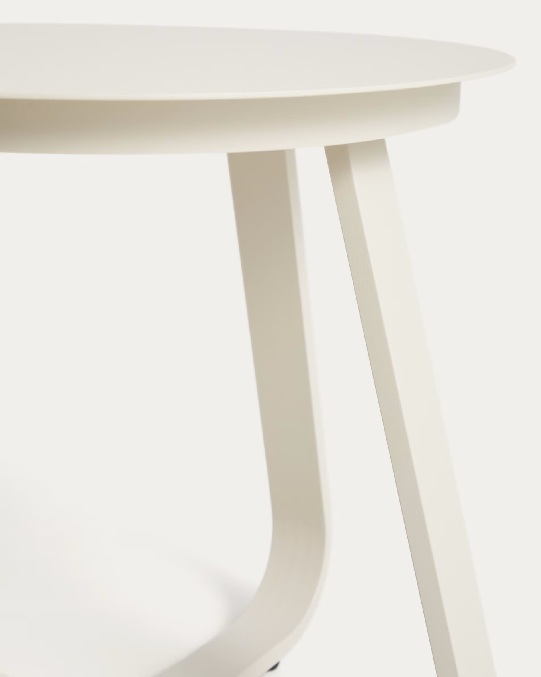 Садовый столик Kave Home Tamaris Экрю Ø48 см — практичное решение для террасы, балкона или сада. Легкий алюминиевый каркас устойчив к влаге и коррозии, что делает его идеальным для использования на улице.