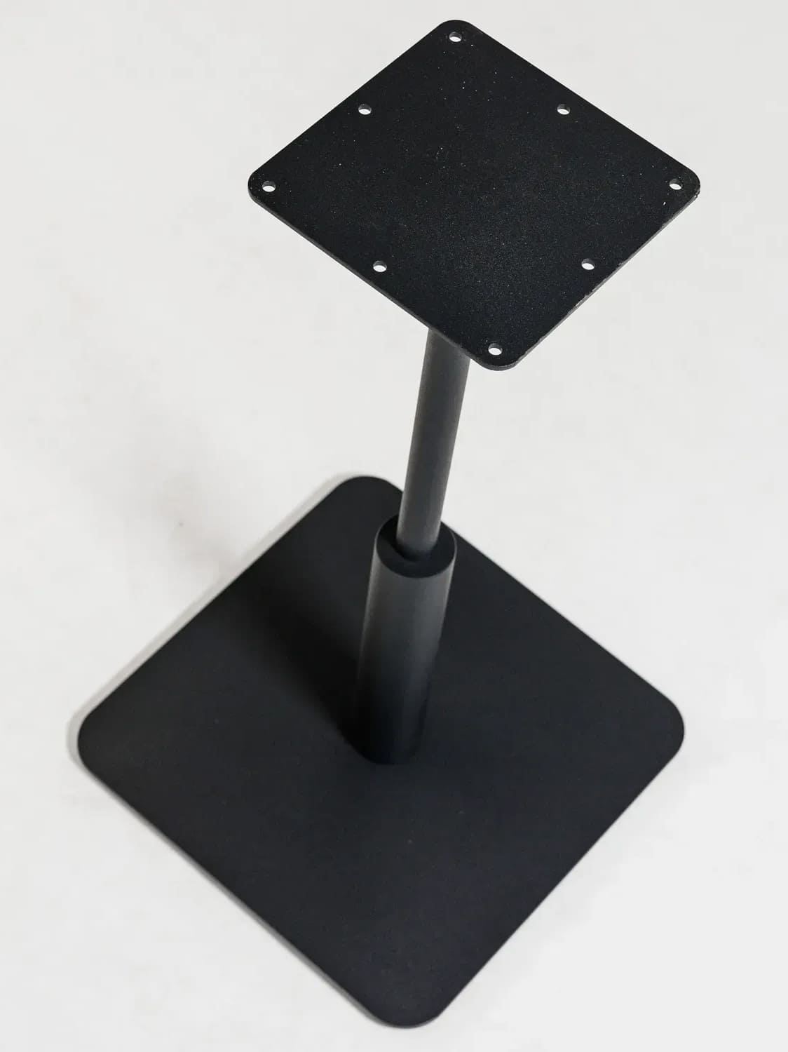 - Стол опирается на одну металлическую ножку, которая придает ему современный и минималистичный вид. Ножка состоит из сваренных труб диаметром 60 и 30 мм с толщиной стенки 1,5 мм, что обеспечивает отличную устойчивость и долговечность.