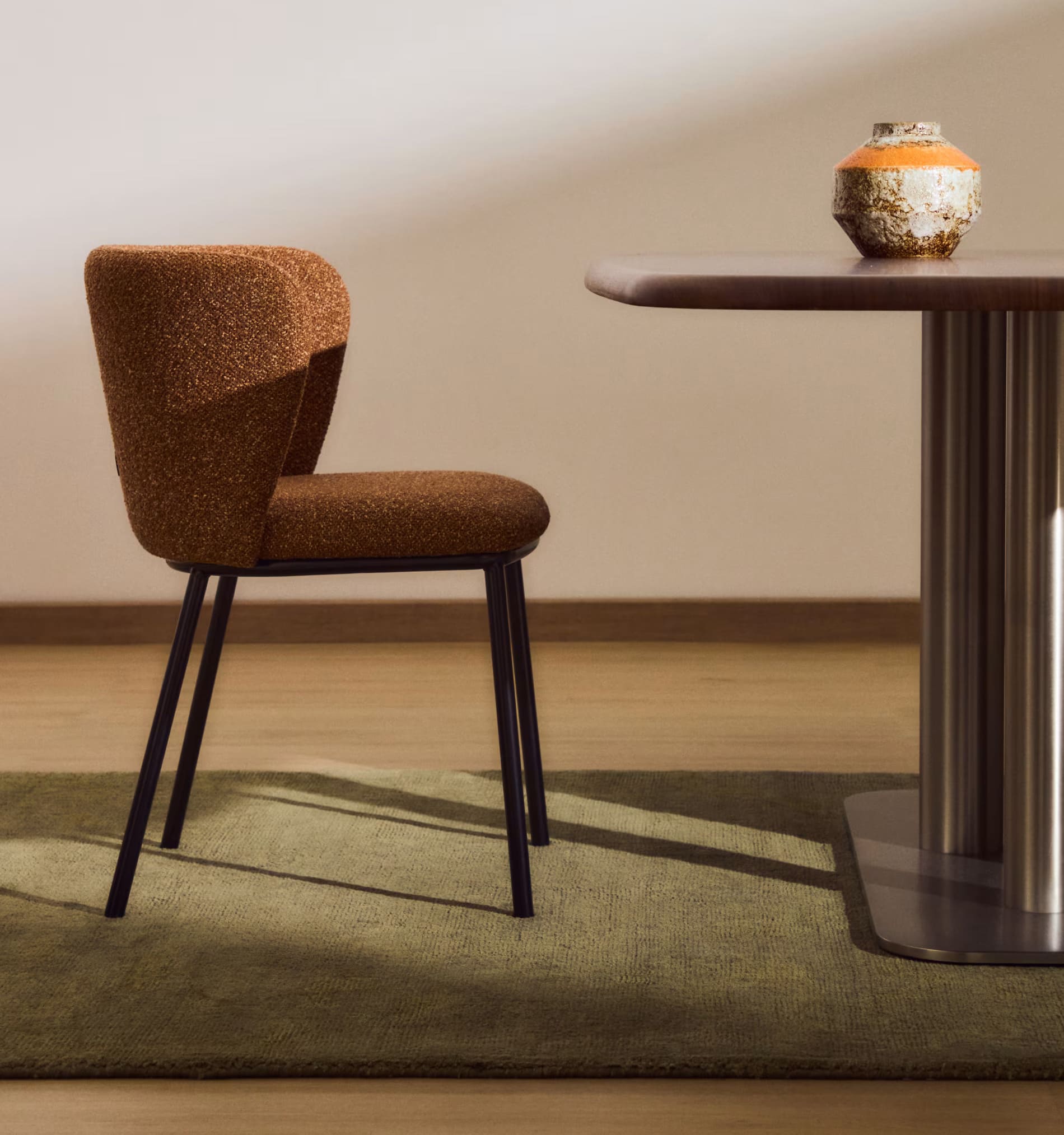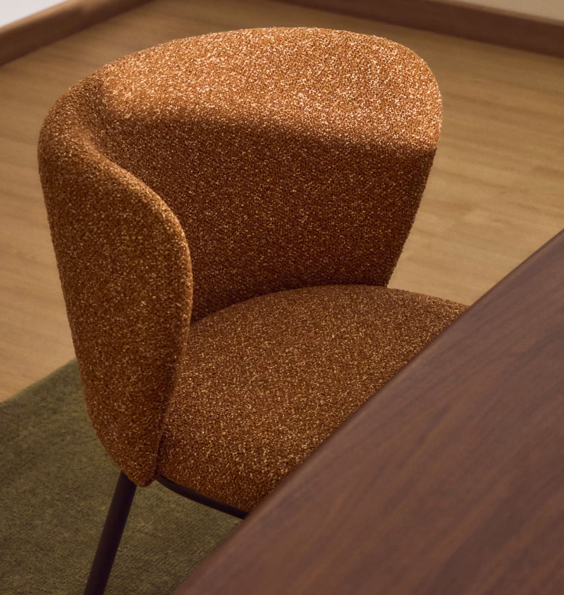 - Стул обитый толстой шенилловой тканью терракотового цвета.