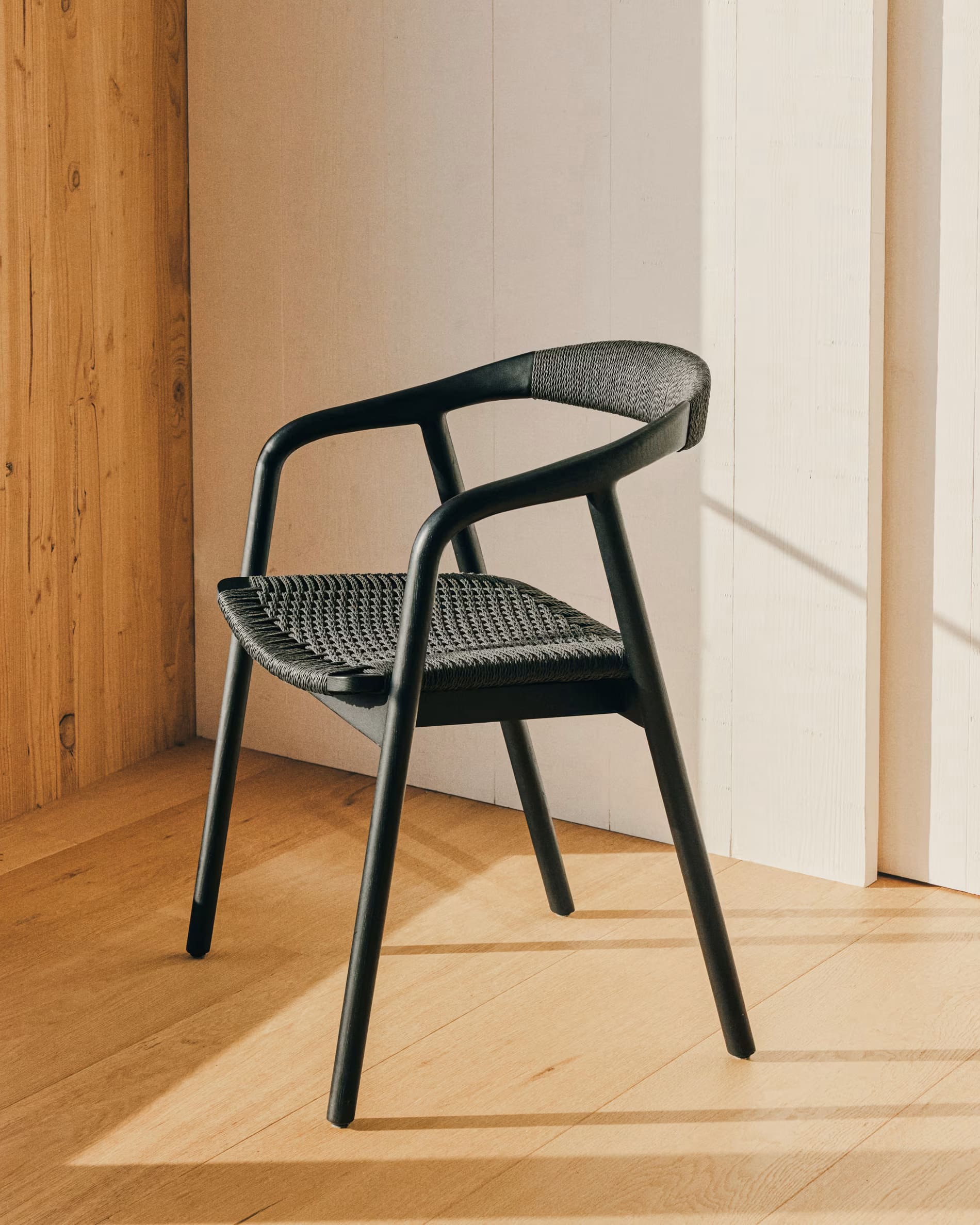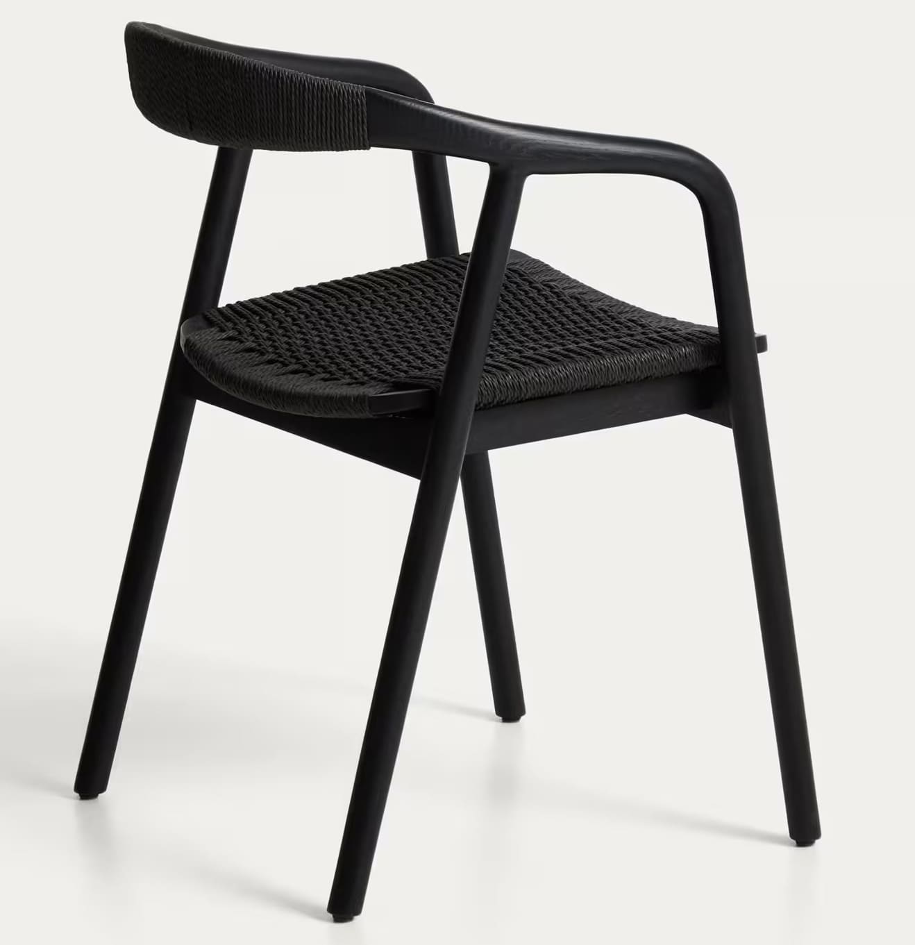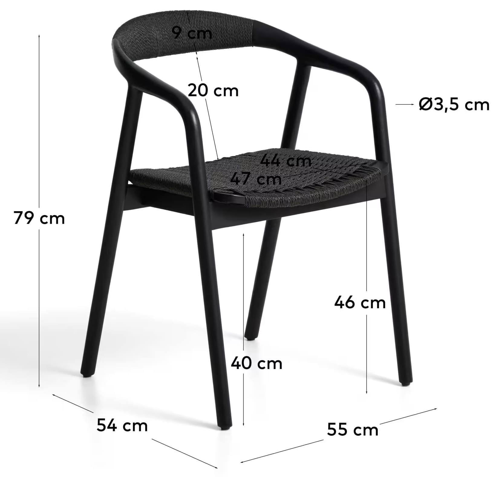 - Стул изготовлен из массива дуба, сиденье и спинка — из сплетенной вручную веревки.