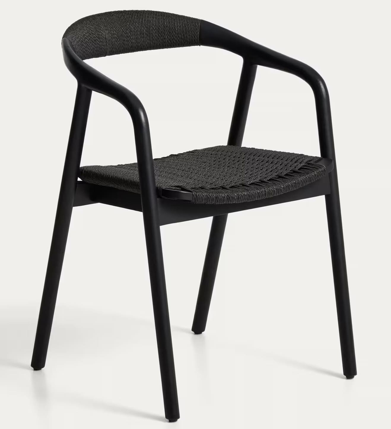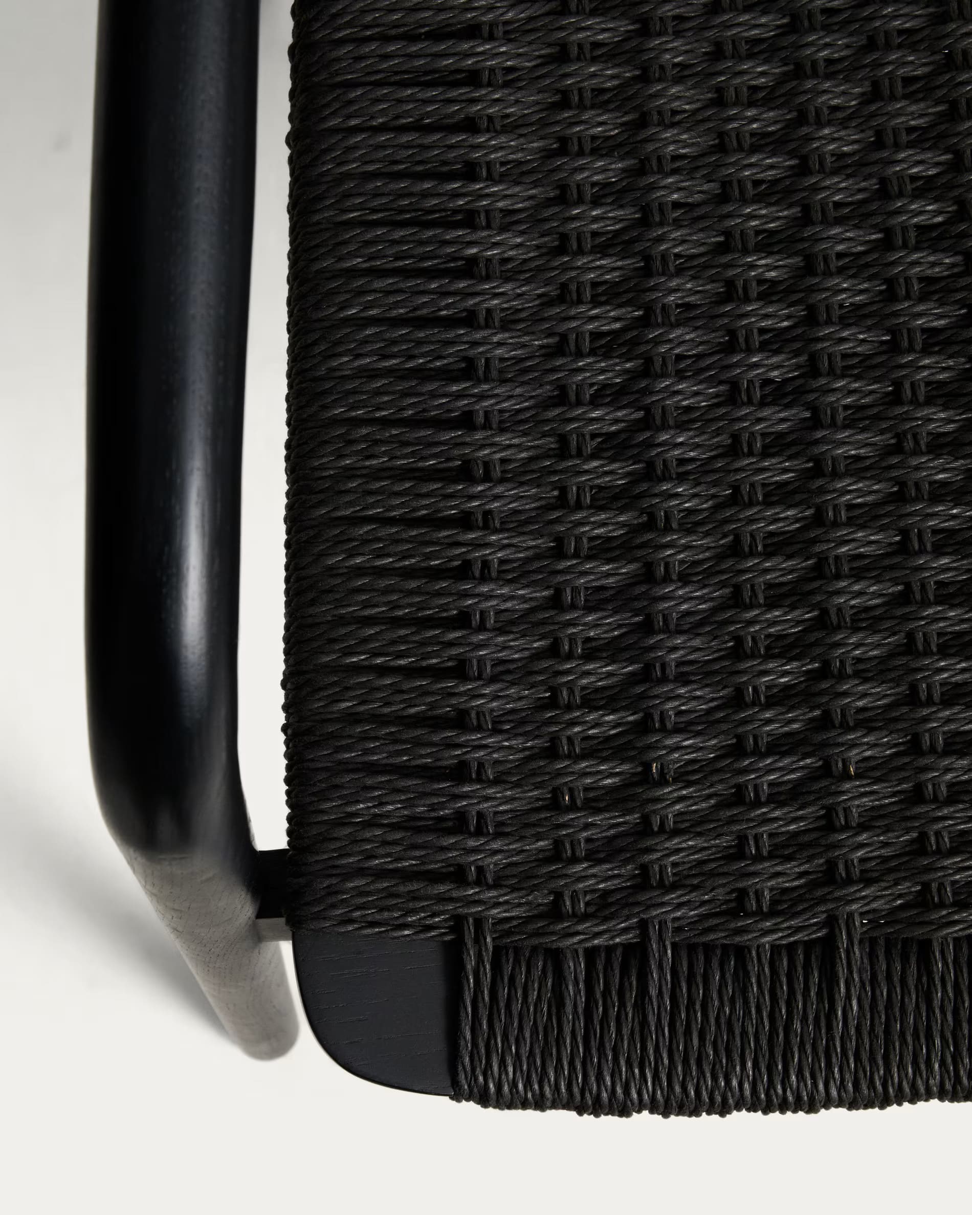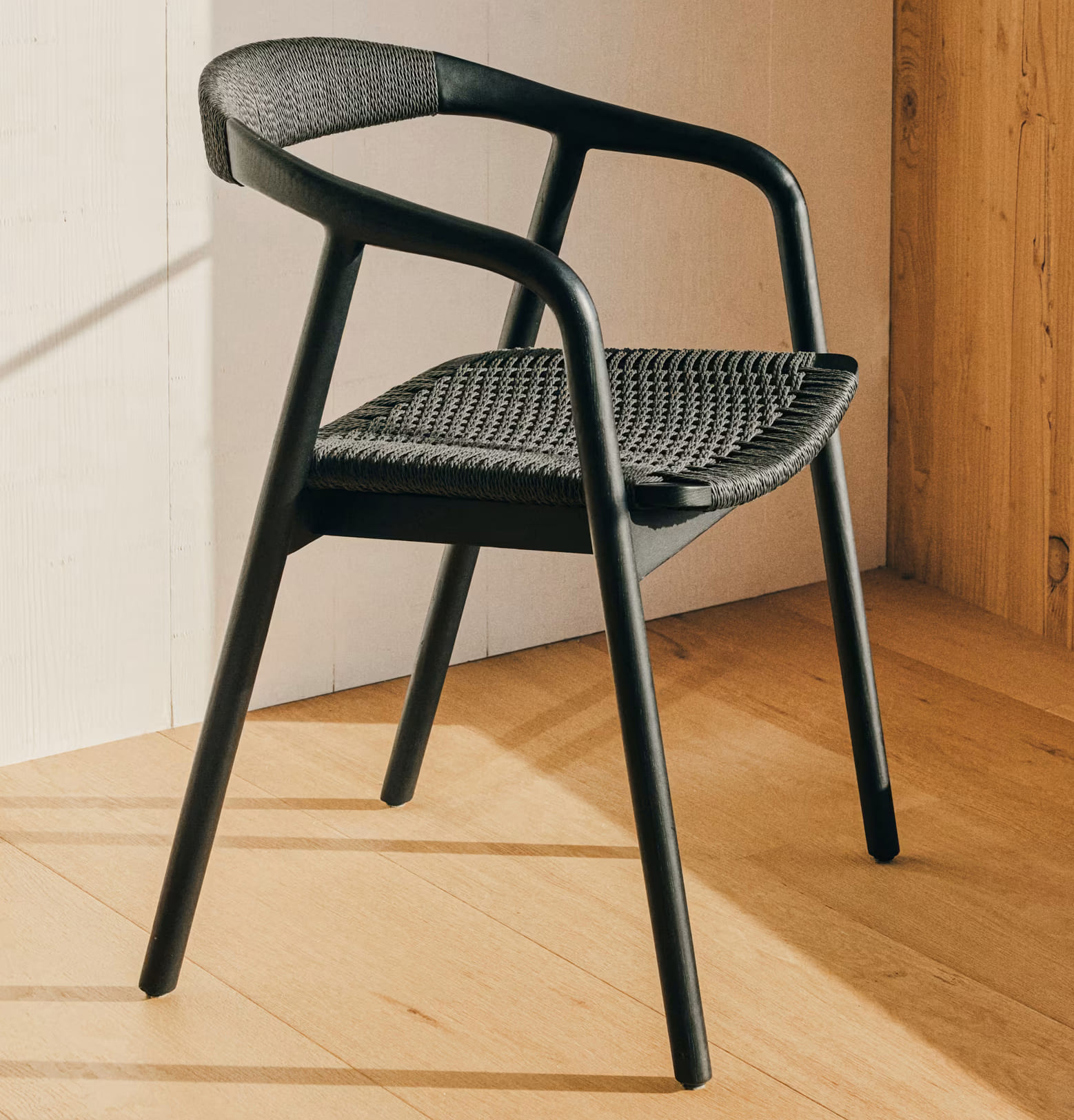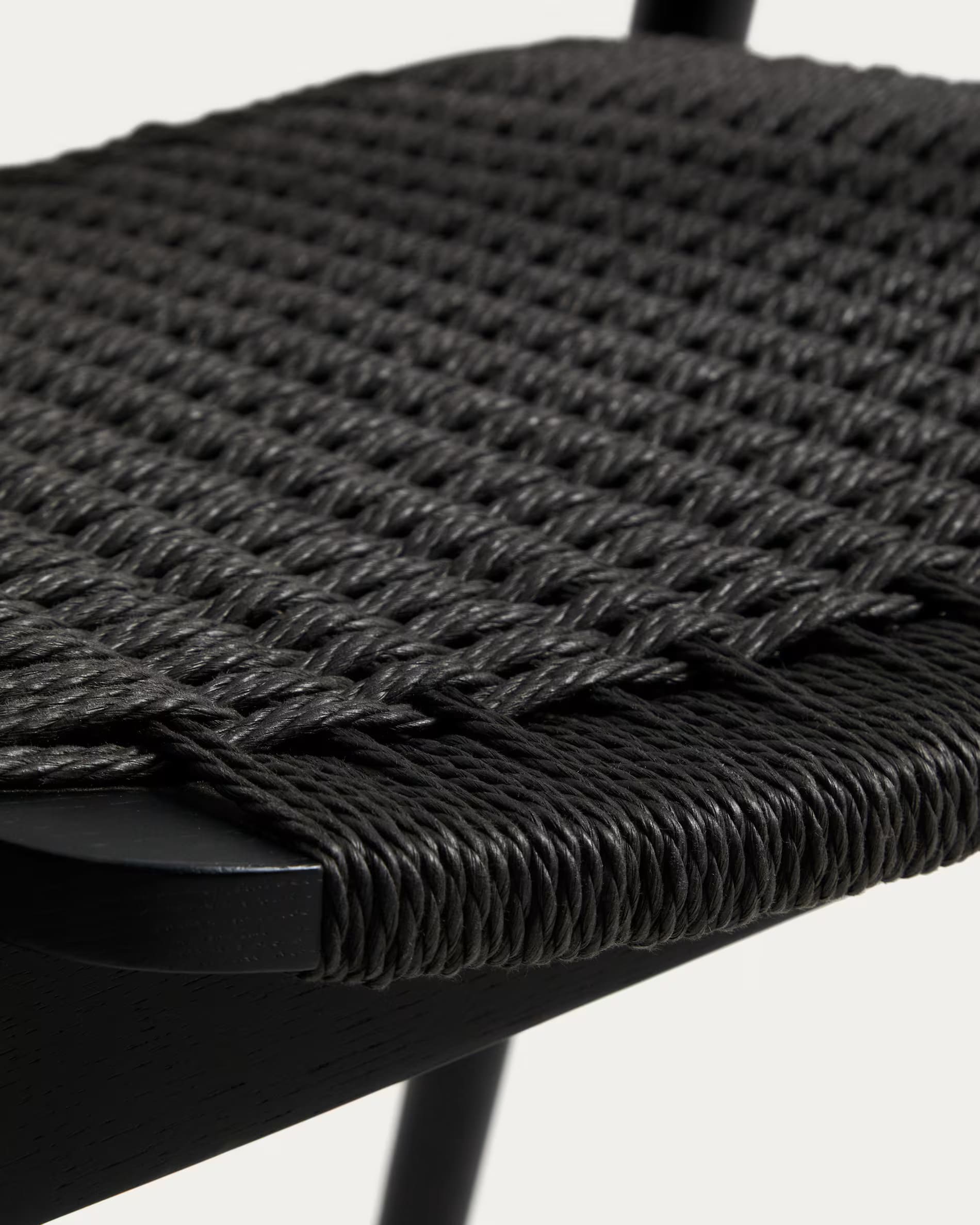 - Стул изготовлен из массива дуба, сиденье и спинка — из сплетенной вручную веревки.