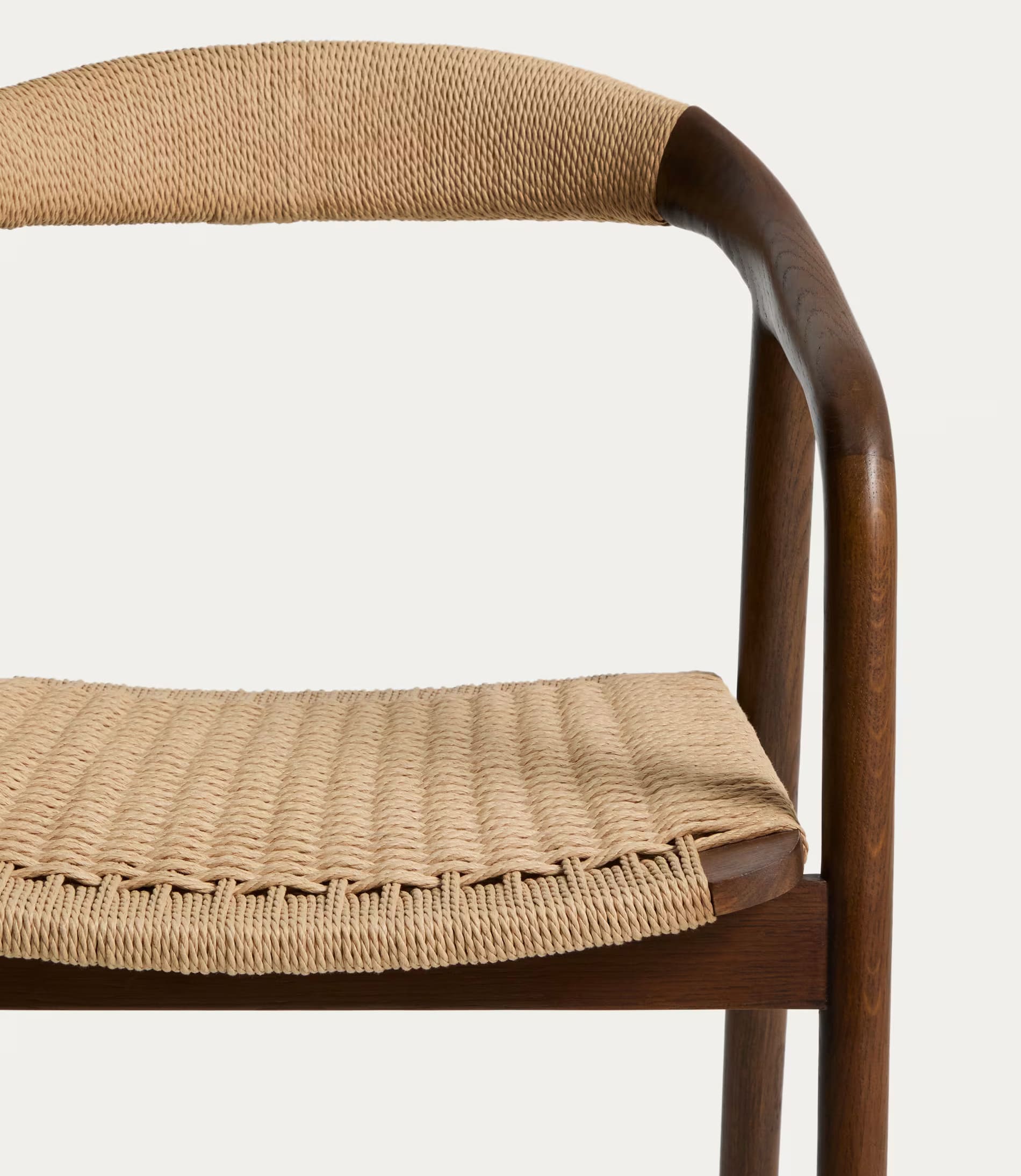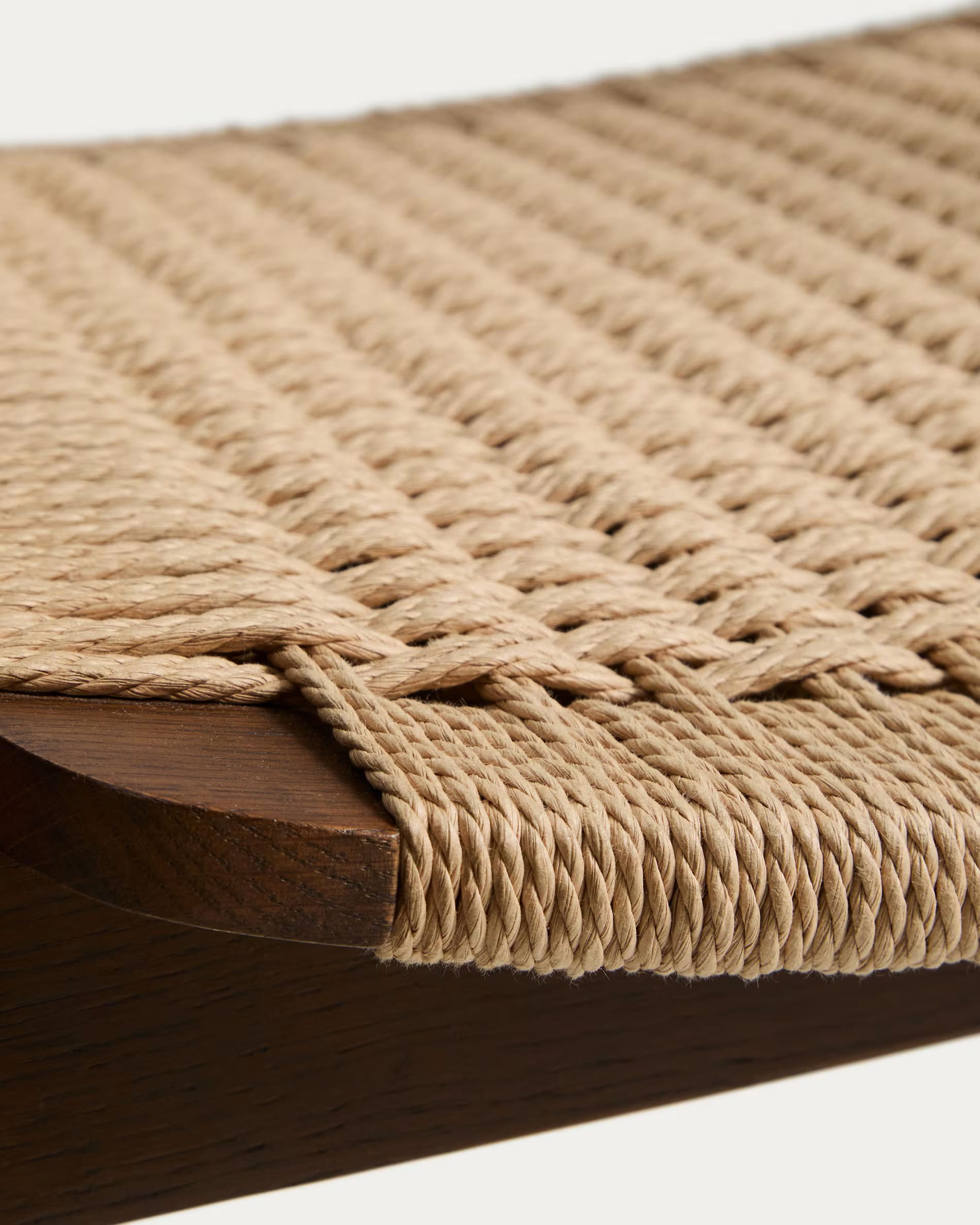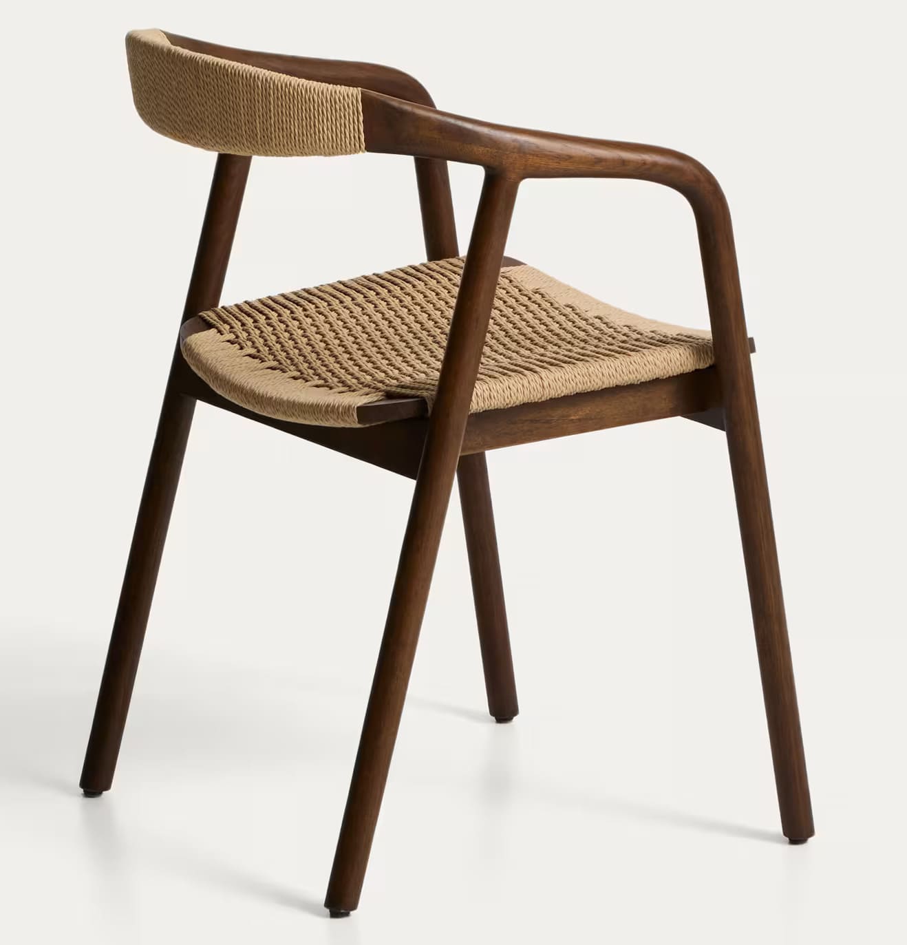 - Стул изготовлен из массива дуба, сиденье и спинка — из сплетенной вручную веревки.