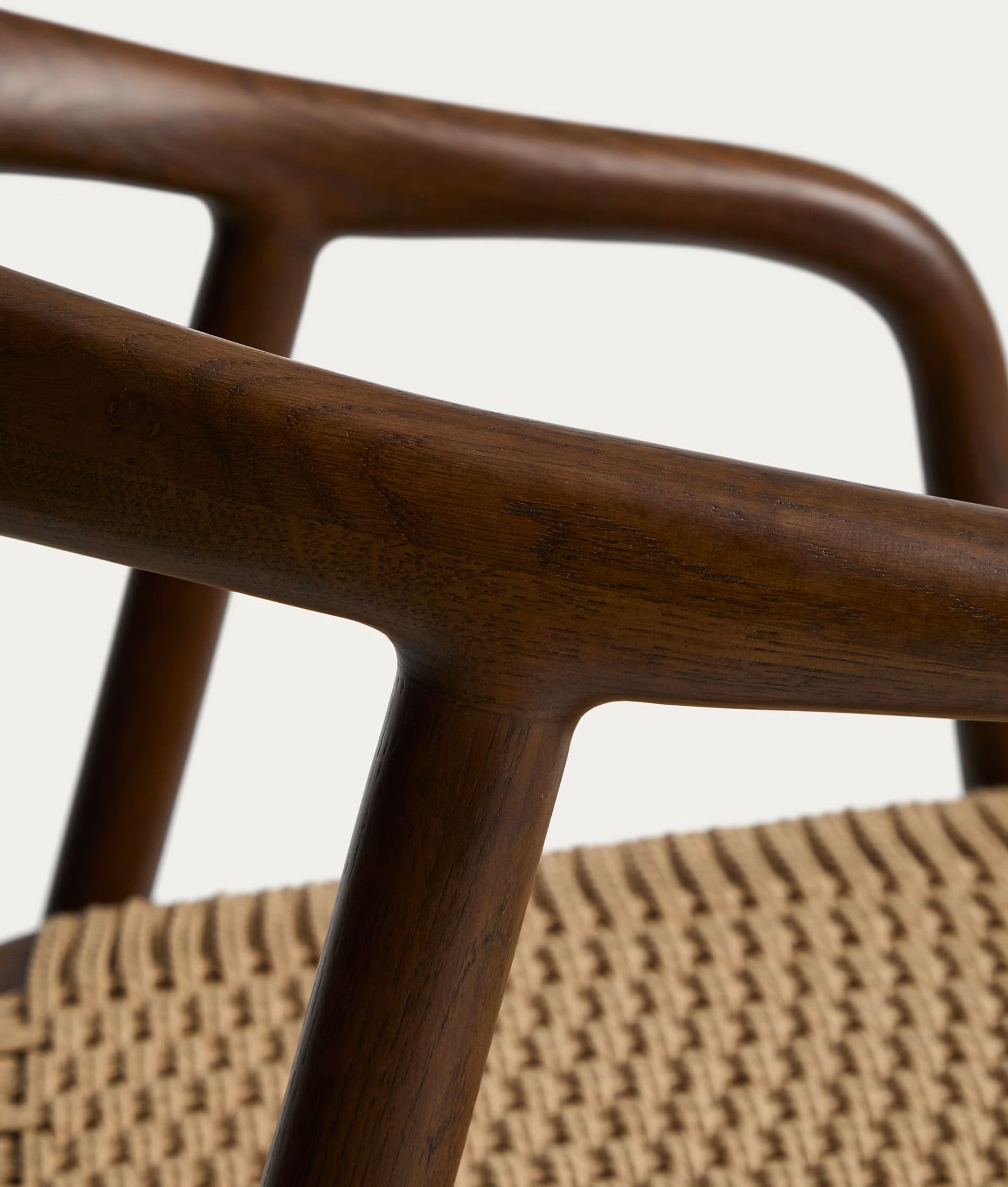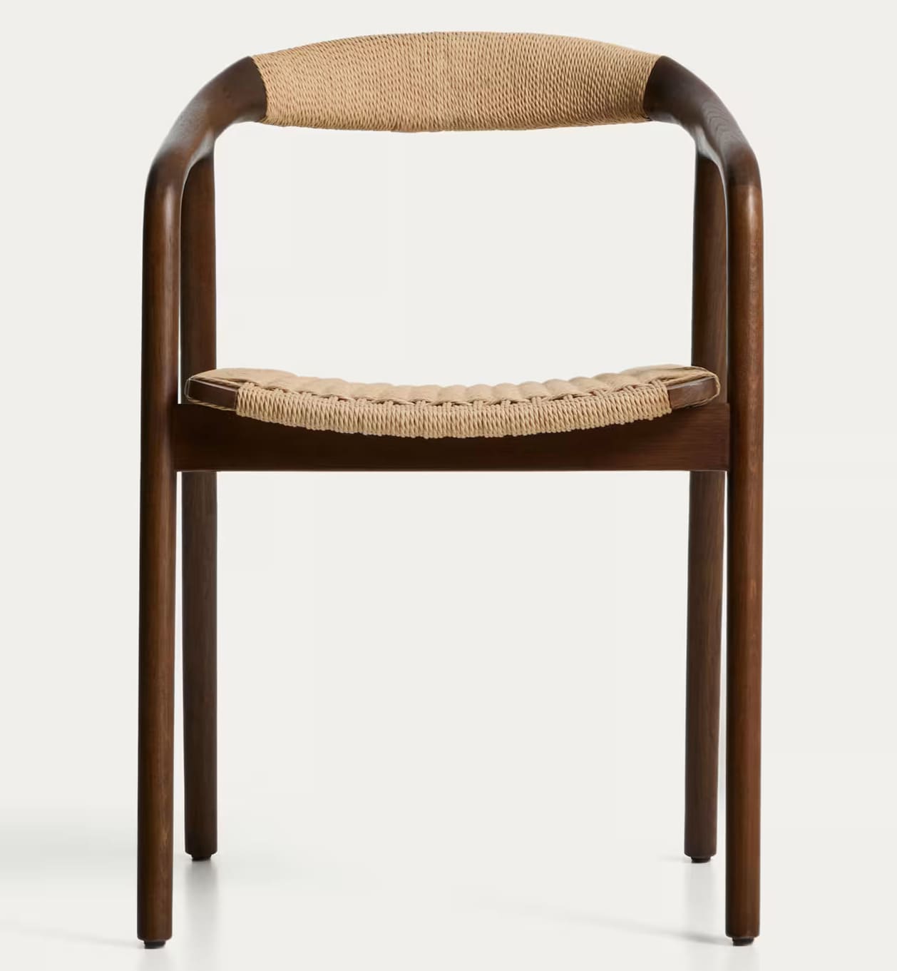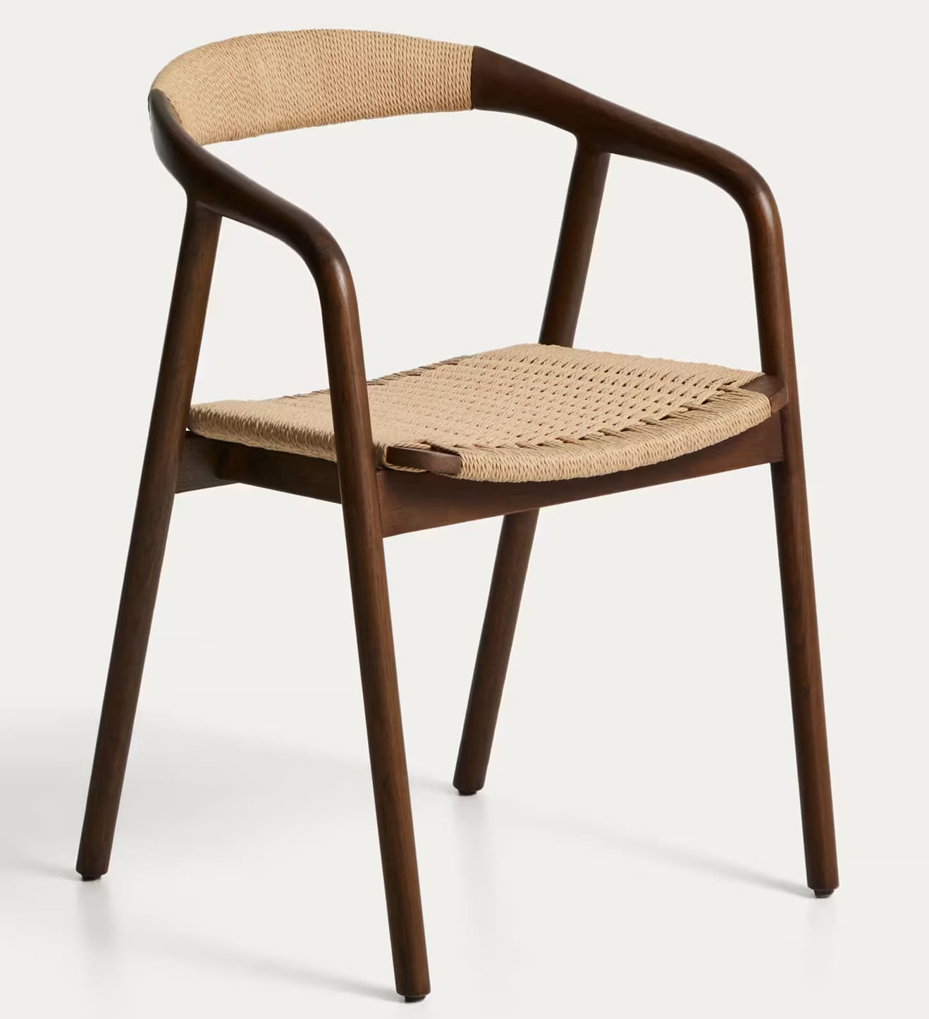 - Стул изготовлен из массива дуба, сиденье и спинка — из сплетенной вручную веревки.