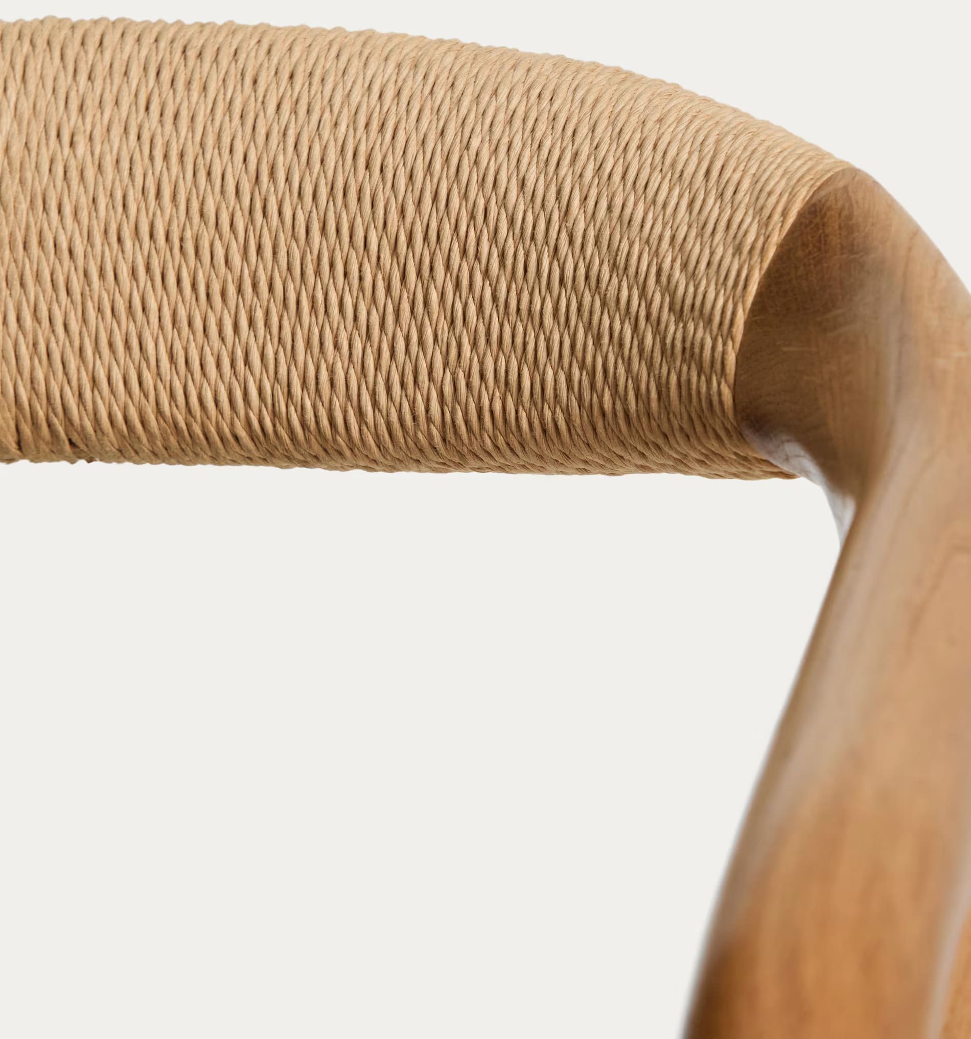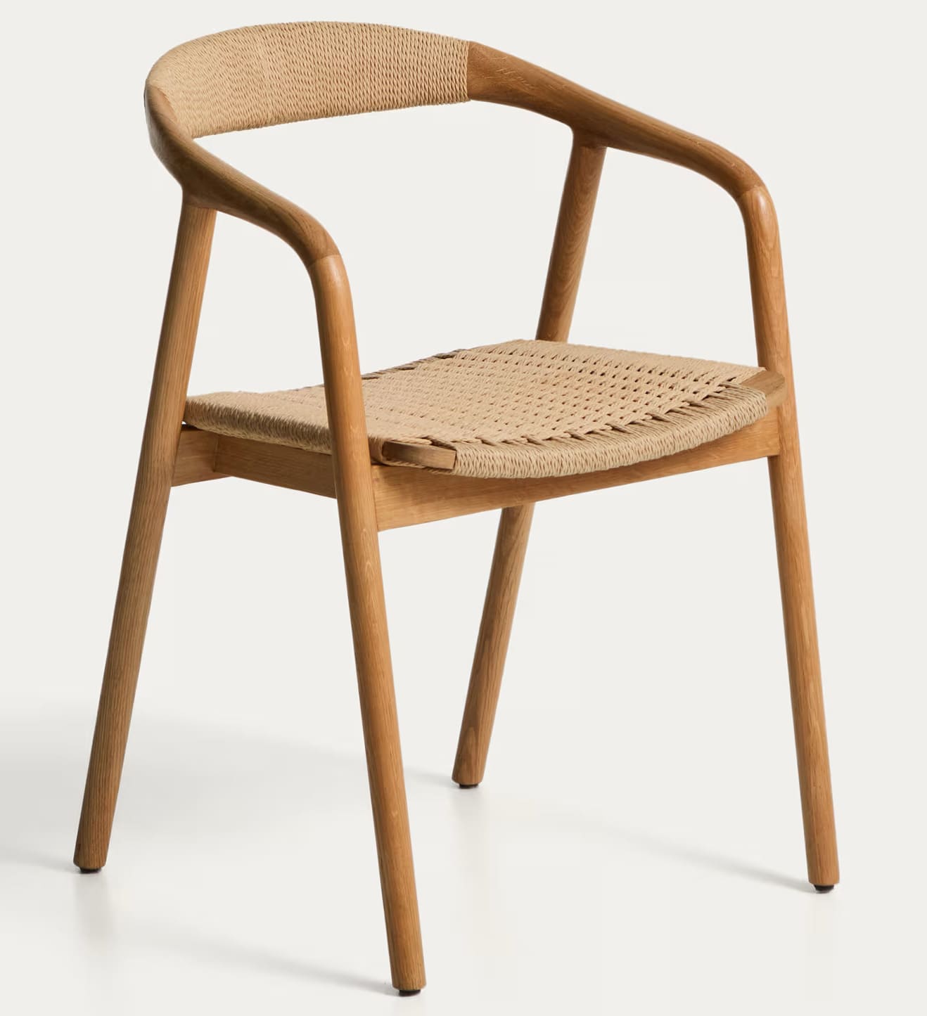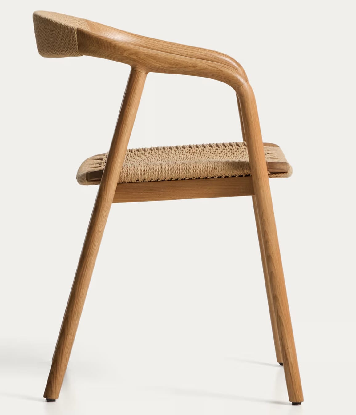 - Стул изготовлен из массива дуба, сиденье и спинка — из сплетенной вручную веревки.