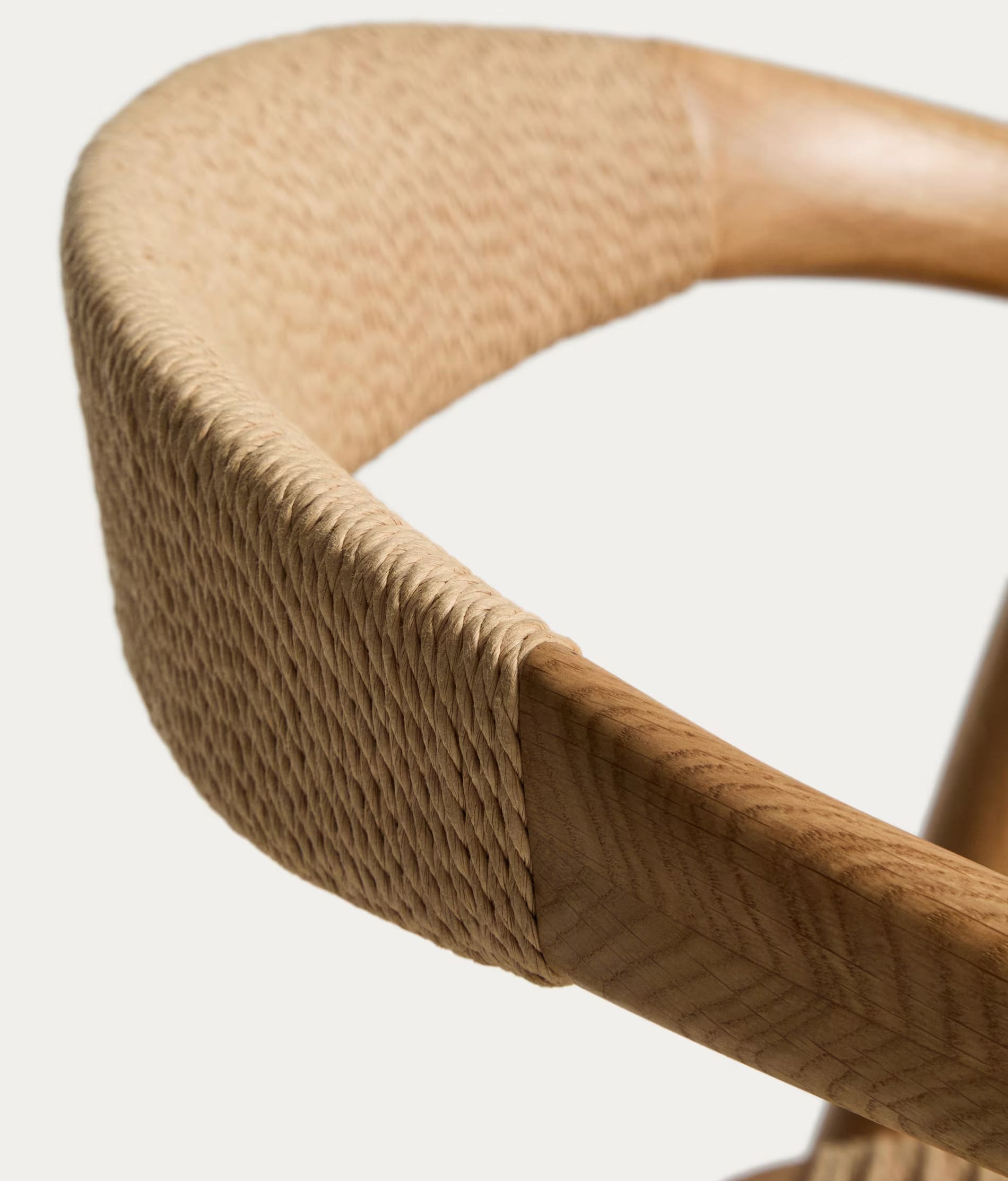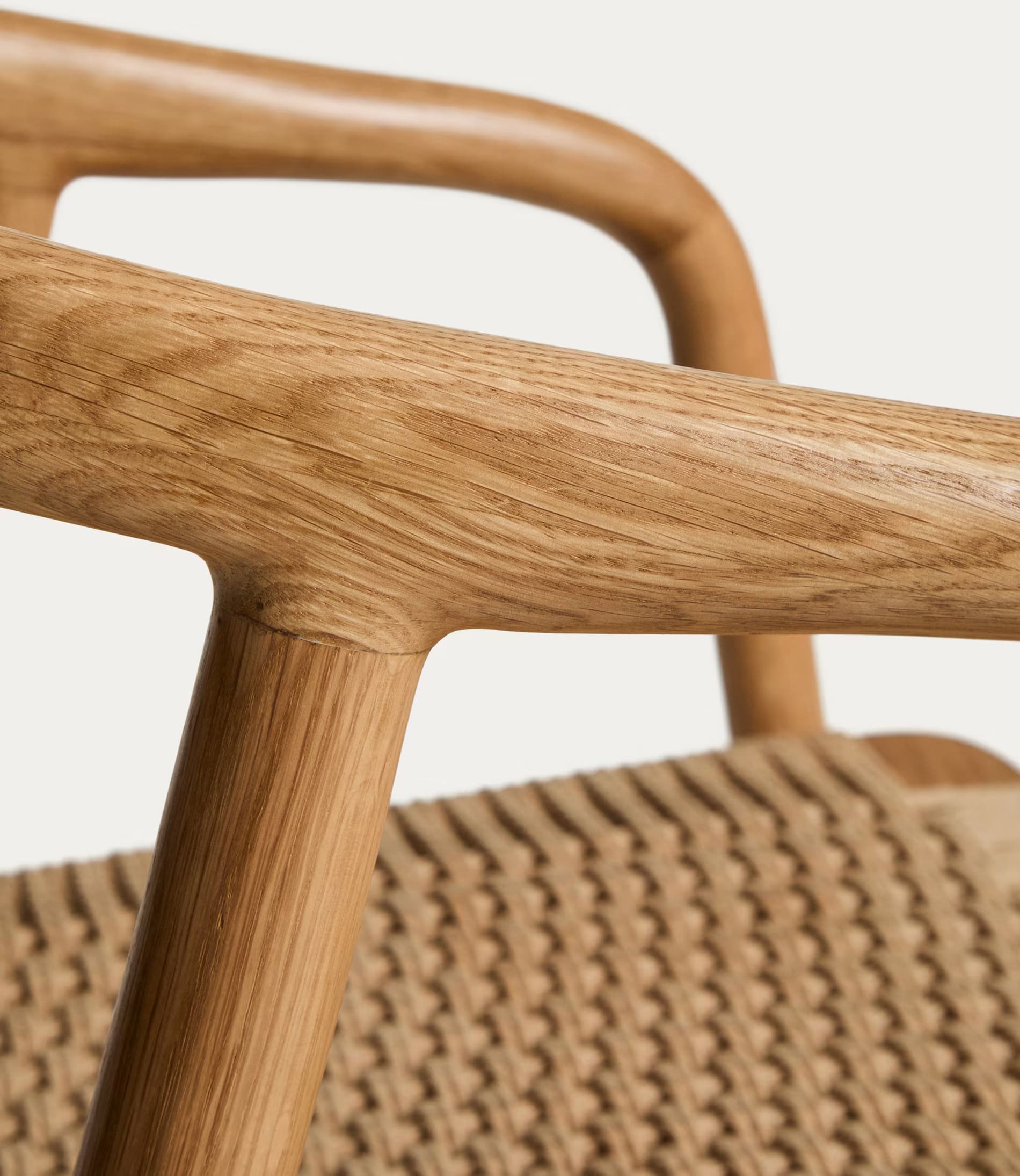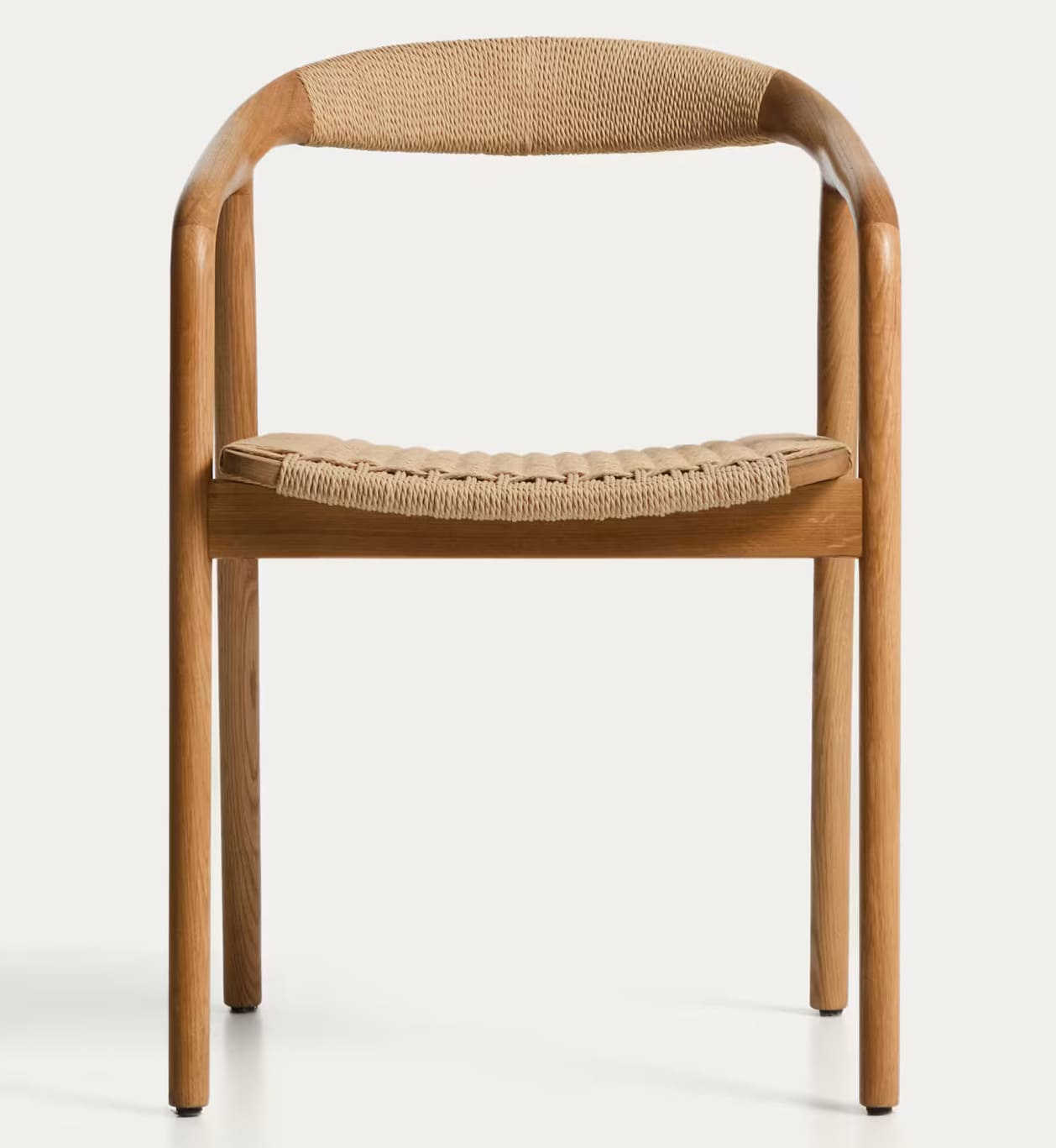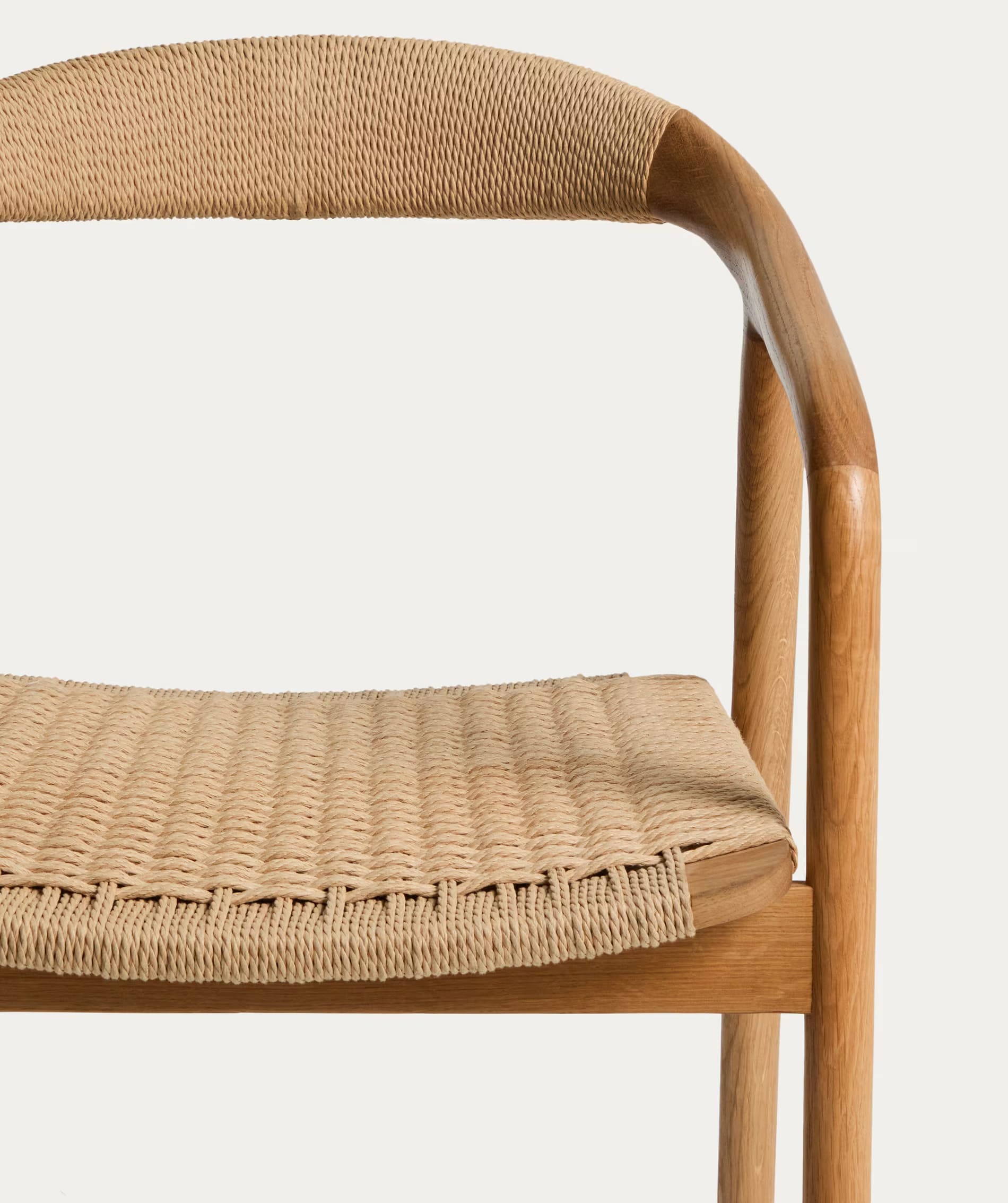 - Стул изготовлен из массива дуба, сиденье и спинка — из сплетенной вручную веревки.