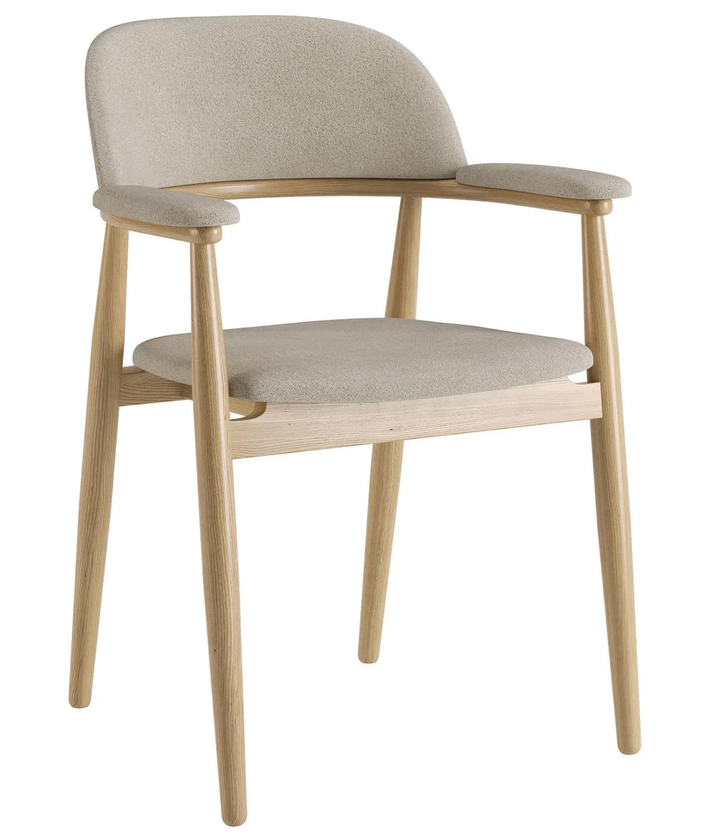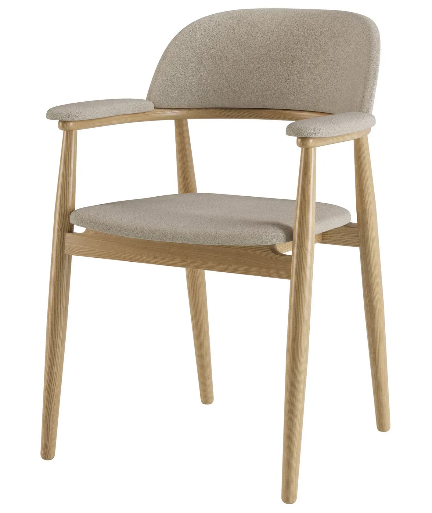 - Каркас изготовлен из массива ясеня, что придает конструкции прочность и устойчивость, а текстурная ткань добавляет тепла и индивидуальности.