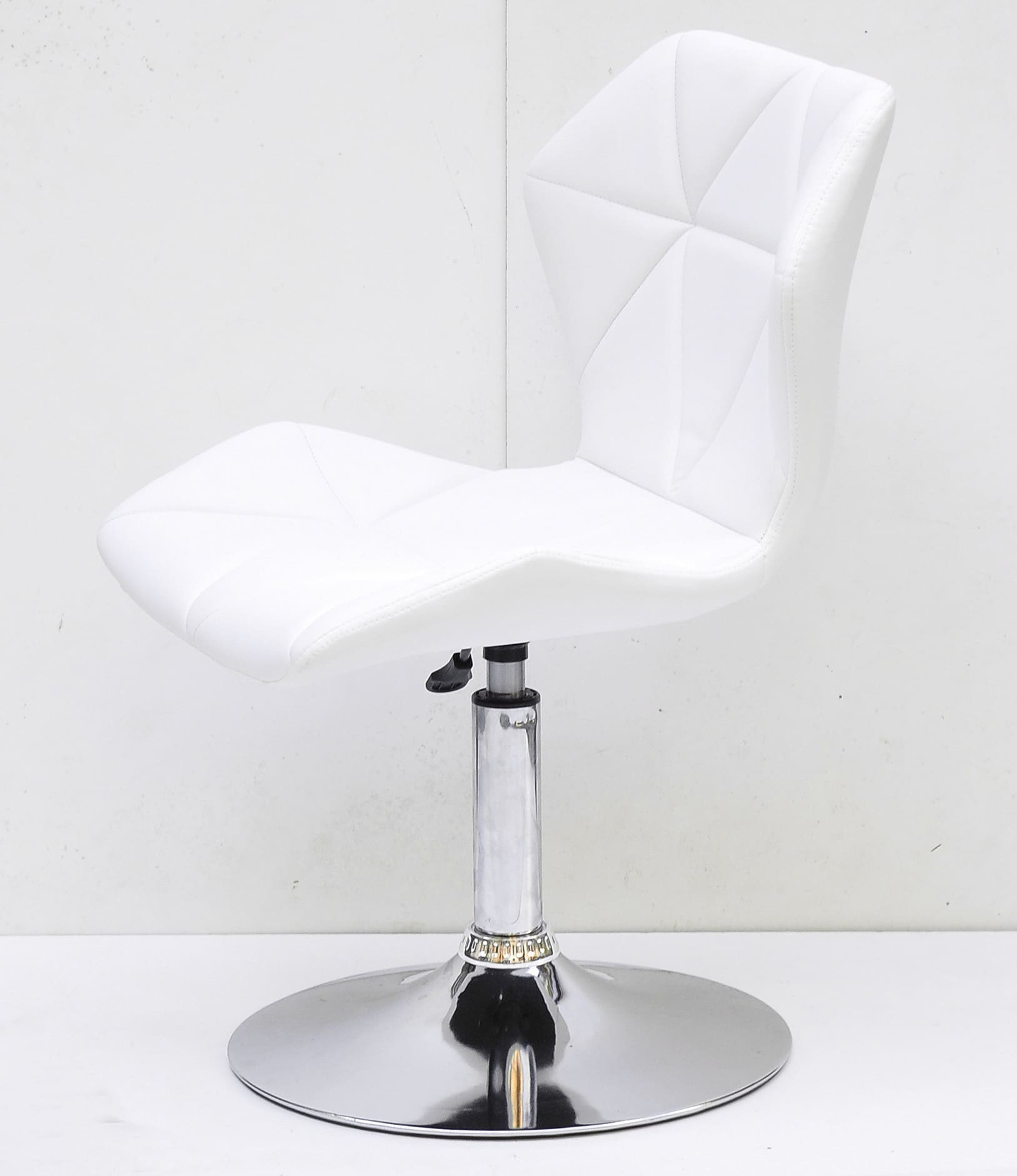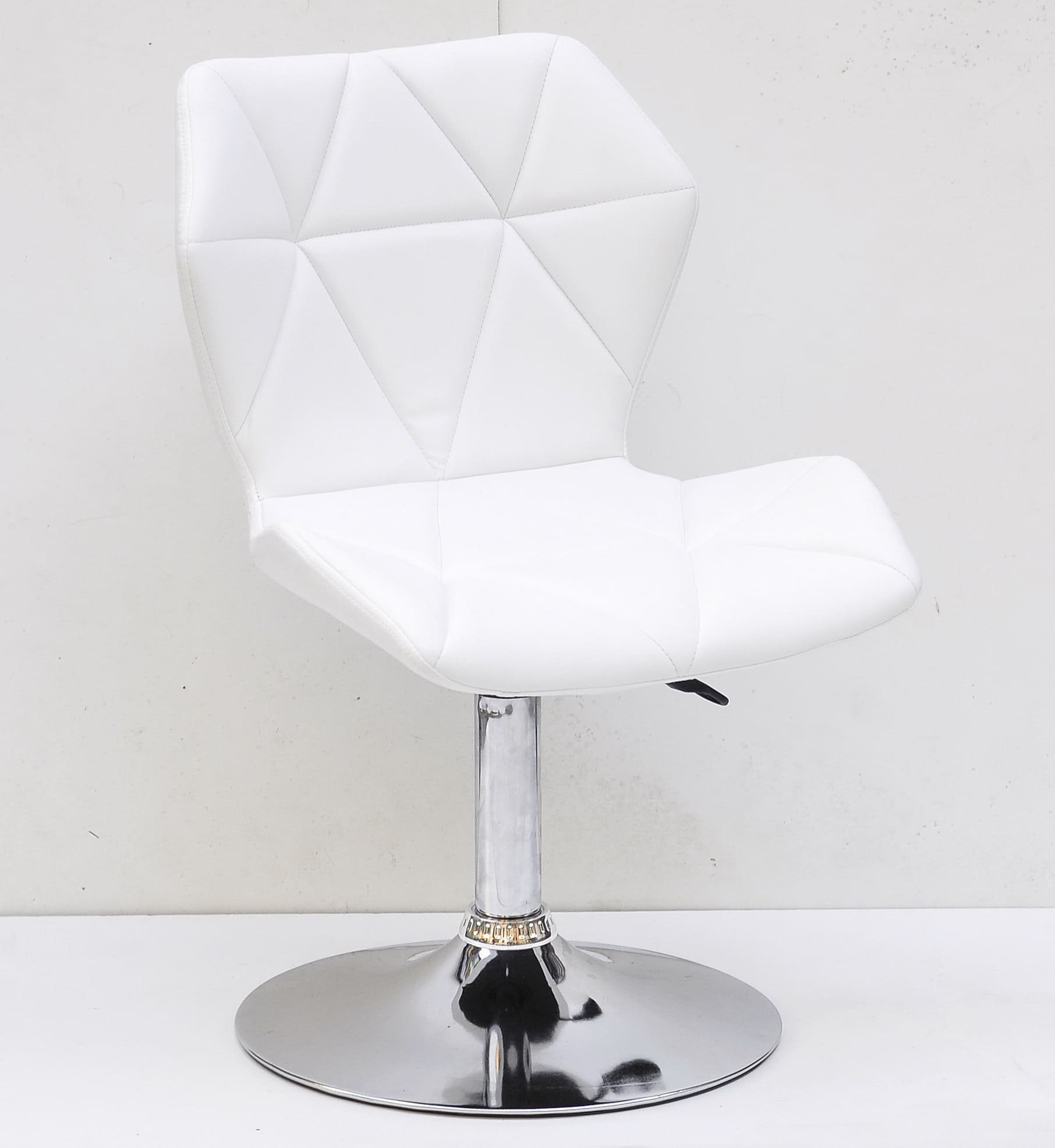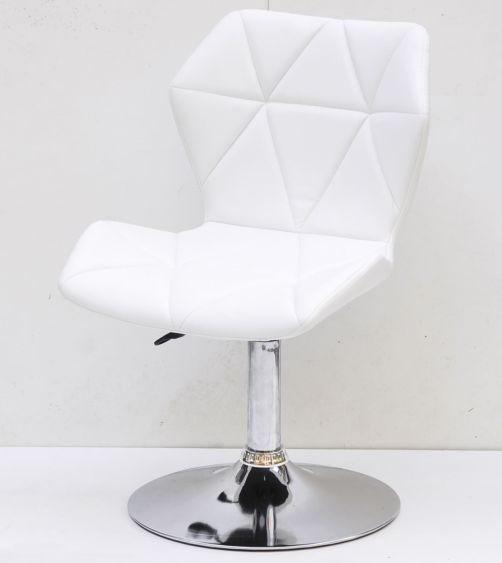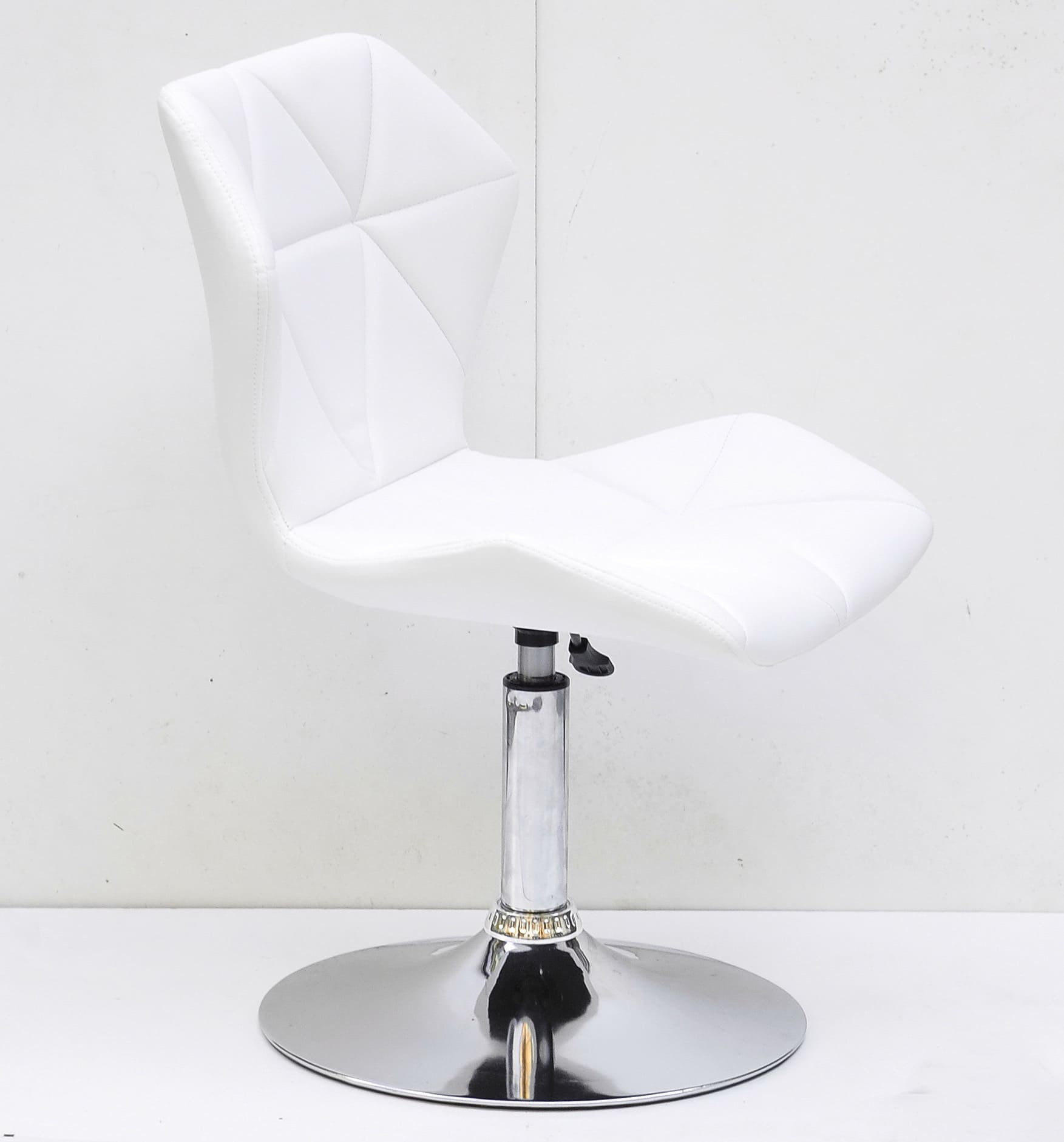 Сиденье и спинка выполнены из экокожи белого цвета, которая придает стулу элегантность и визуальную мягкость. Прочный металлический каркас и устойчивая база обеспечивают стабильность и долговечность при ежедневном использовании.